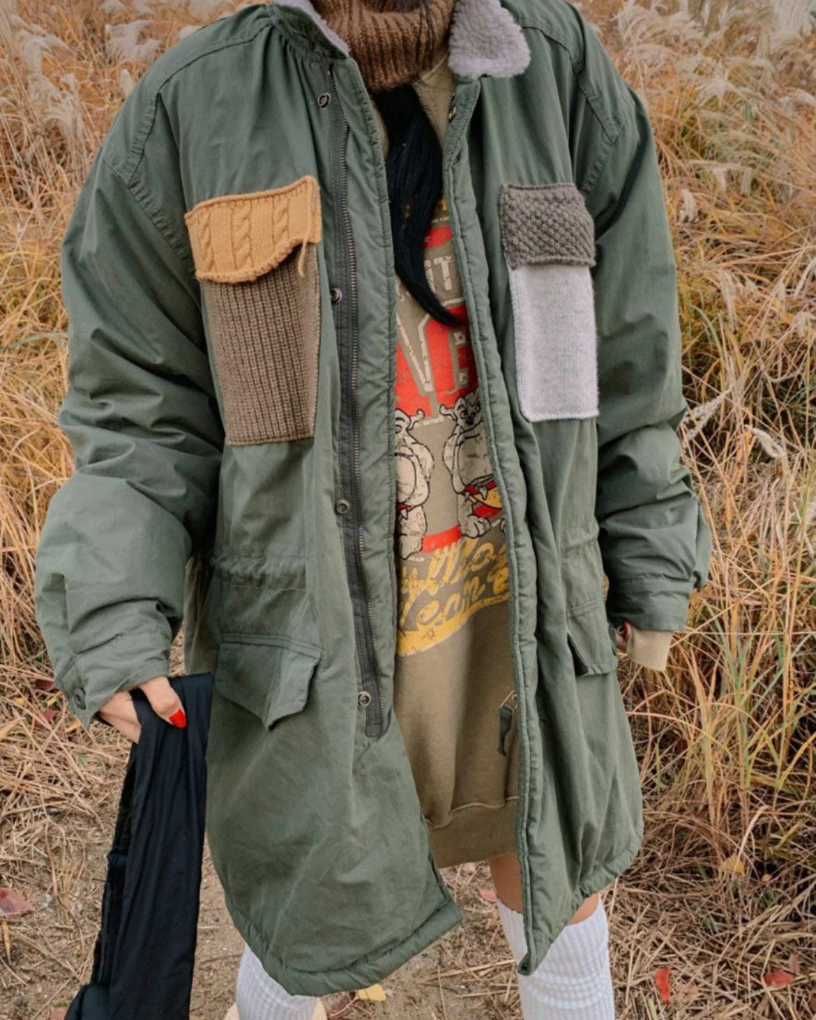 企領拼袋拉鍊長褸(絨毛底) 12GAUGE-026JK