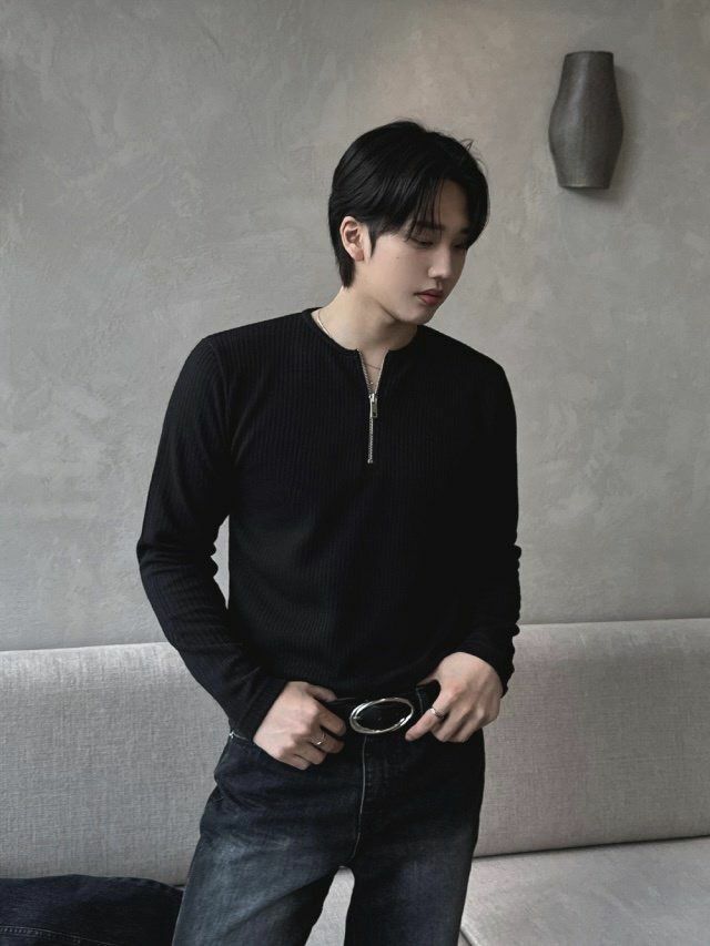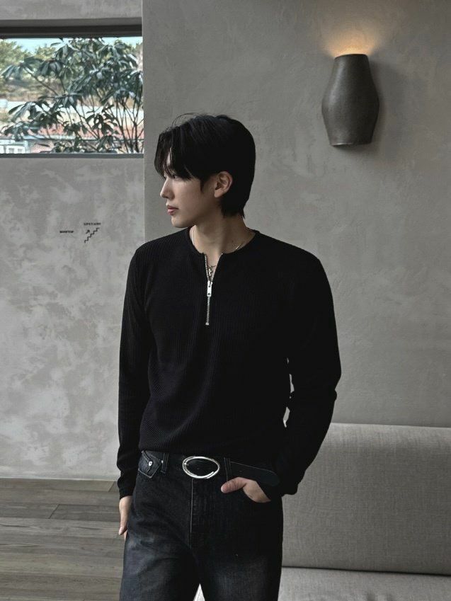 淨色半開胸拉鍊長袖衫 1990S-007T