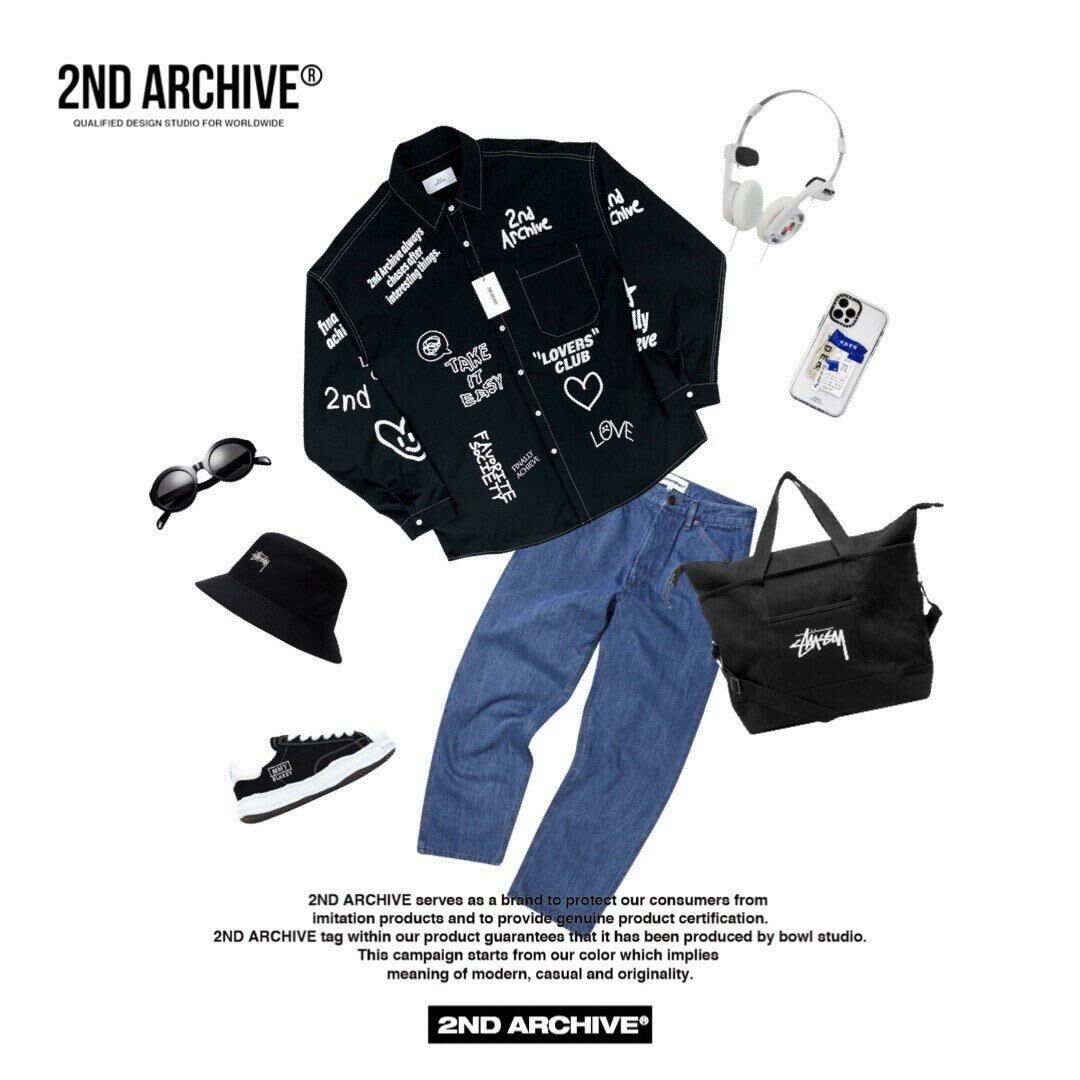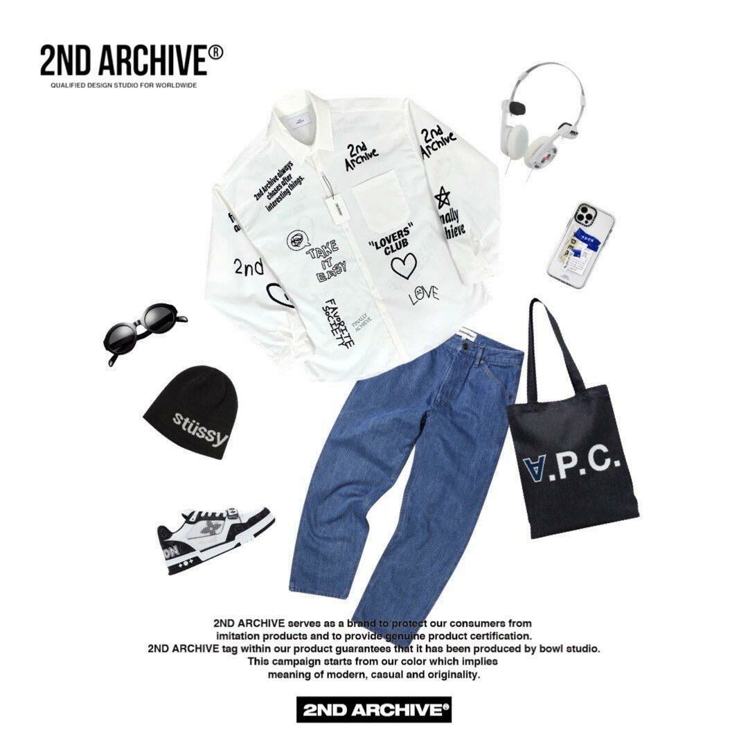 英文字圖案長袖恤衫 2nd-152S
