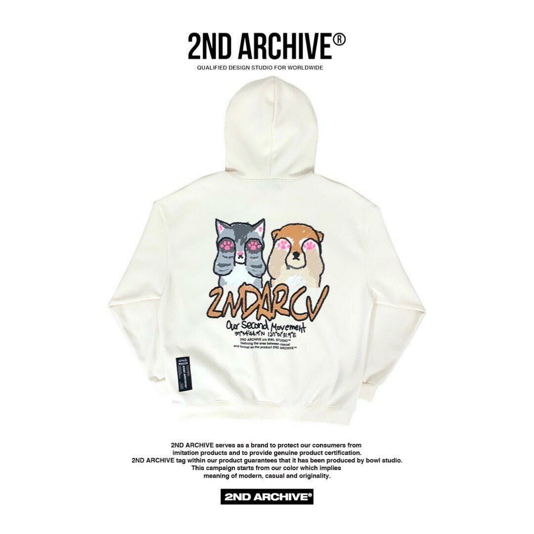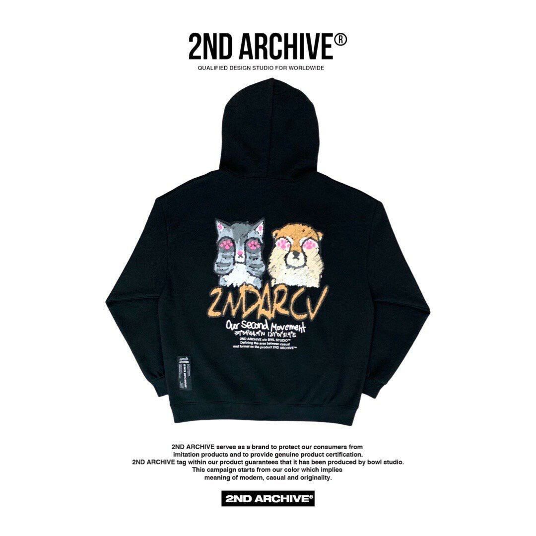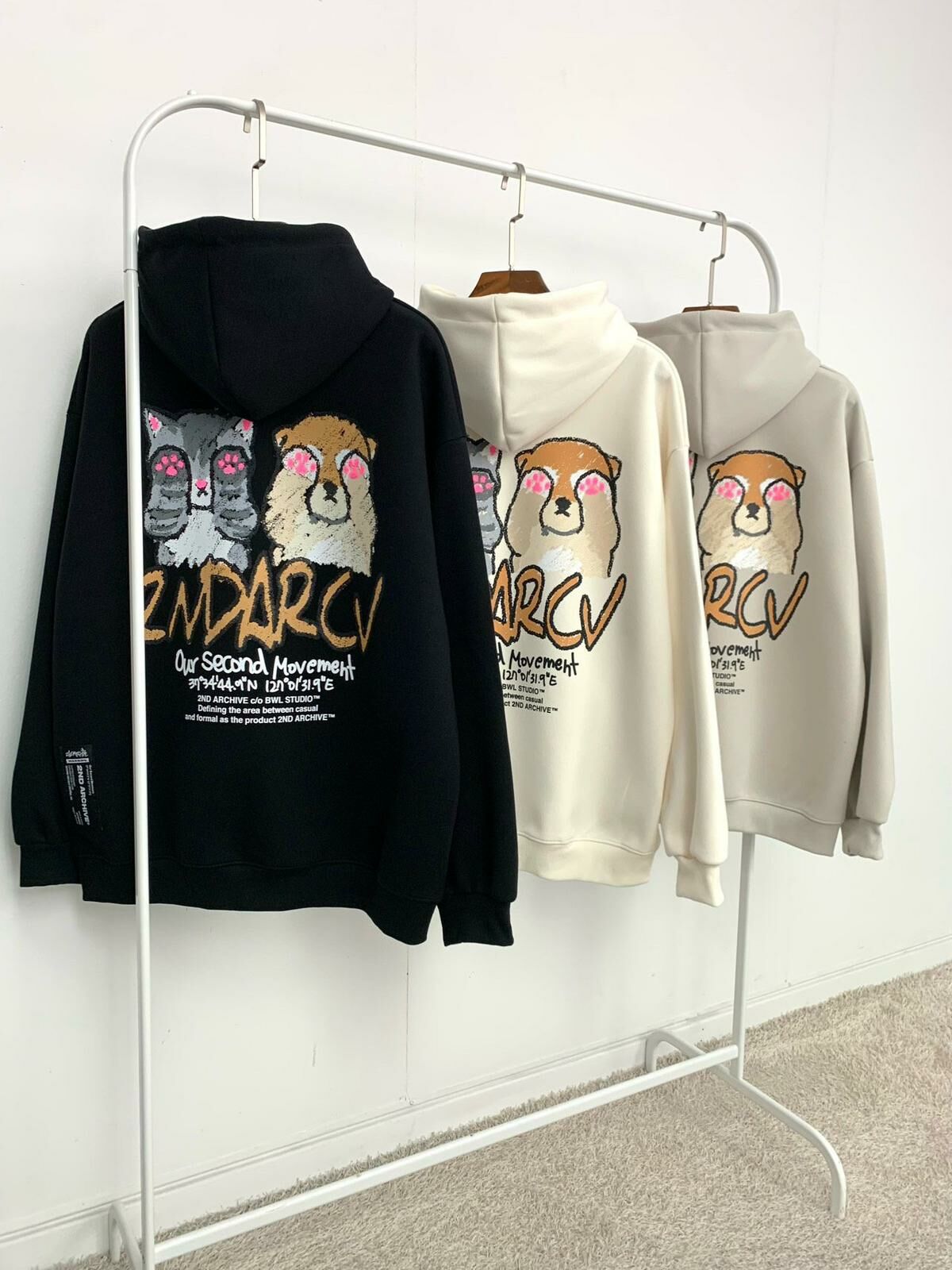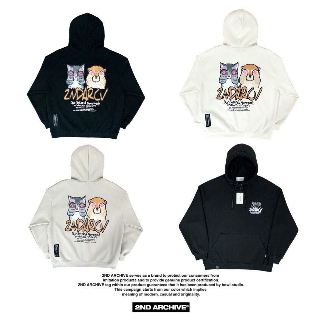 (薄抓毛底)貓狗圖案英文字連帽衛衣 2nd-161T