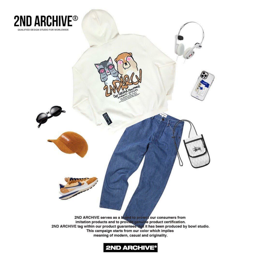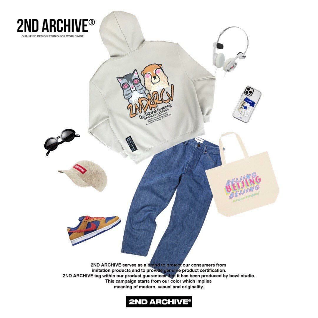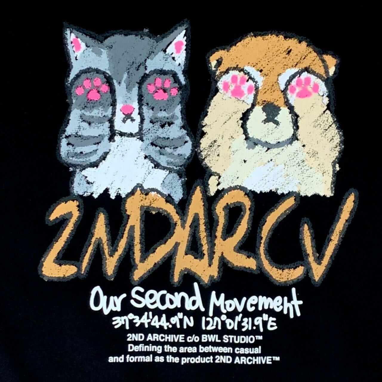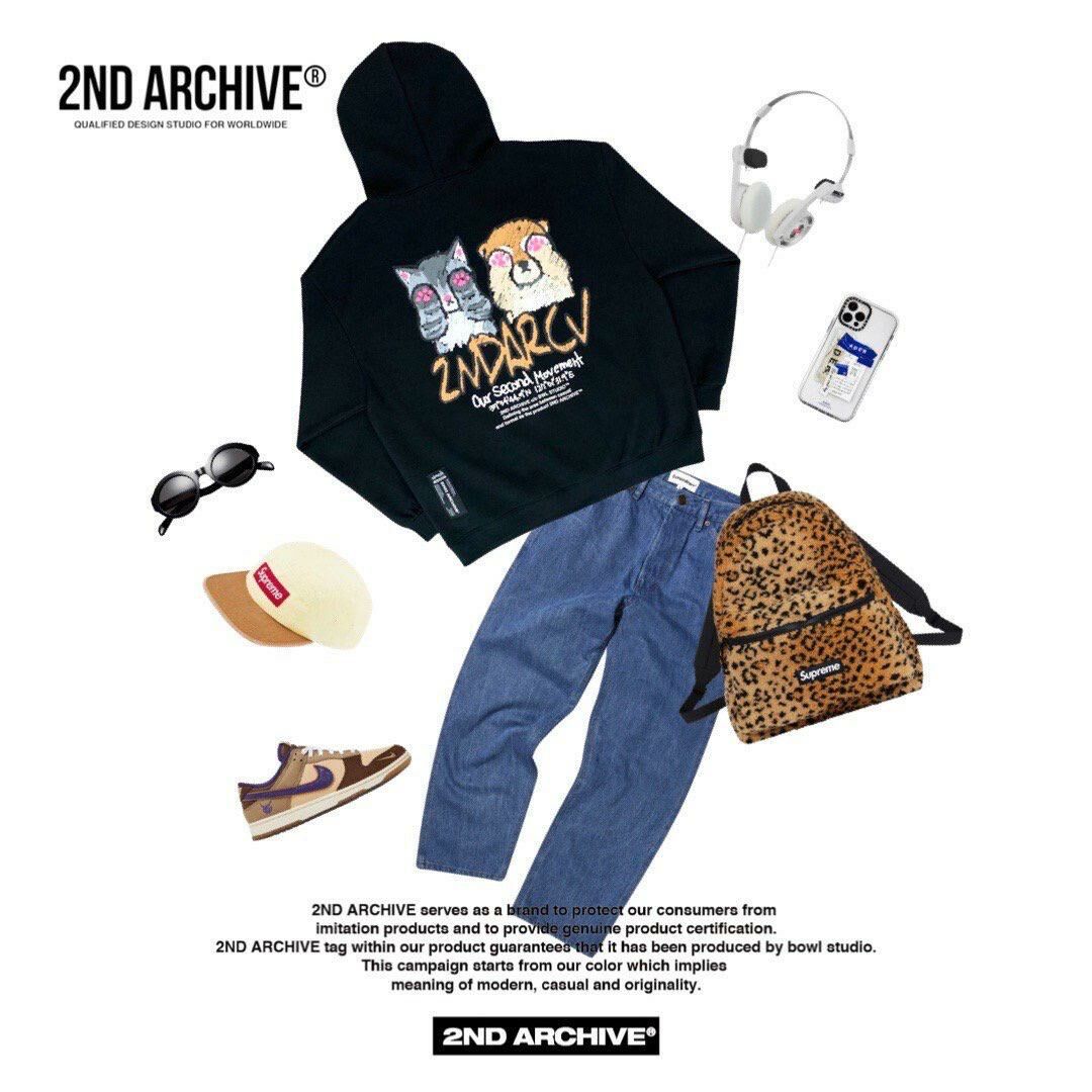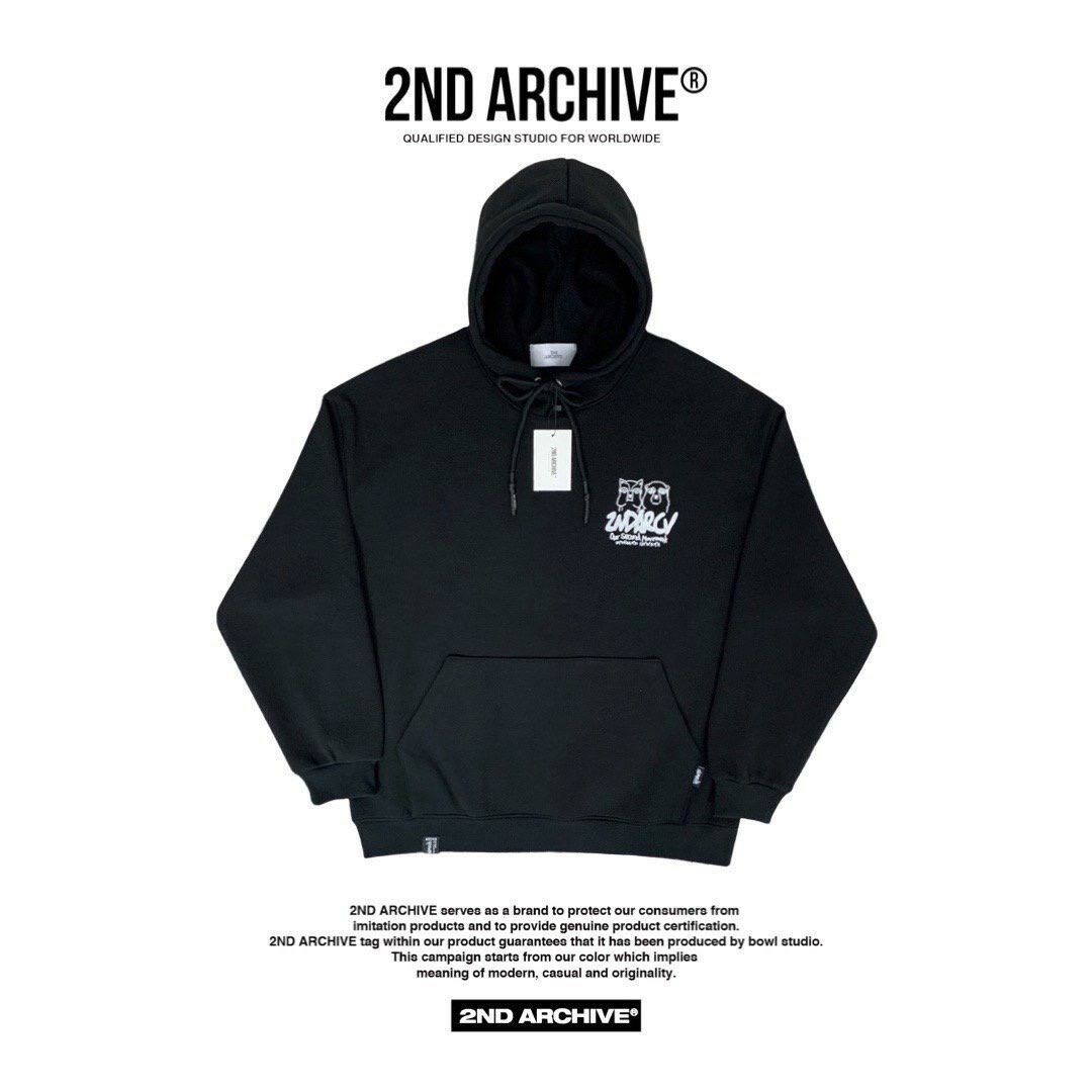 (薄抓毛底)貓狗圖案英文字連帽衛衣 2nd-161T