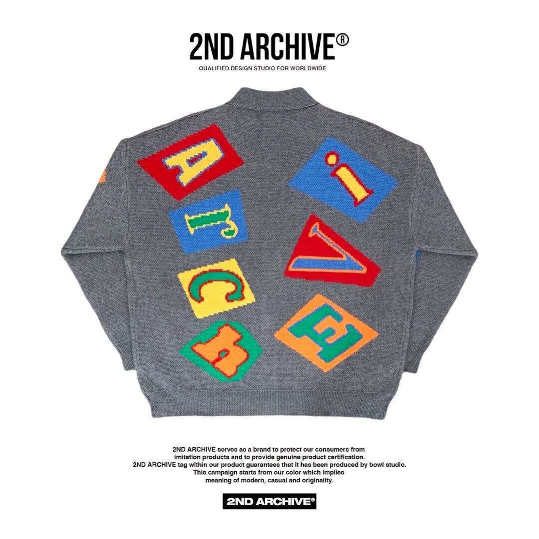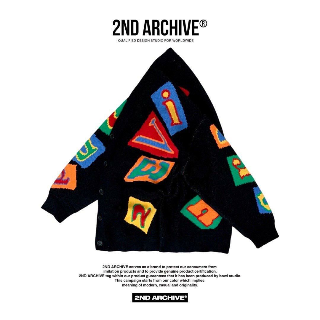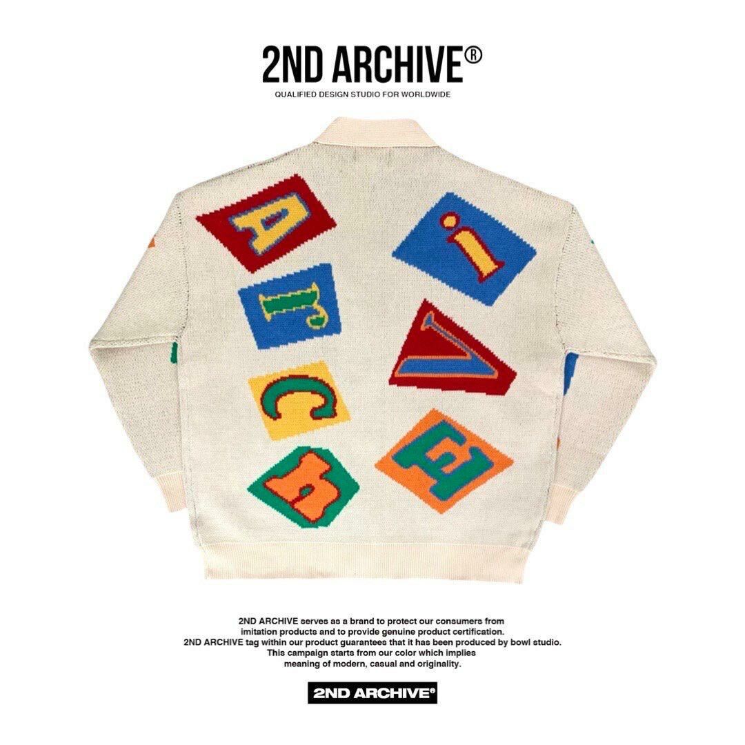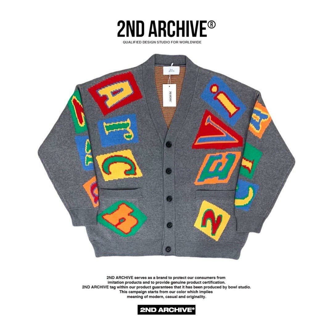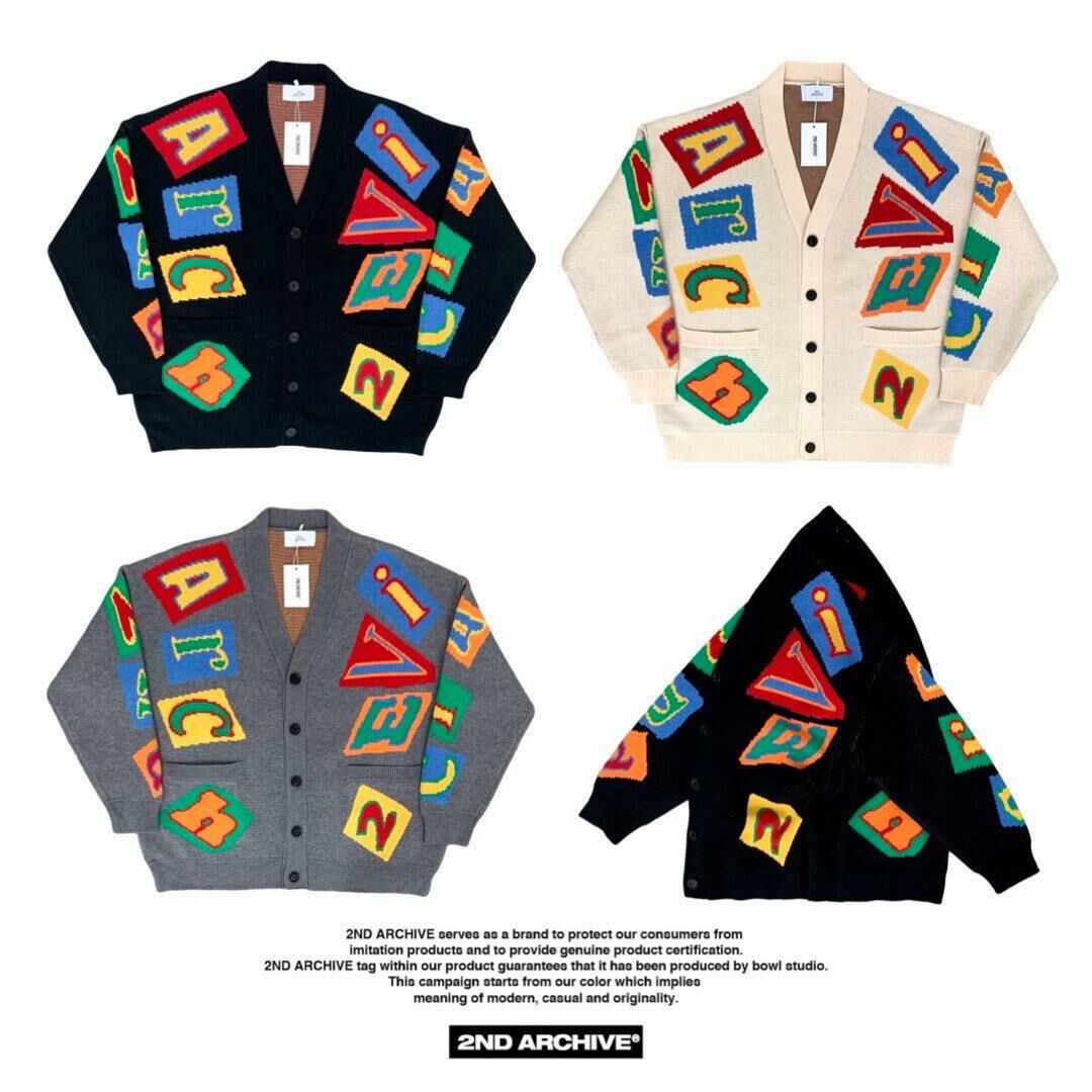 英文字圖案V領開胸針織外套 2nd-165JK