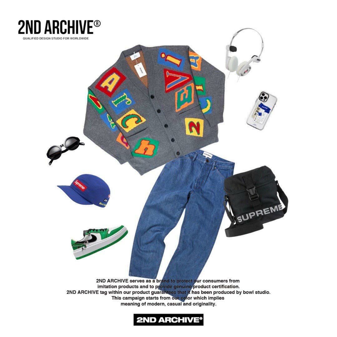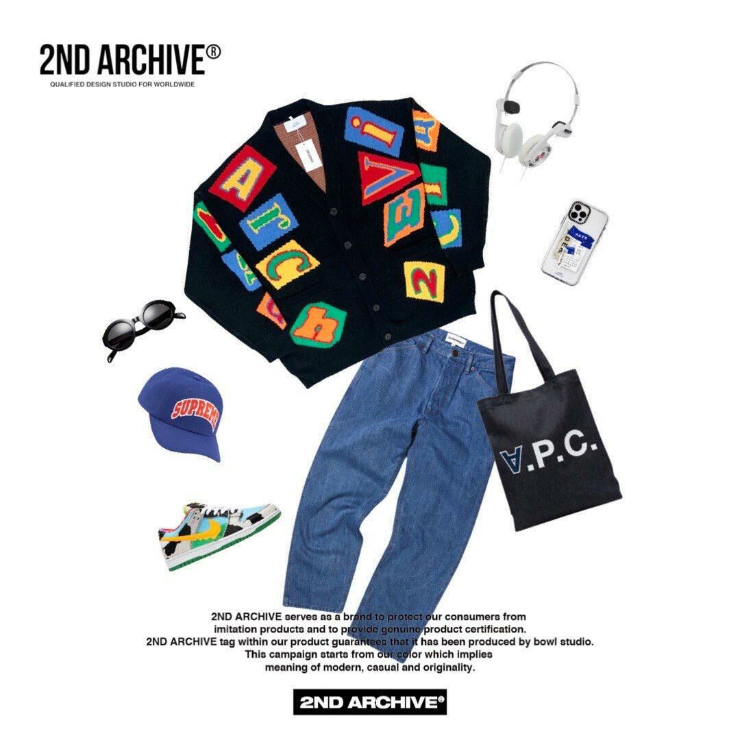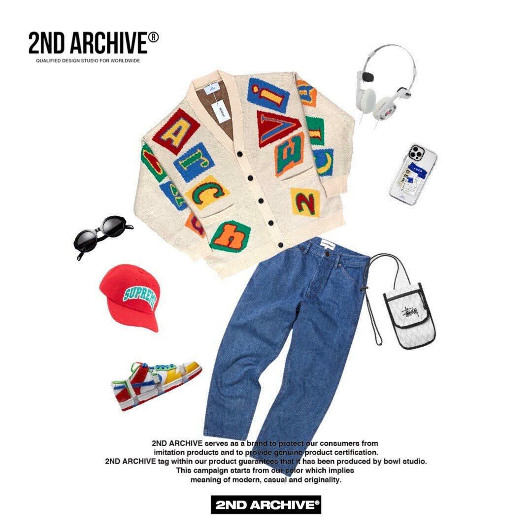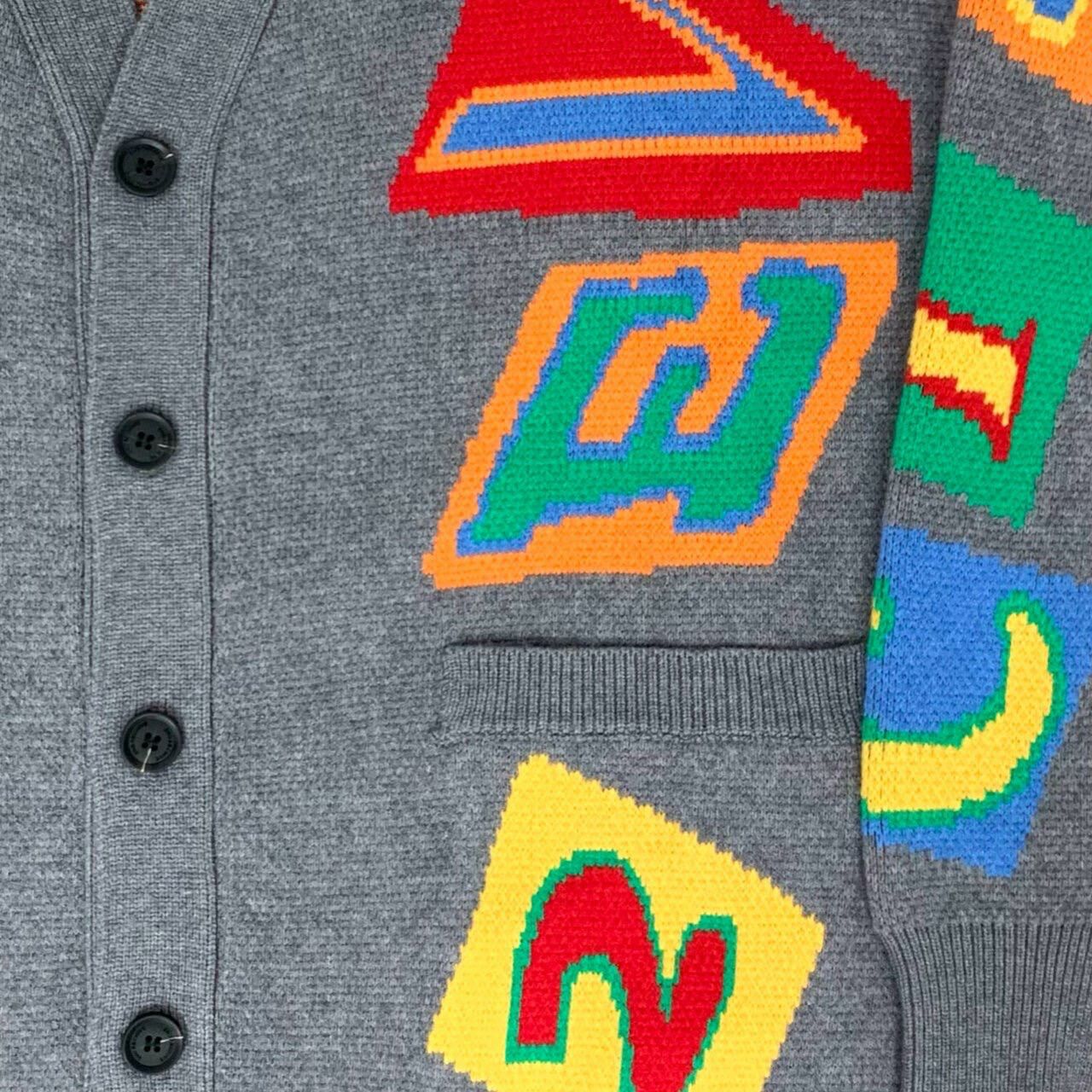 英文字圖案V領開胸針織外套 2nd-165JK