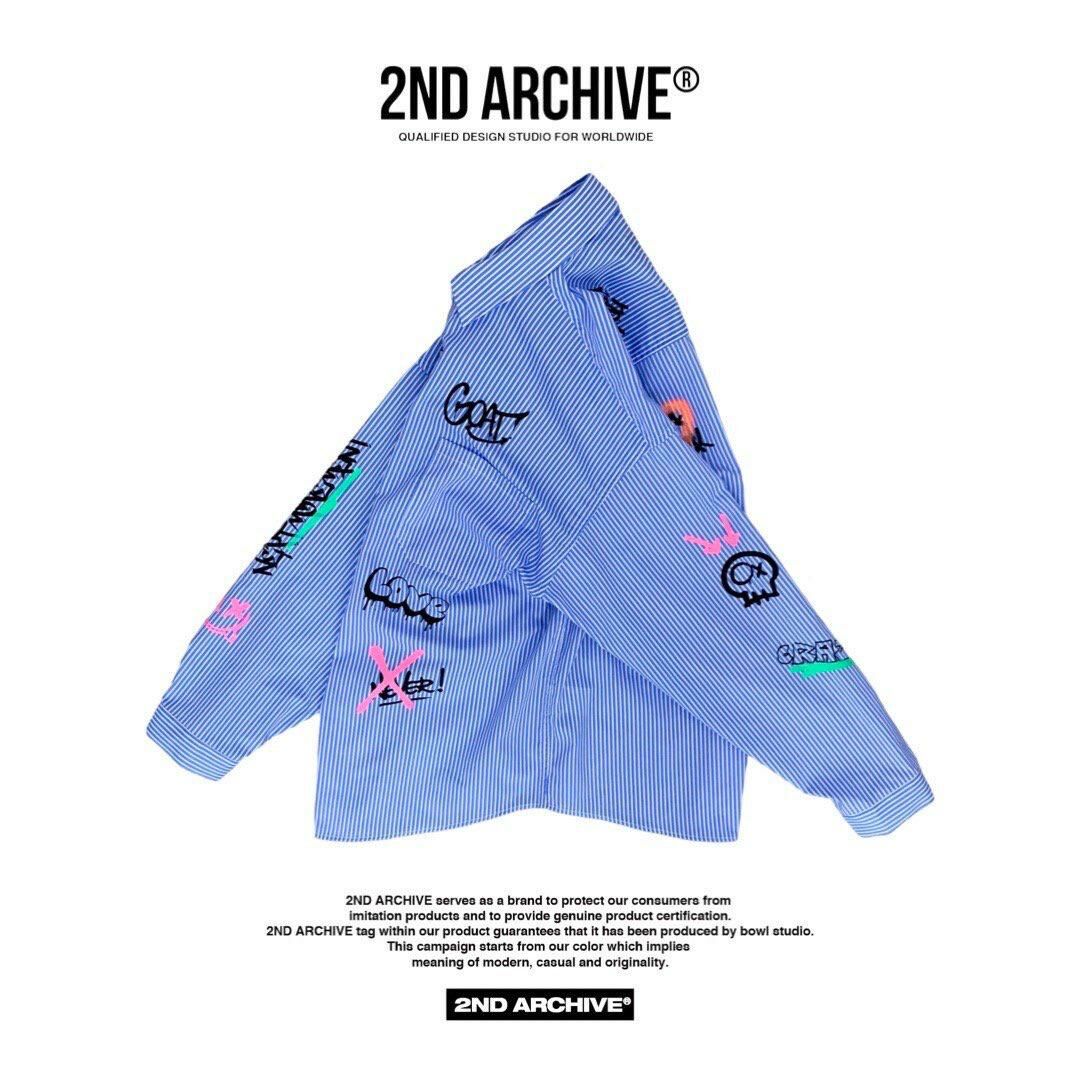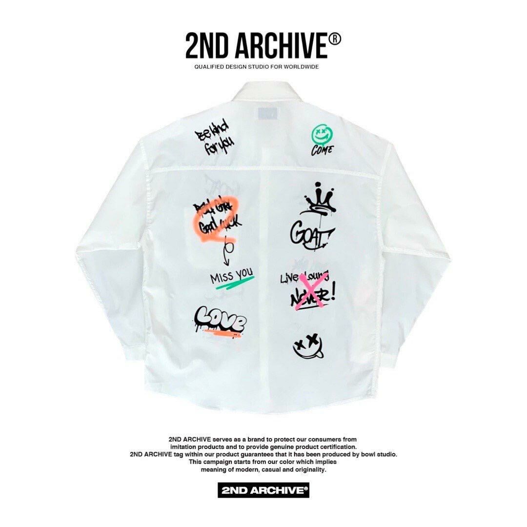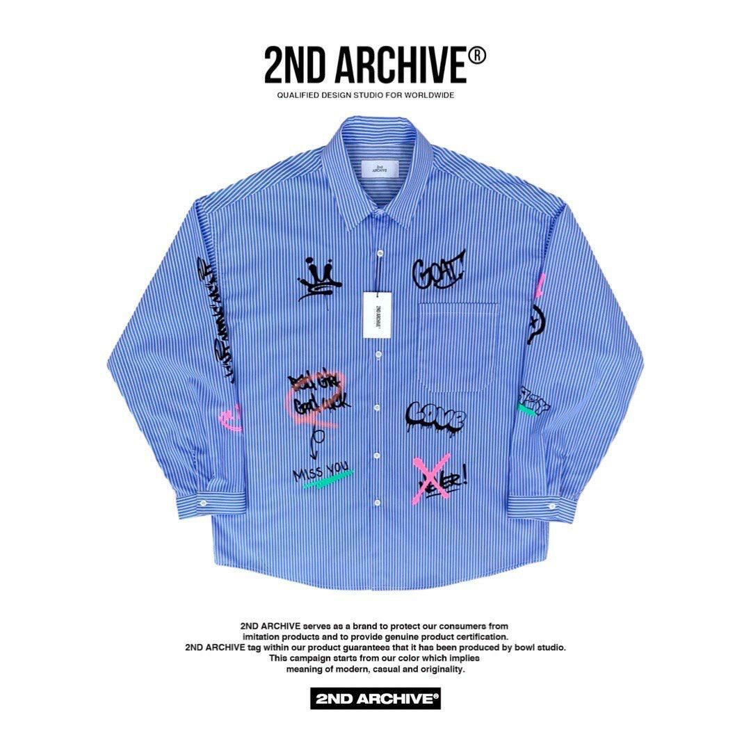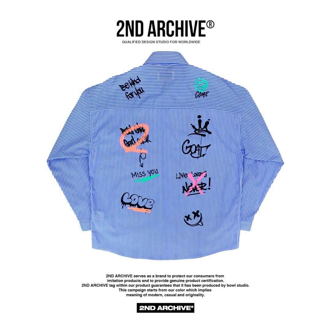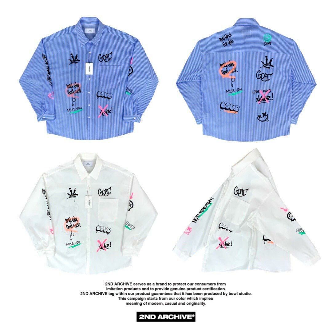 直間/淨色英文字圖案長袖恤衫 2nd-180S