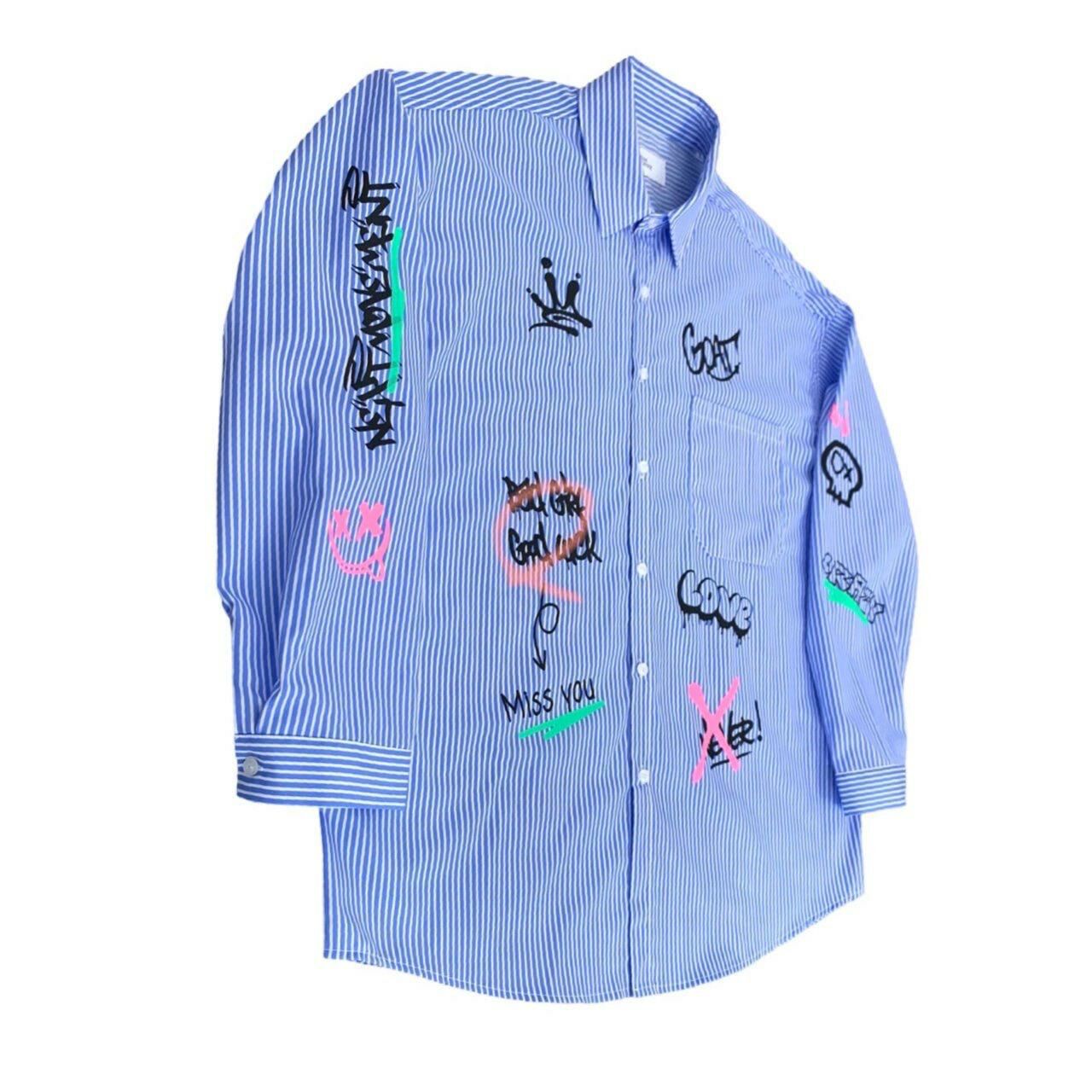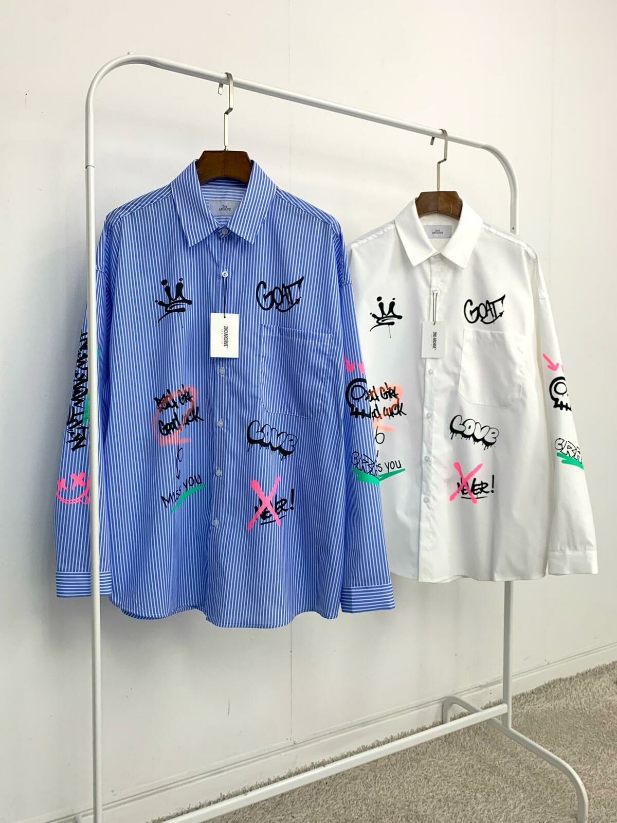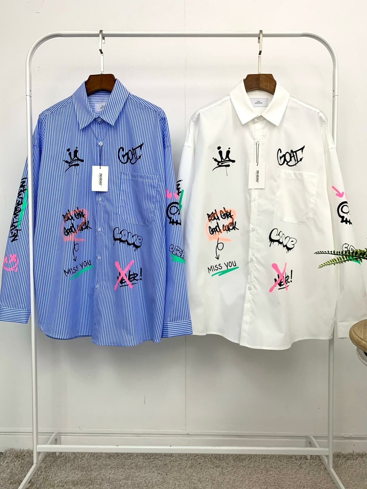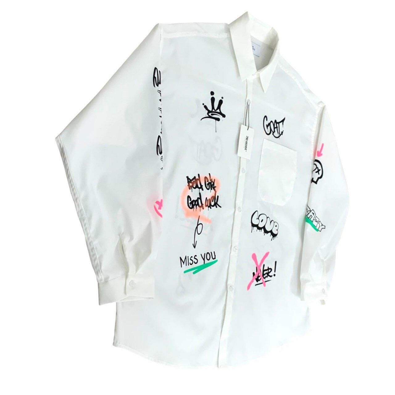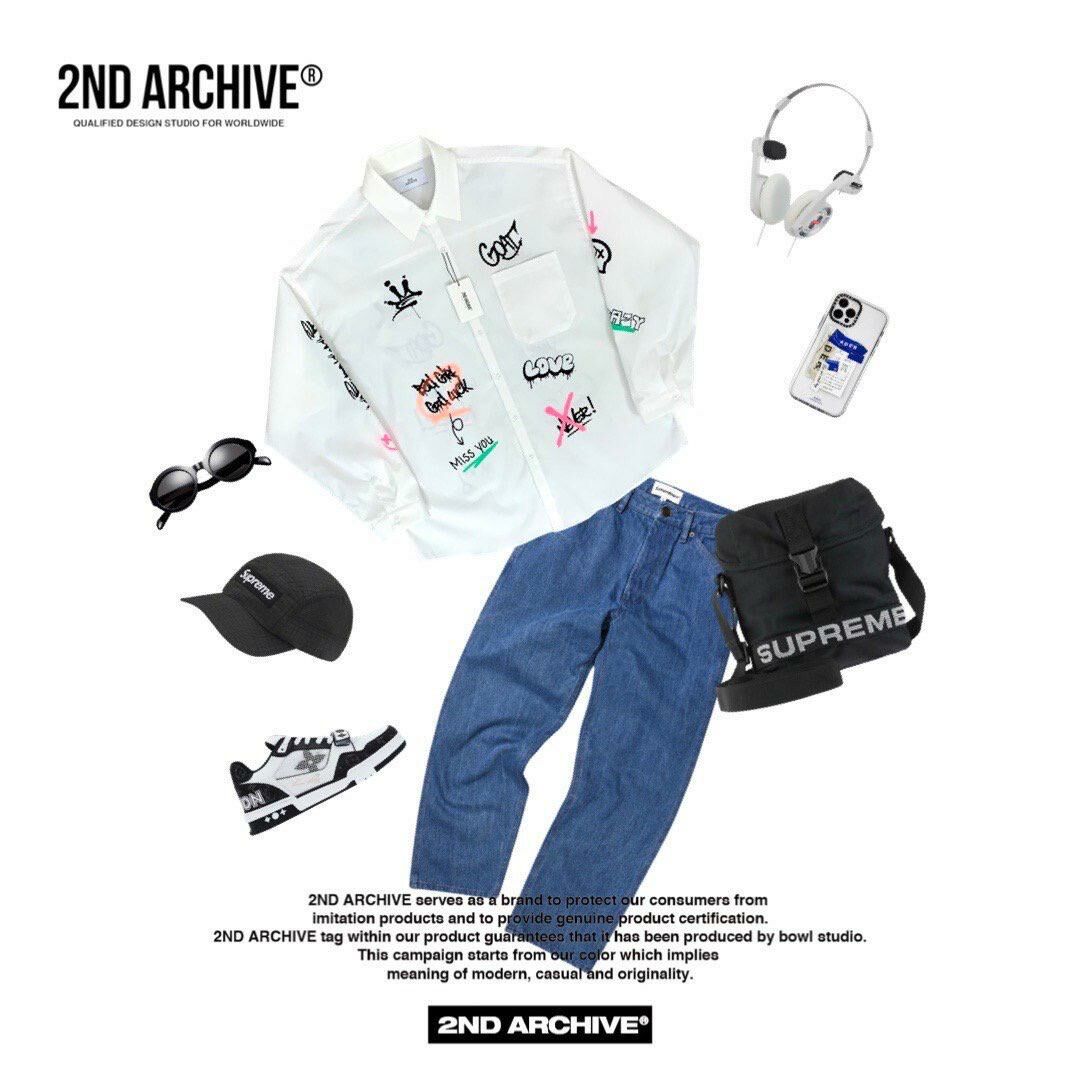 直間/淨色英文字圖案長袖恤衫 2nd-180S