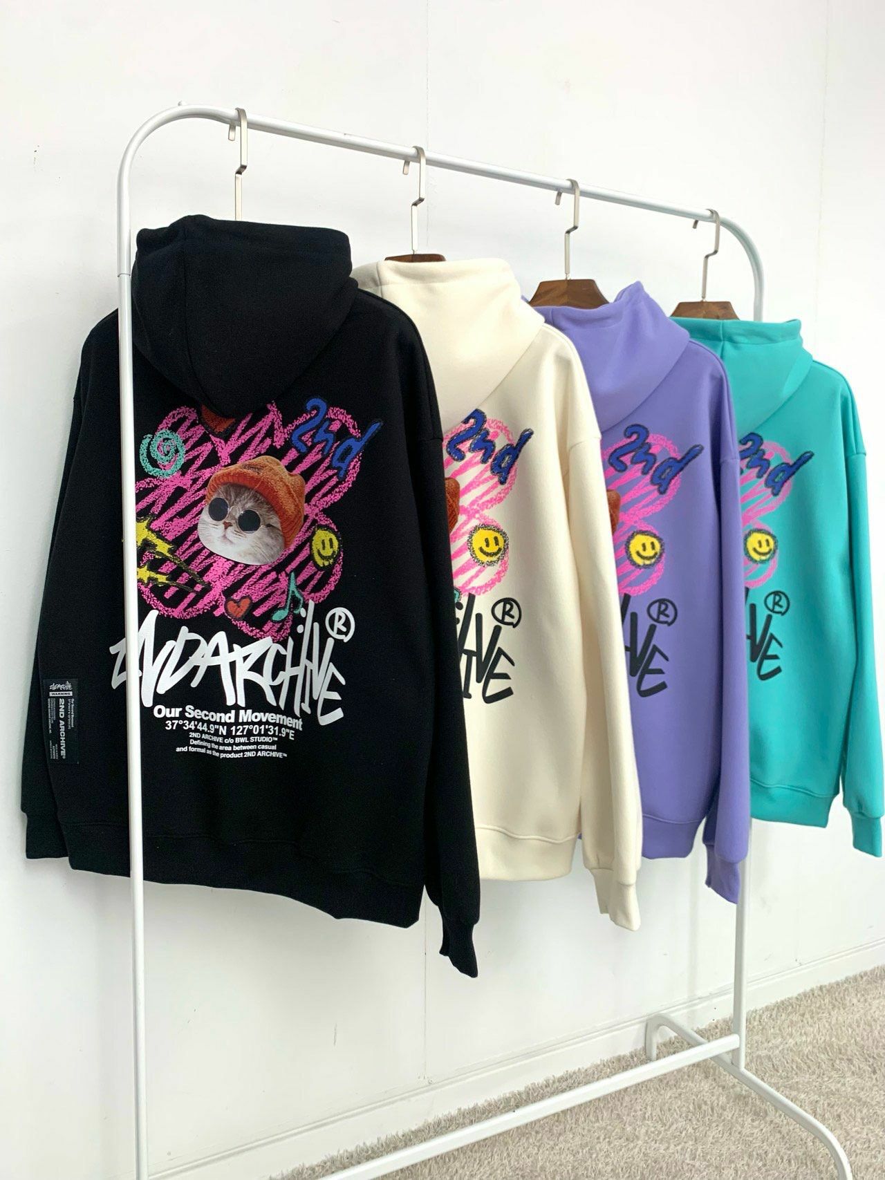貓仔圖案英文字連帽衛衣 2nd-208T
