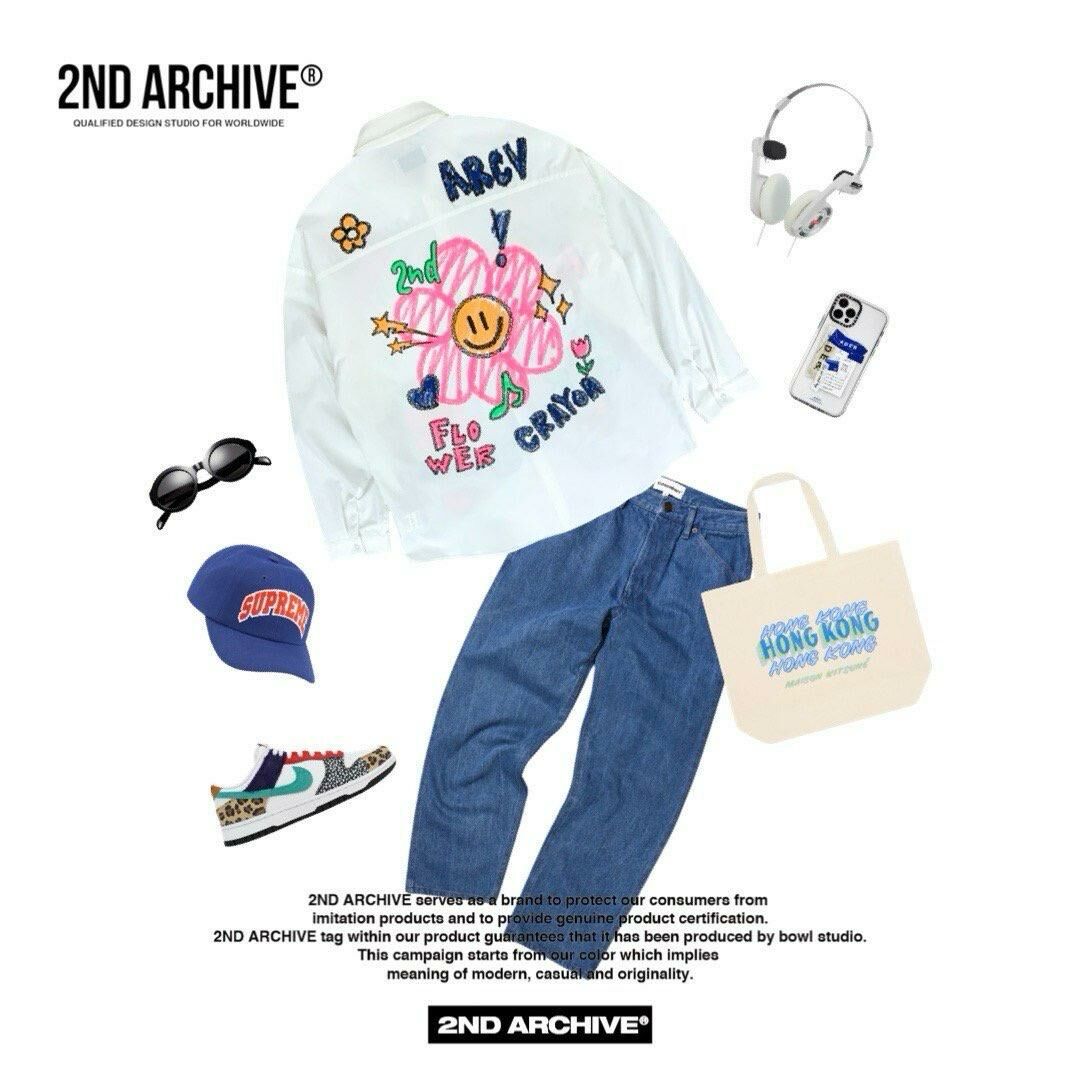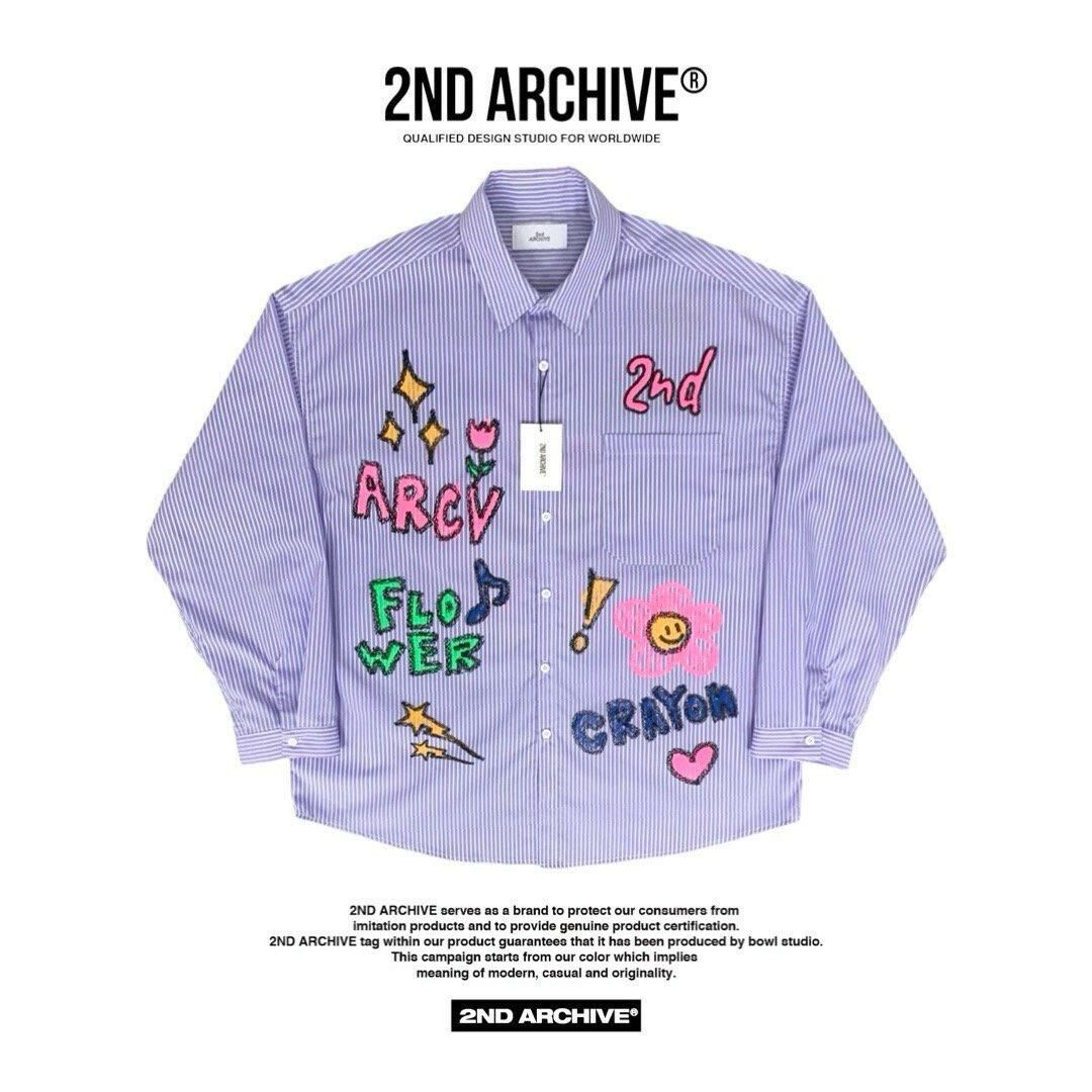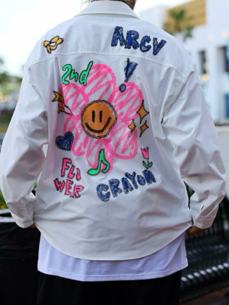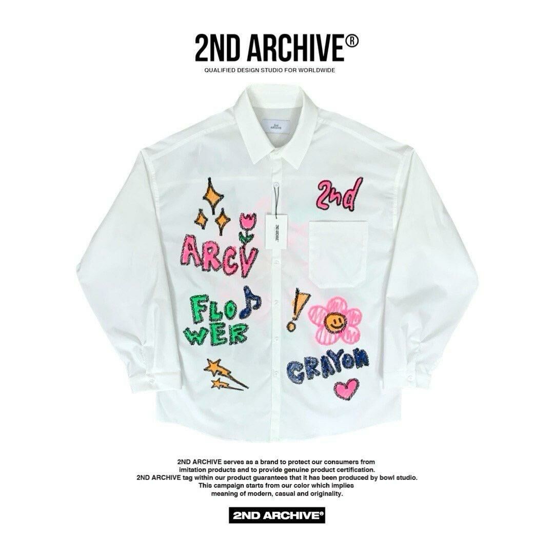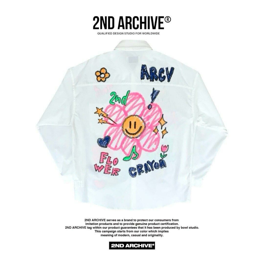 淨色/直間英文字花花圖案長袖恤衫 2nd-216S