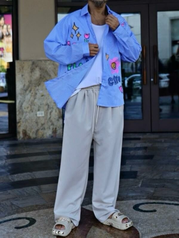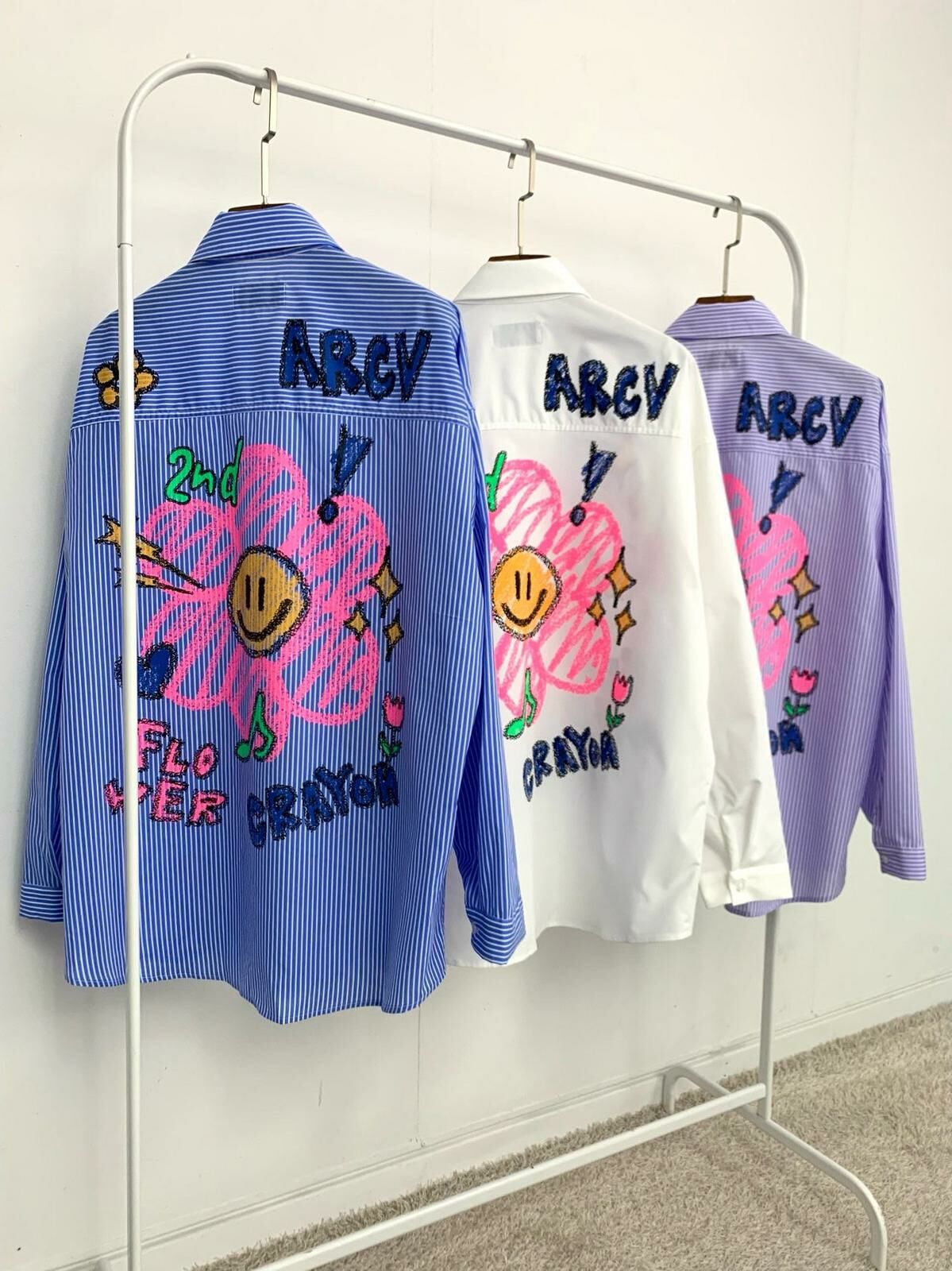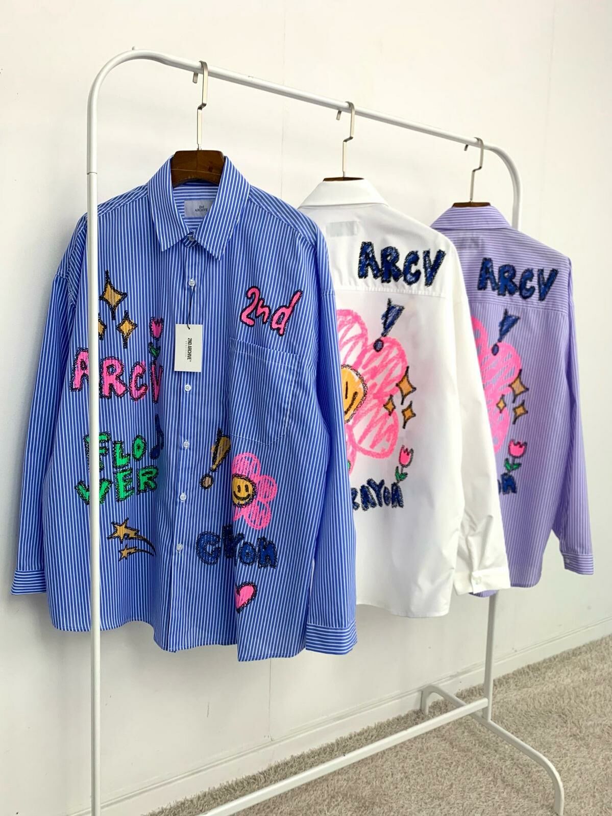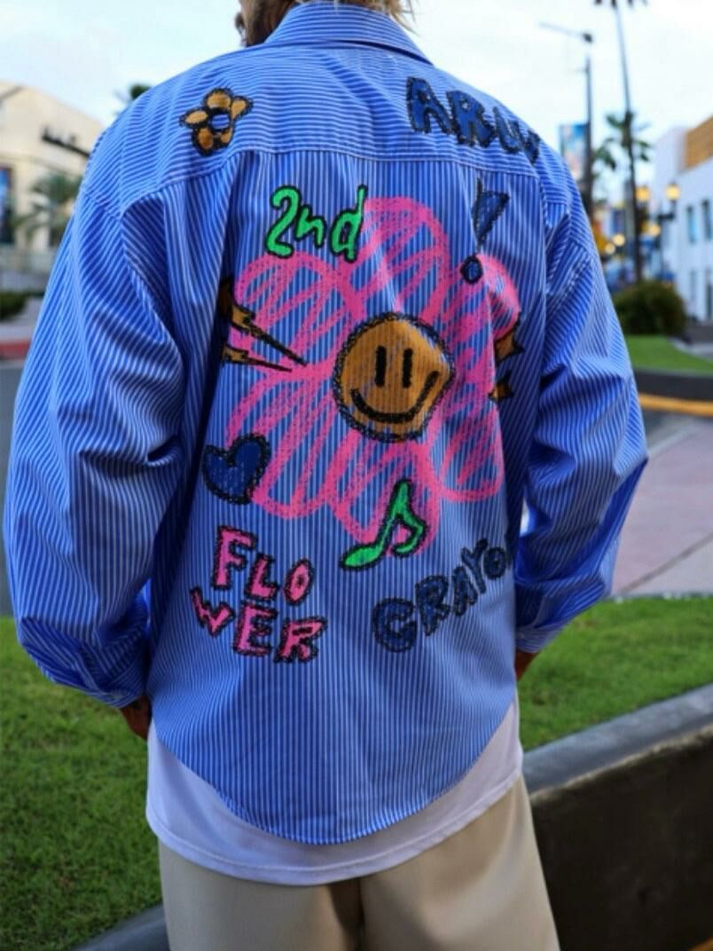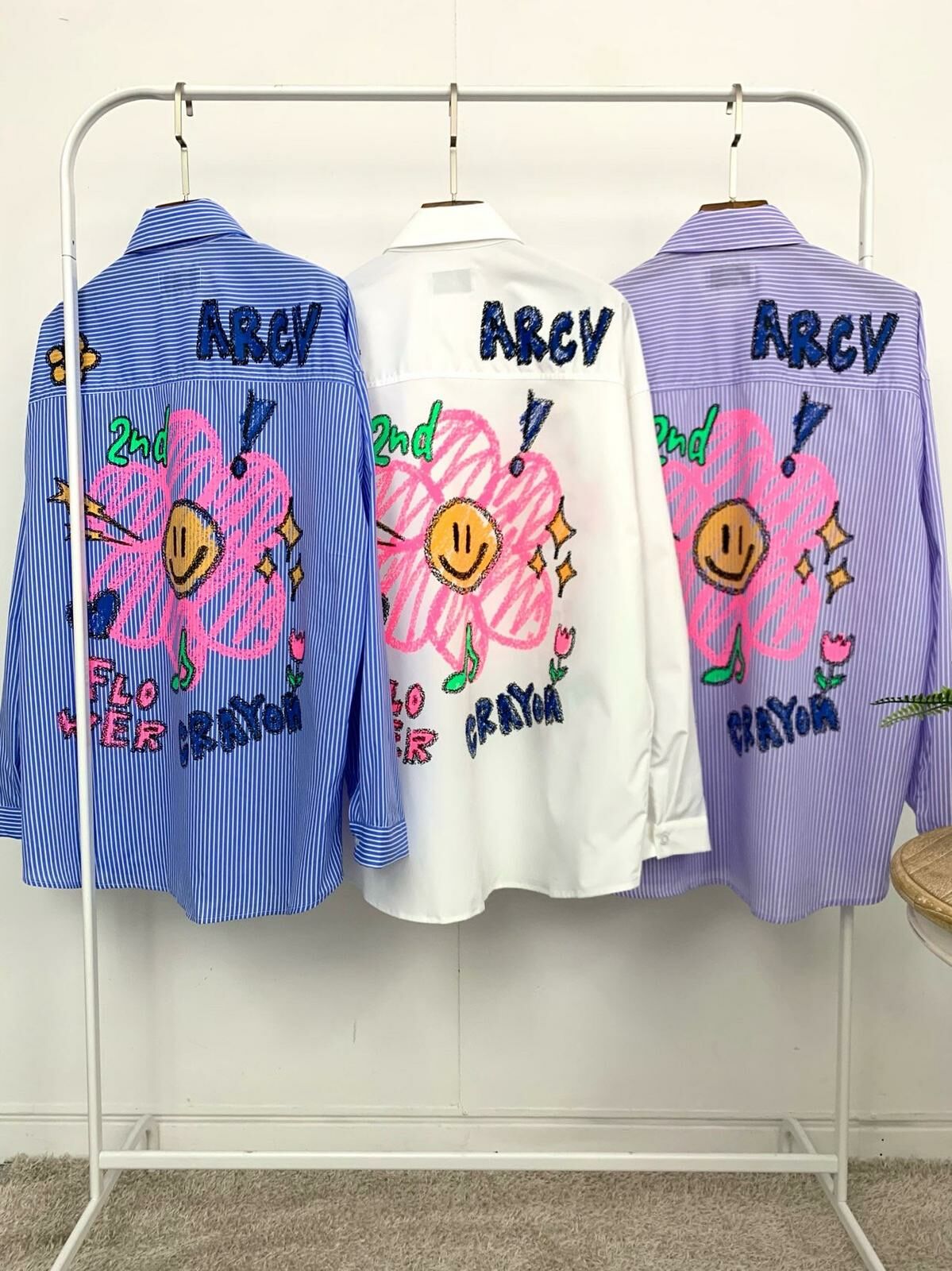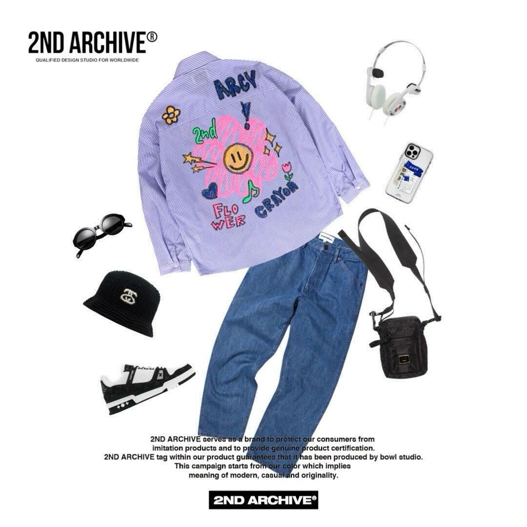 淨色/直間英文字花花圖案長袖恤衫 2nd-216S