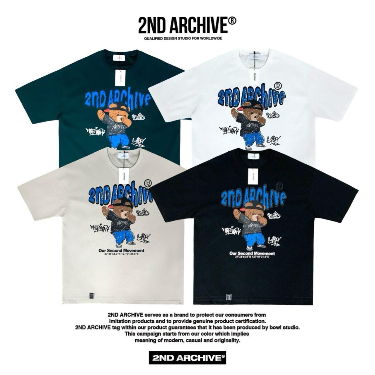 熊仔圖案英文字短袖Tee 2nd-258T