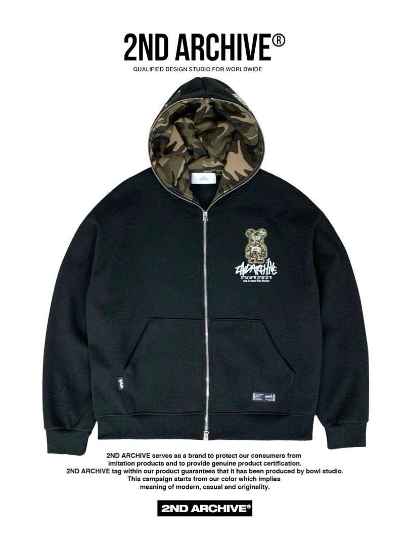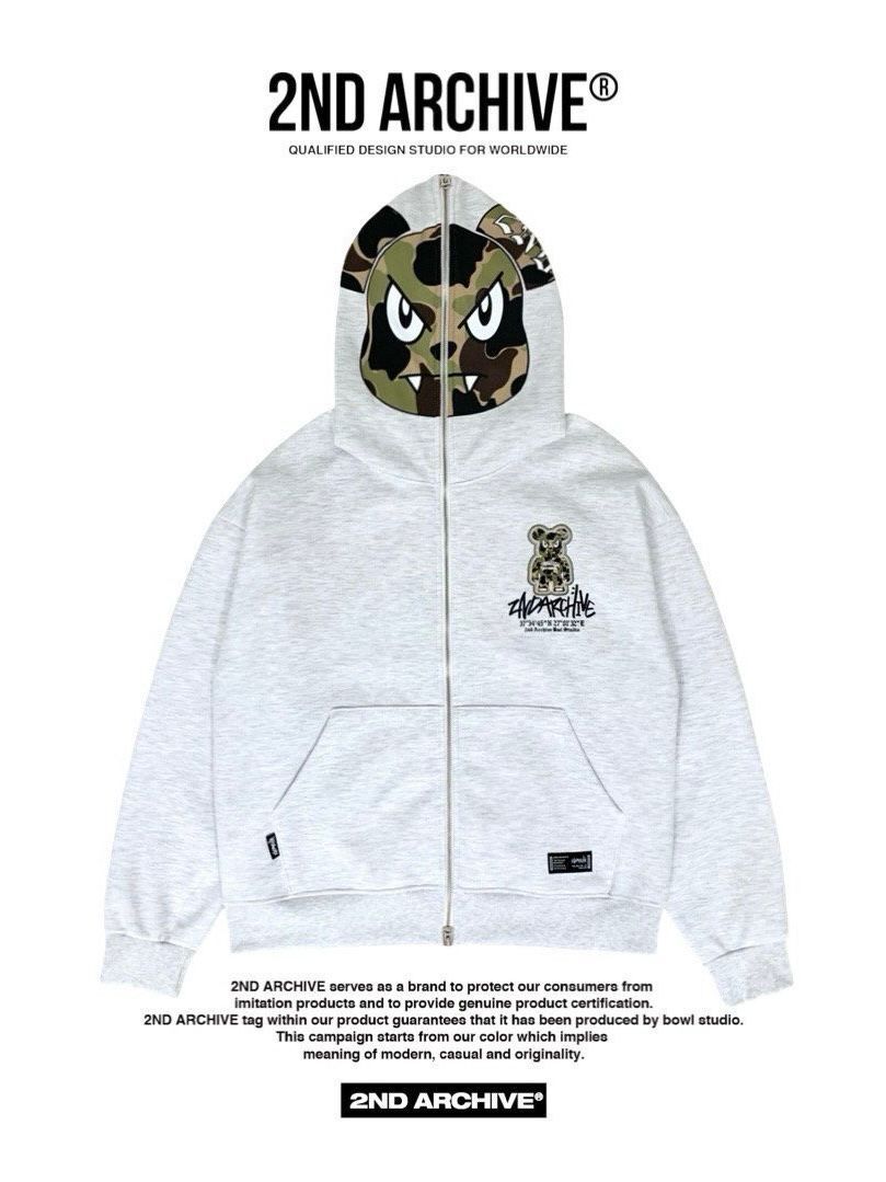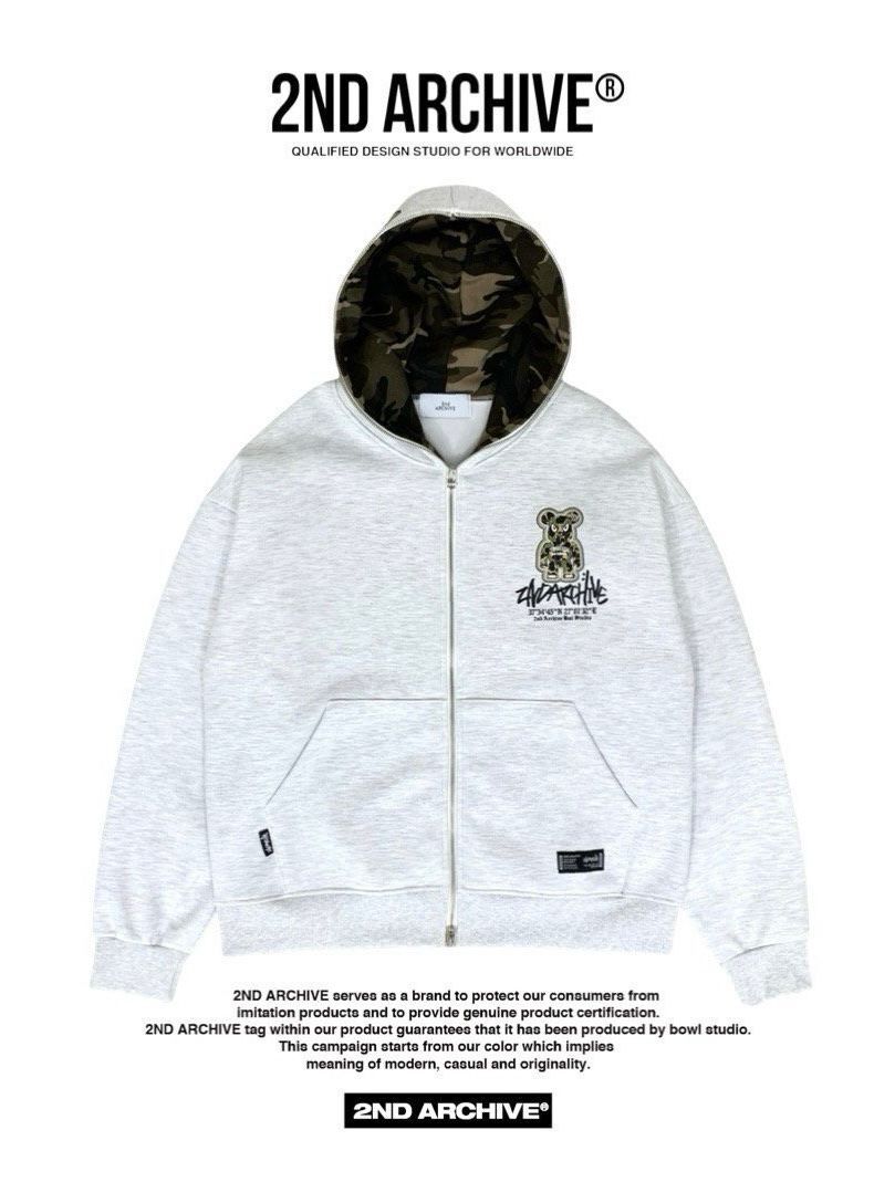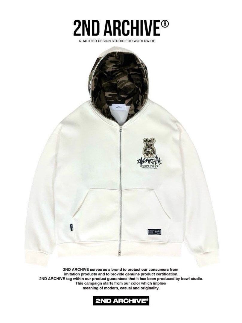 熊仔圖案英文字連帽拉鍊外套 2nd-269JK