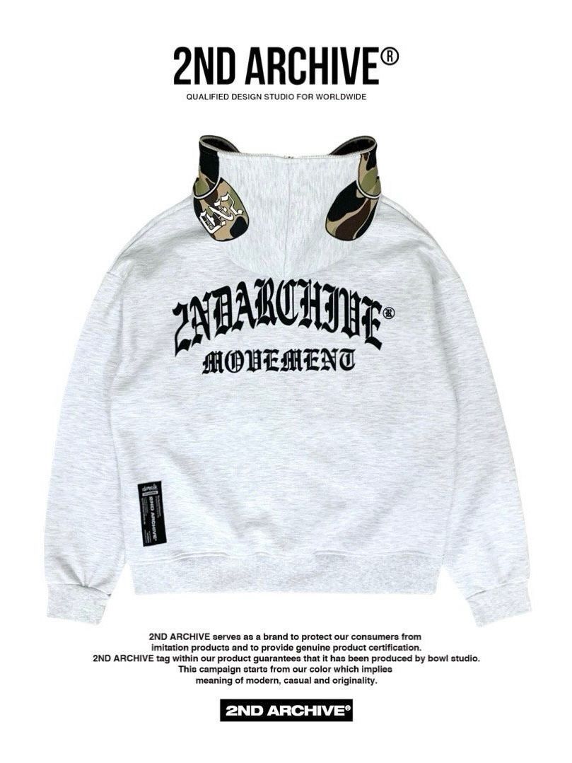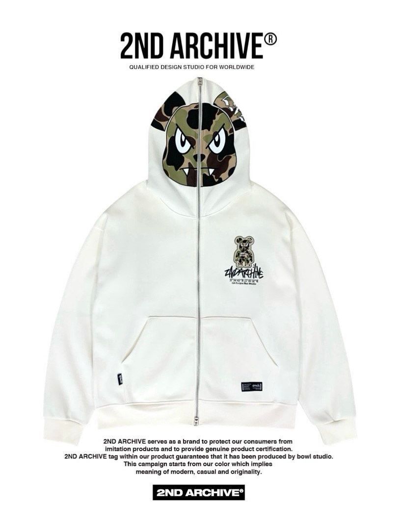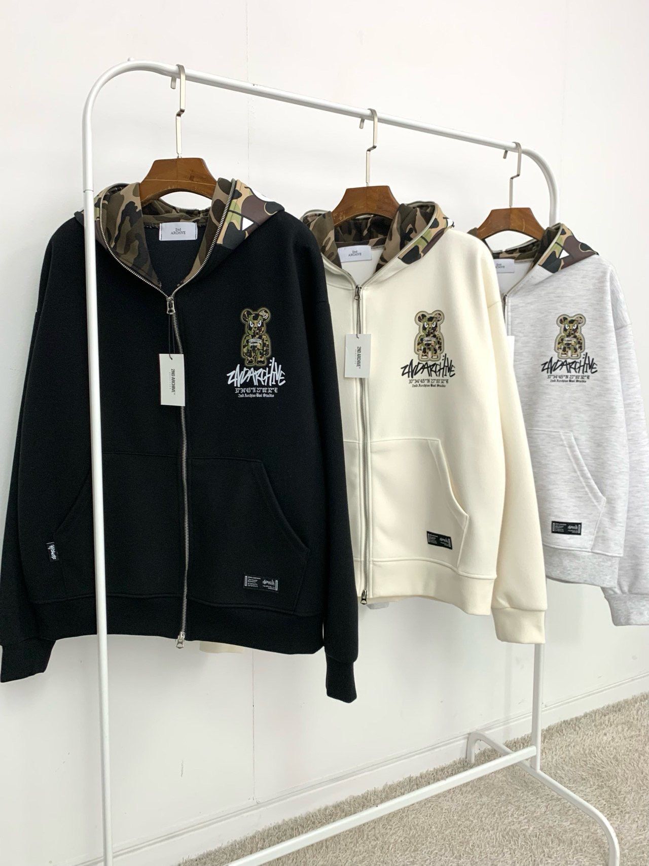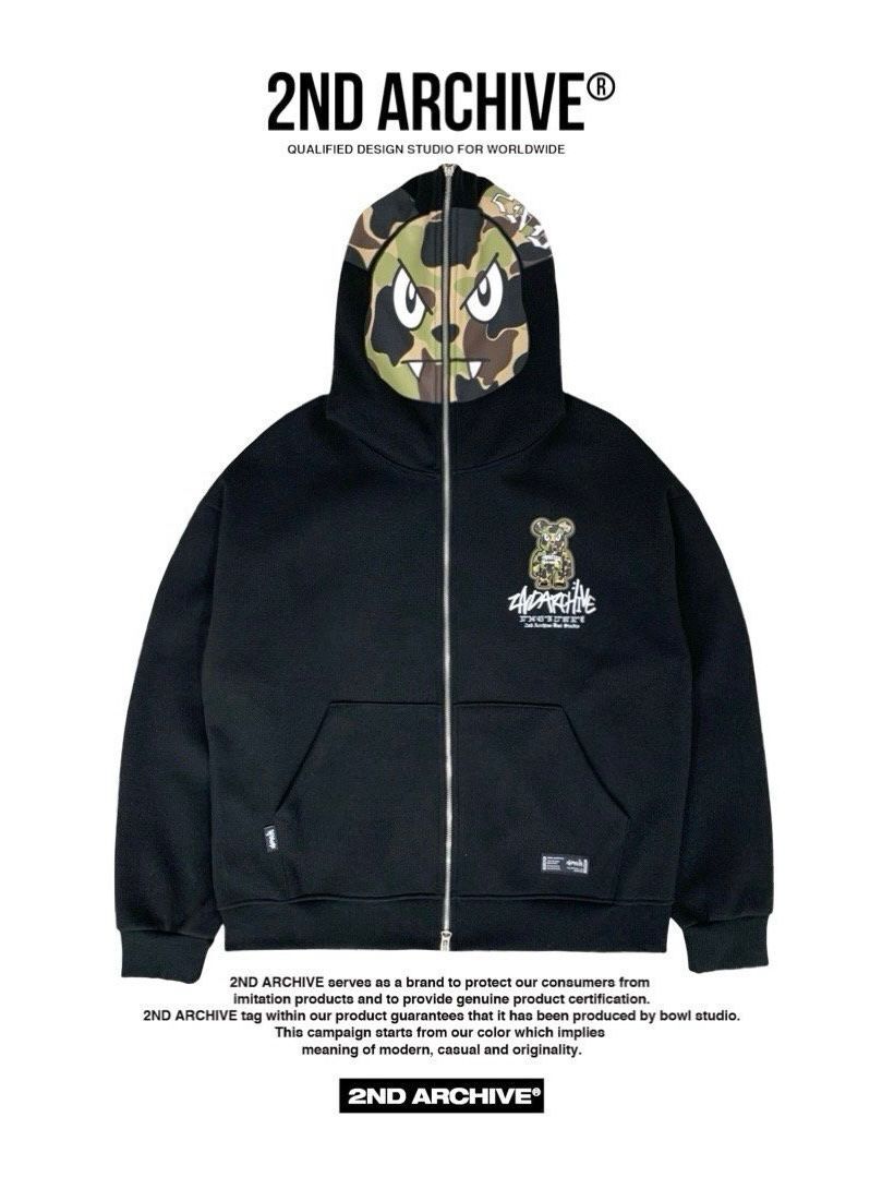 熊仔圖案英文字連帽拉鍊外套 2nd-269JK