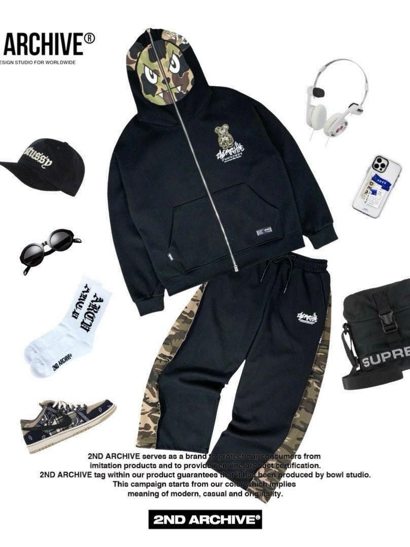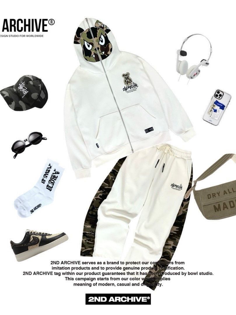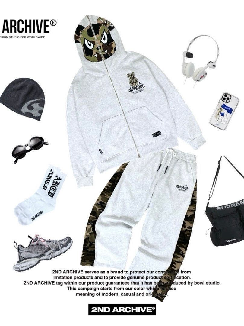 英文字拼迷彩可束腳運動褲 2nd-270P