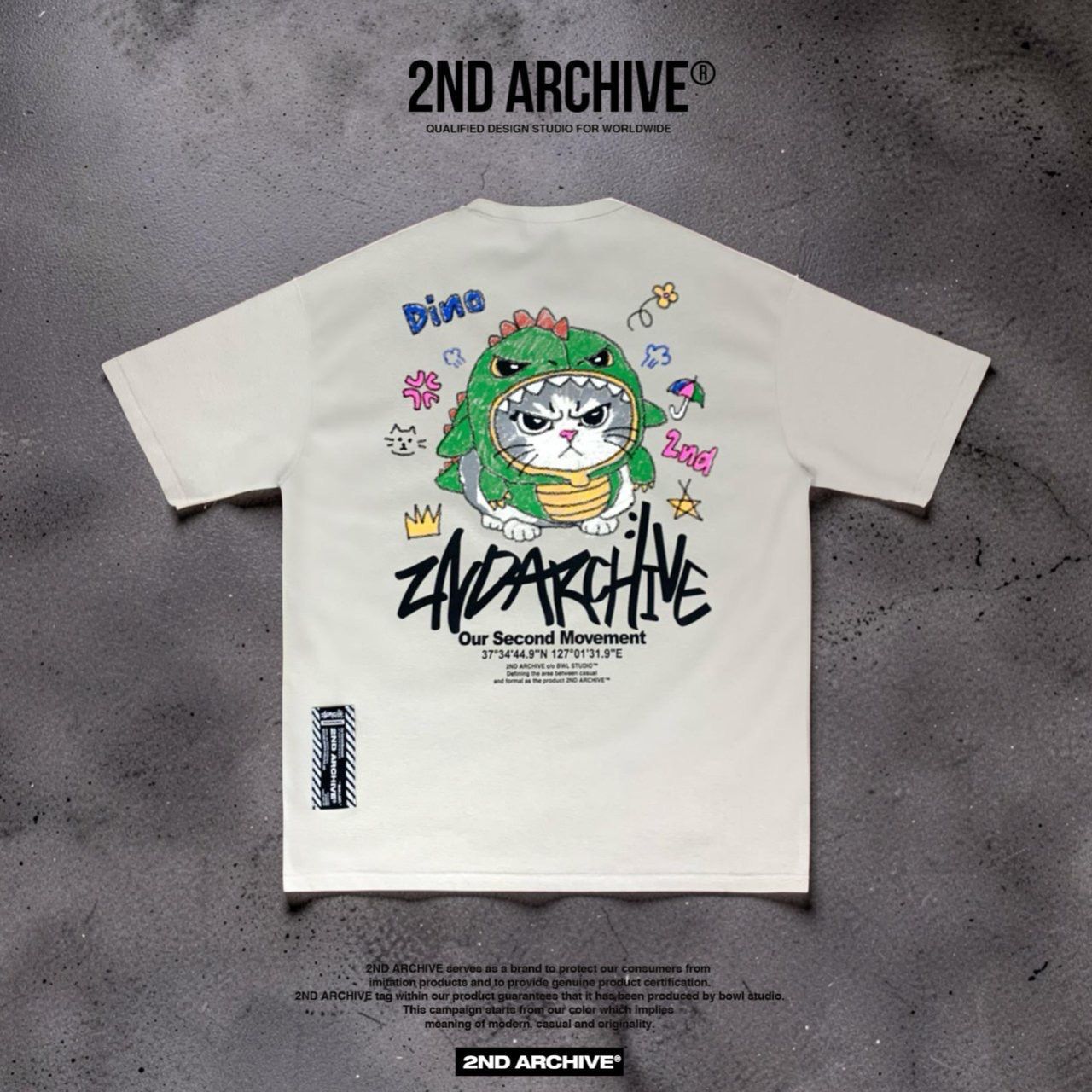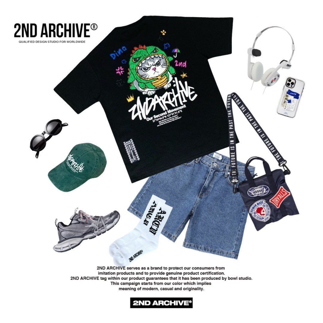 貓仔圖案英文字短袖Tee 2nd-344T