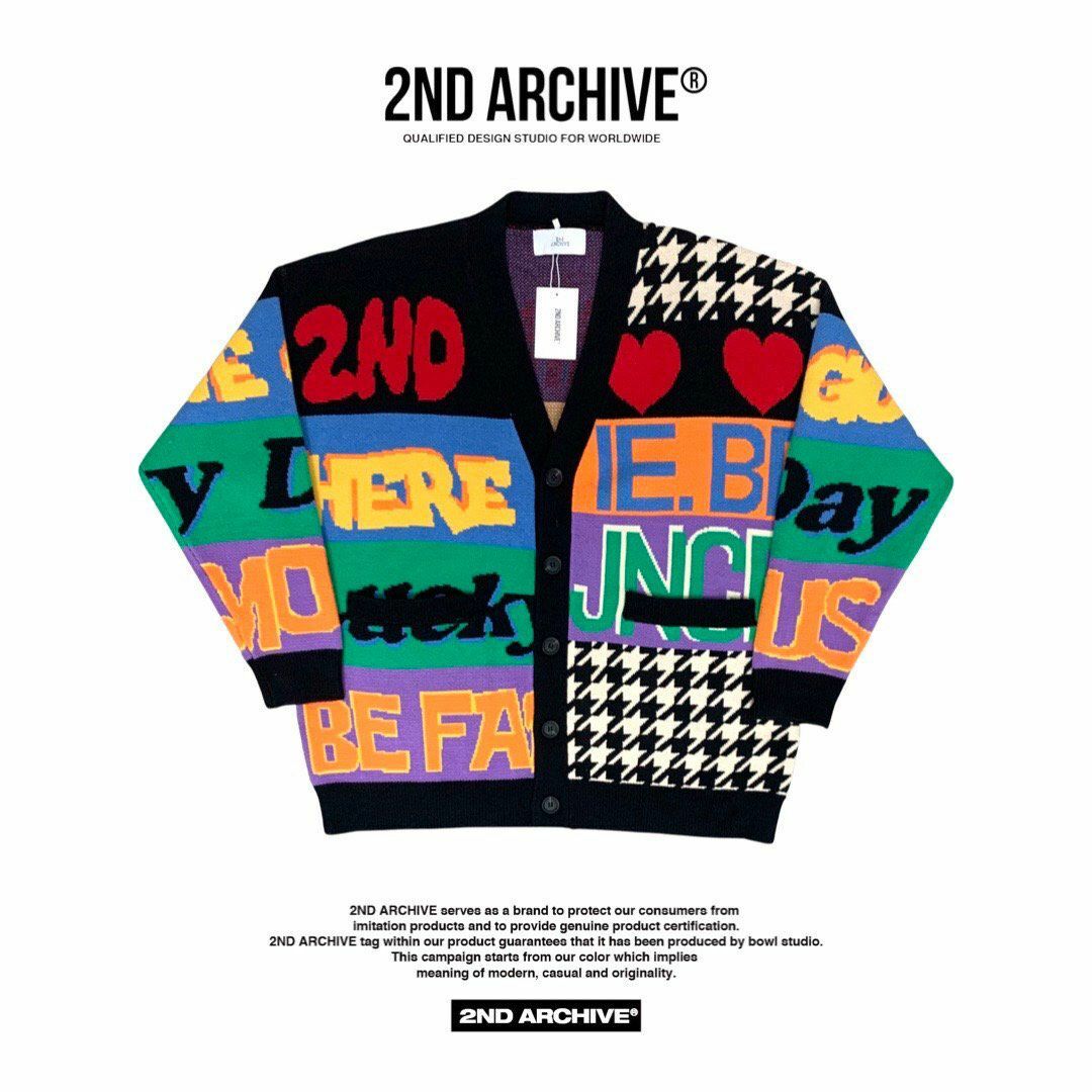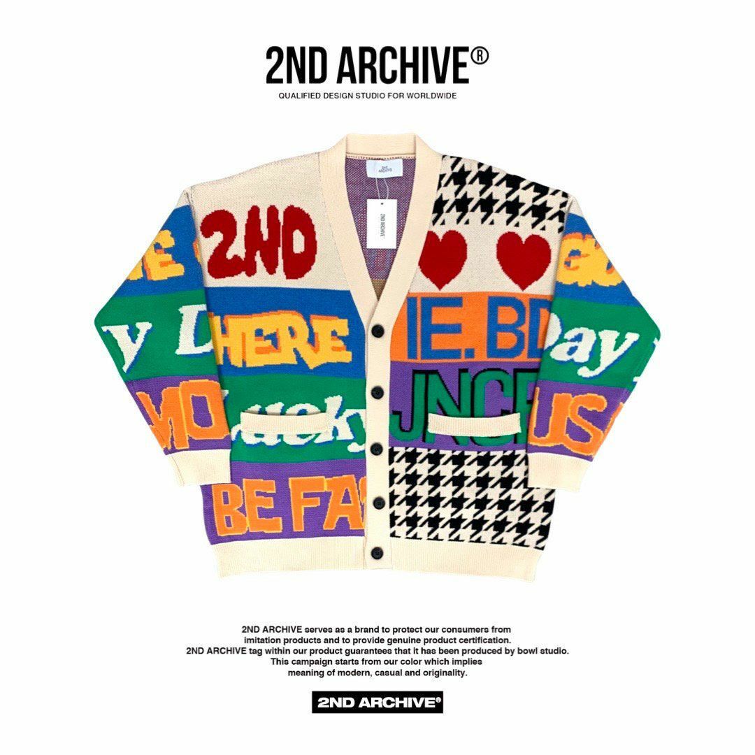 英文字圖案開胸針織外套 2nd ARCHIVE-027JK