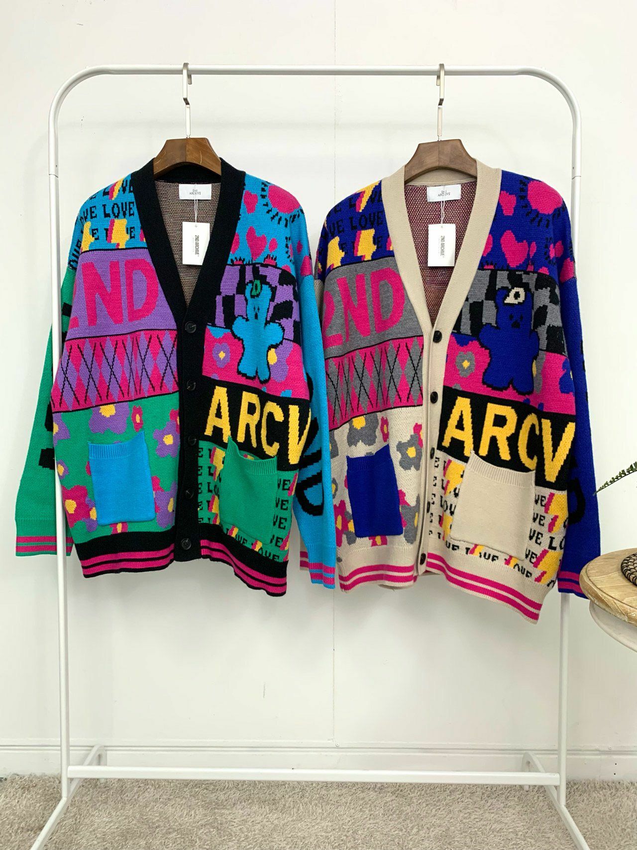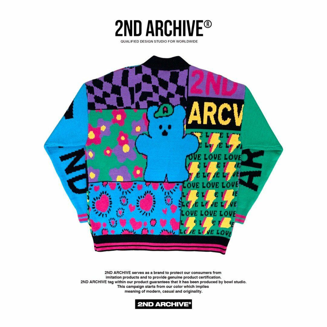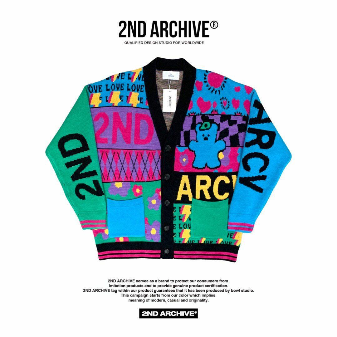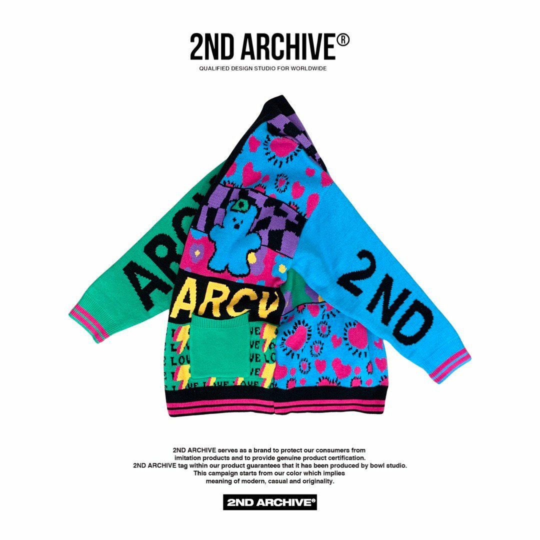 英文字圖案開胸針織外套 2nd ARCHIVE-042JK