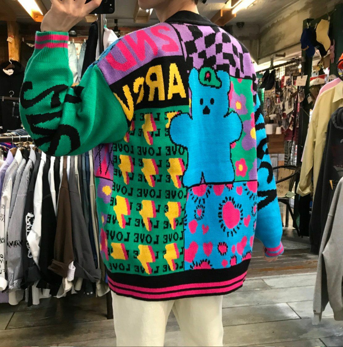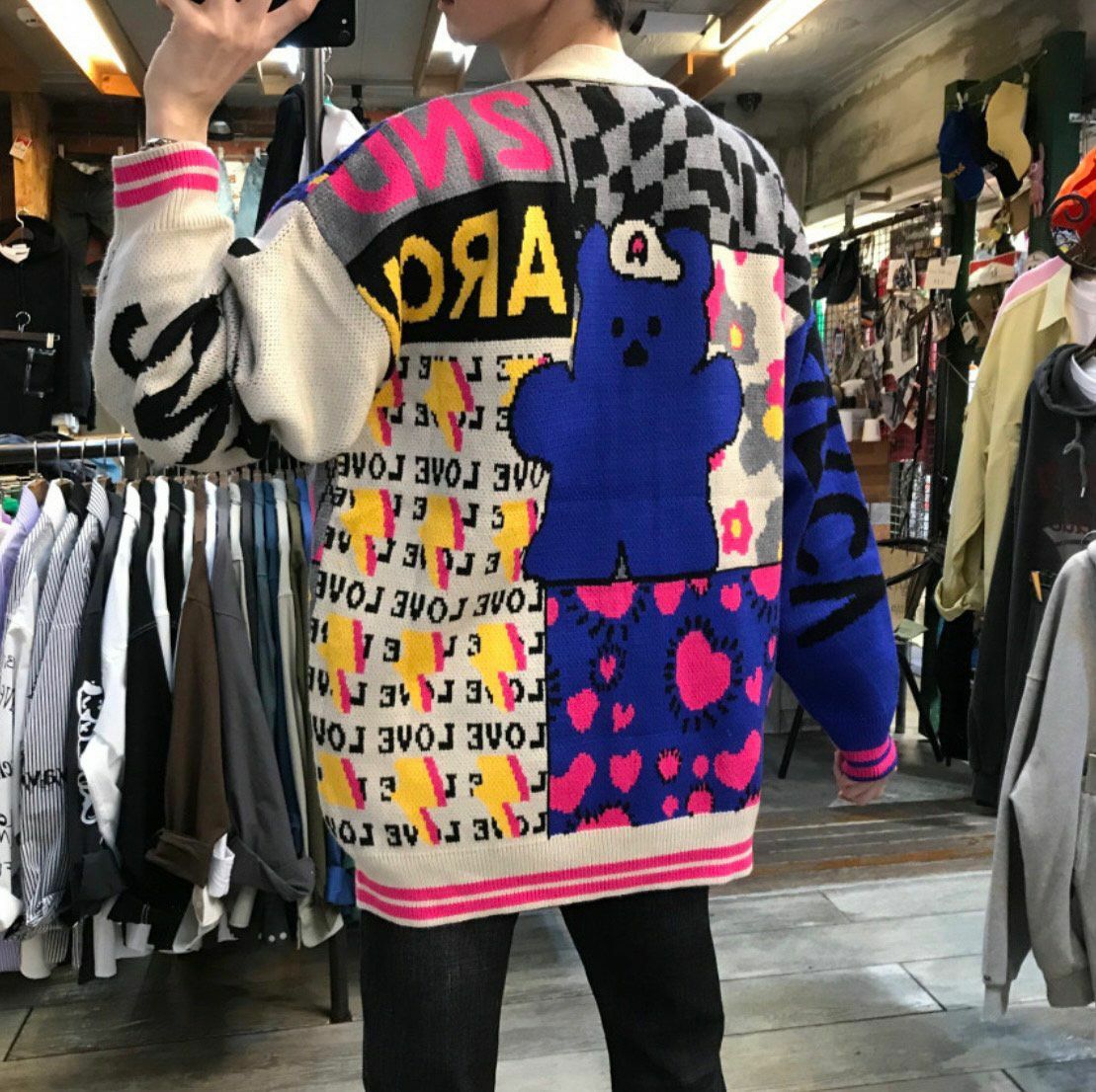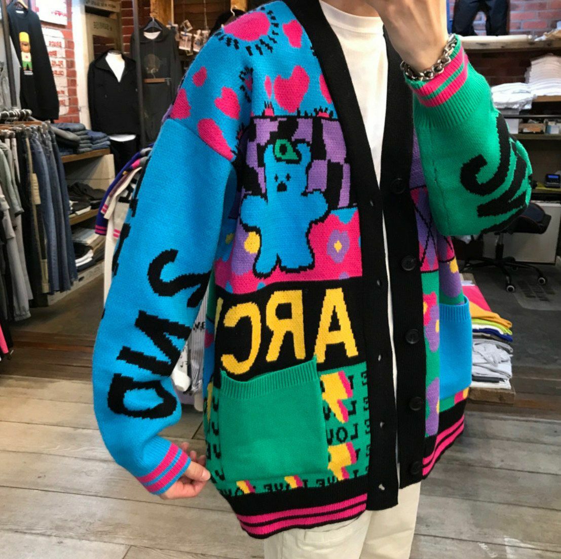 英文字圖案開胸針織外套 2nd ARCHIVE-042JK