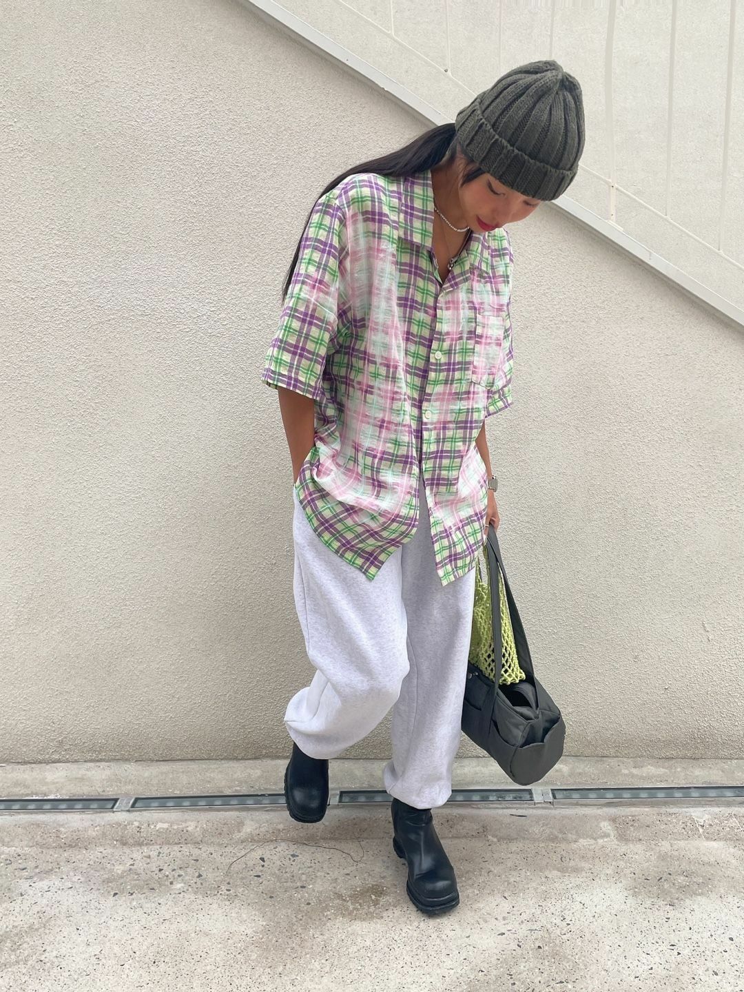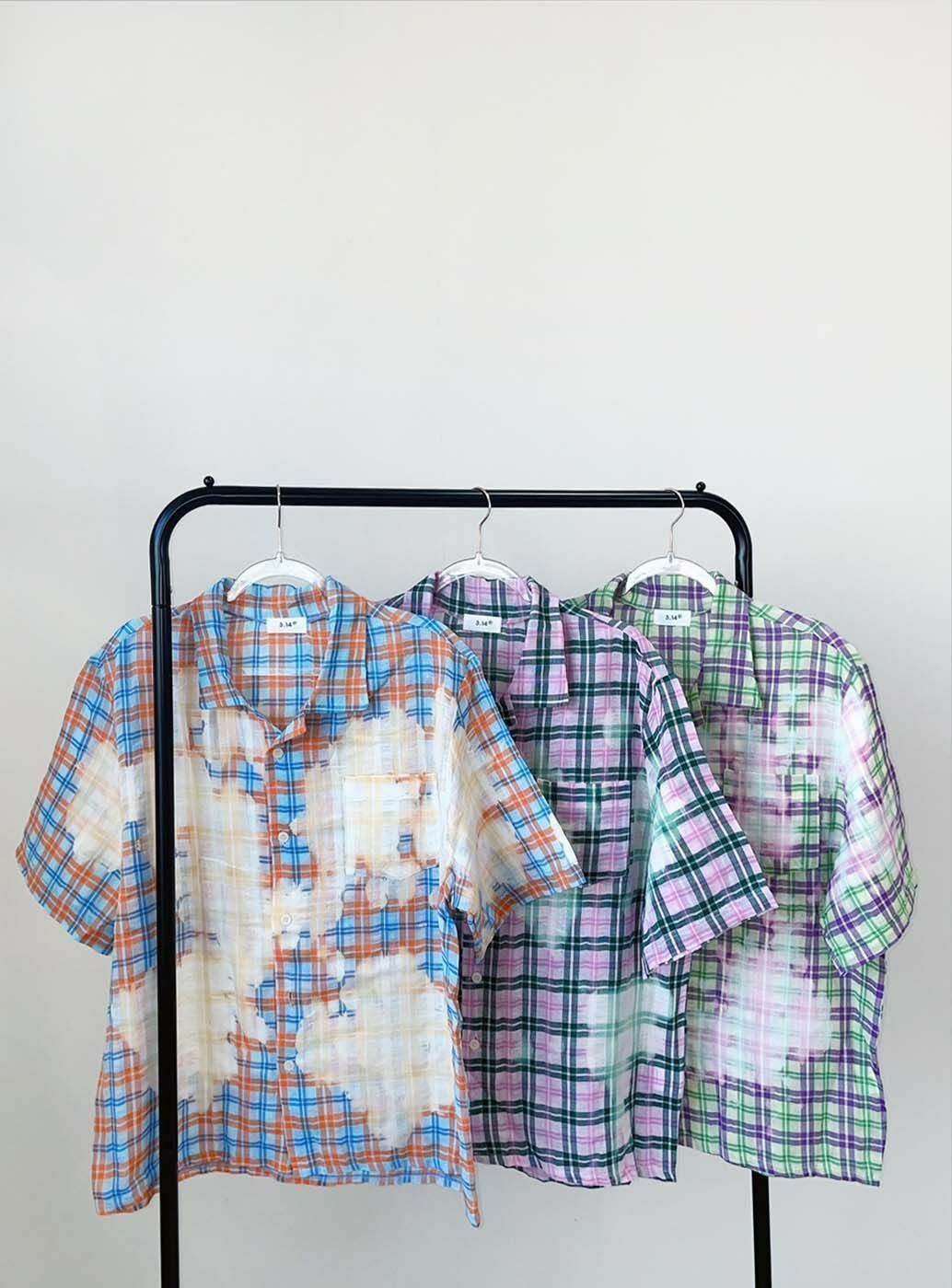 紮染格紋短袖恤衫 3.14-032S