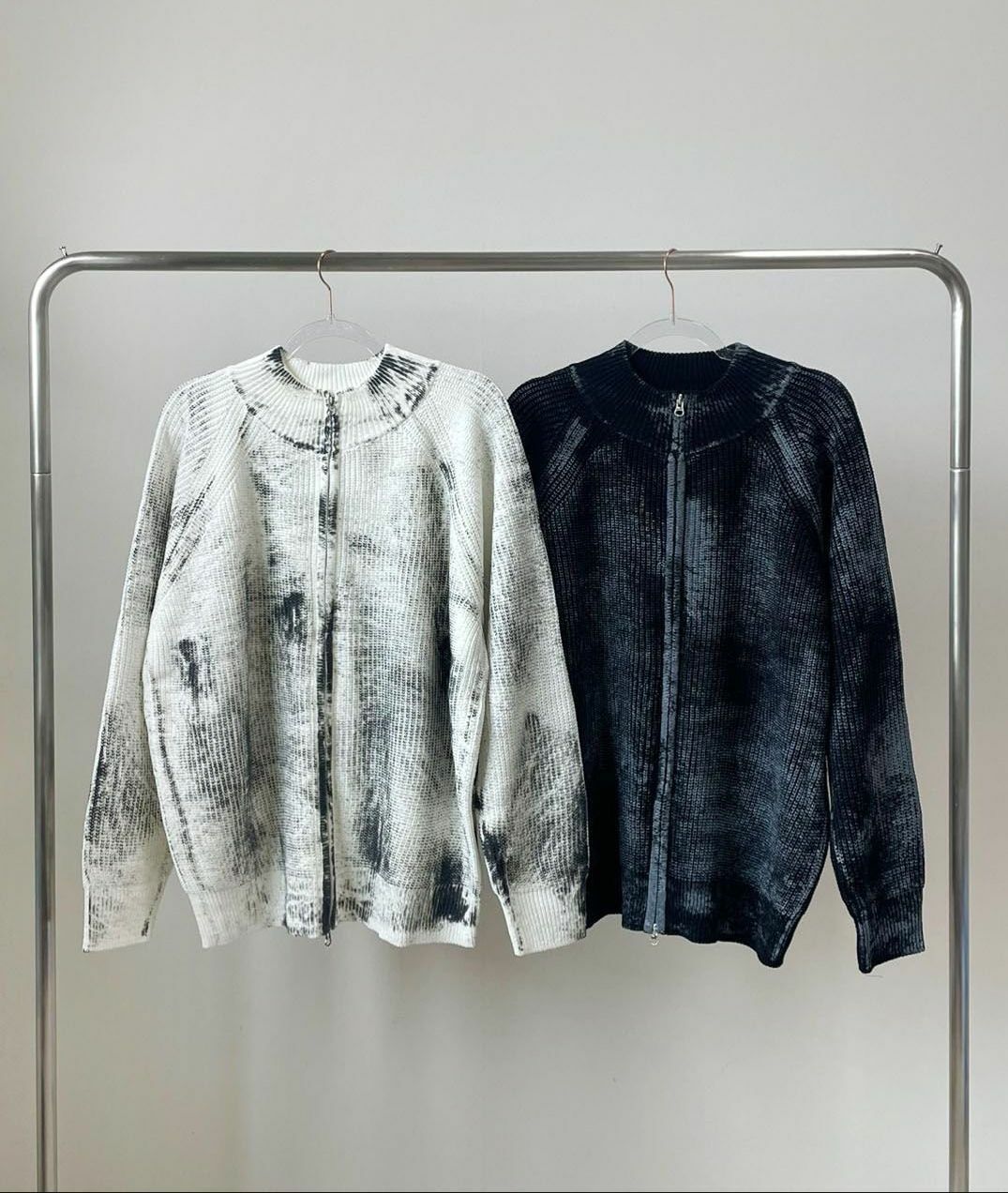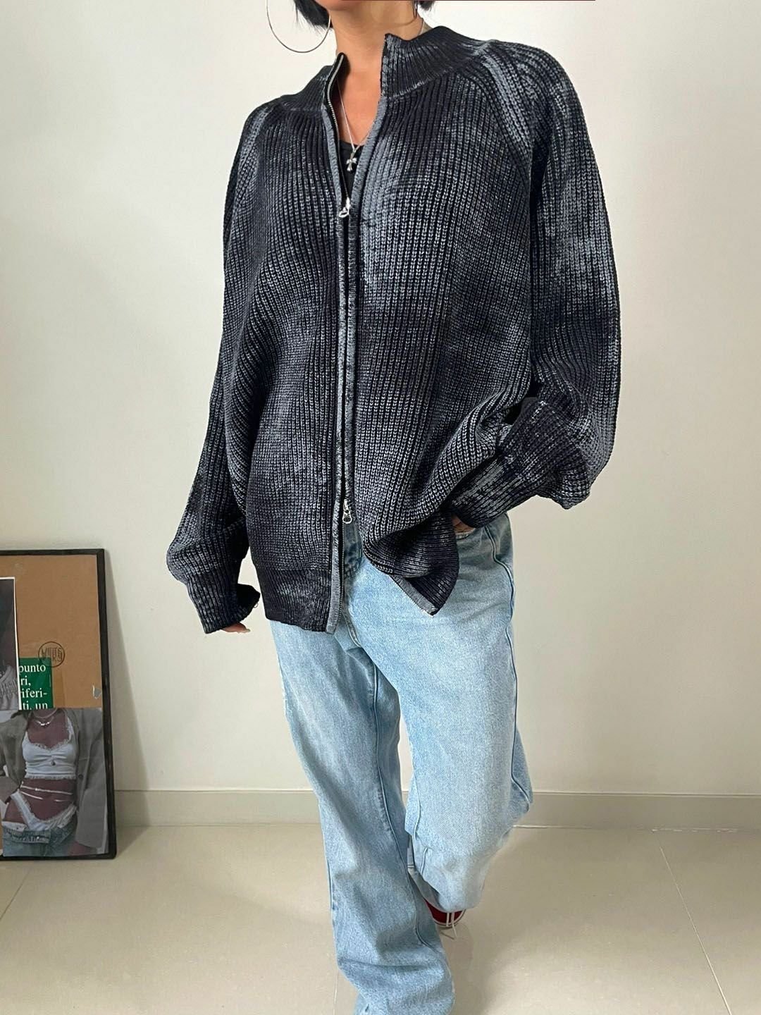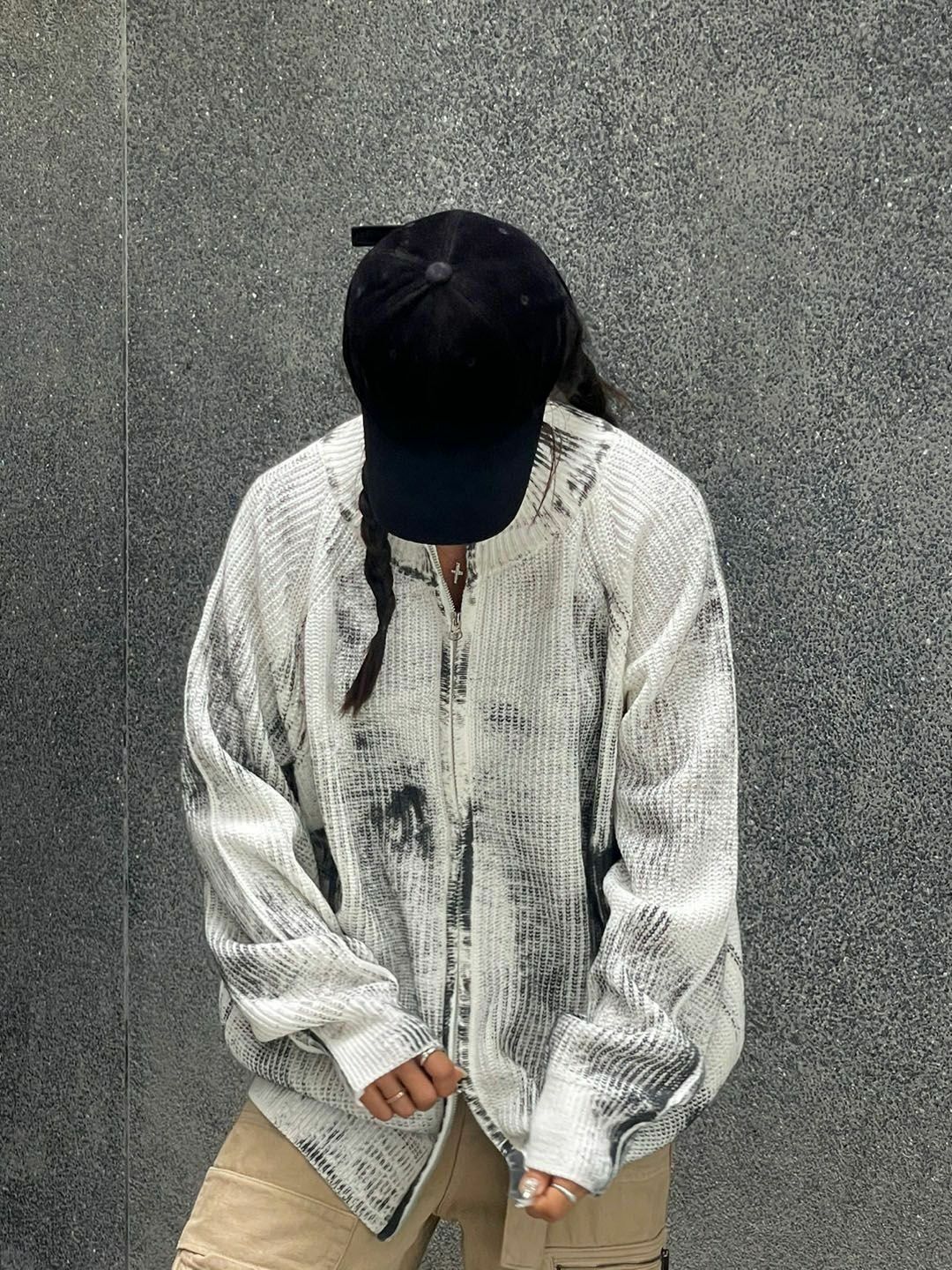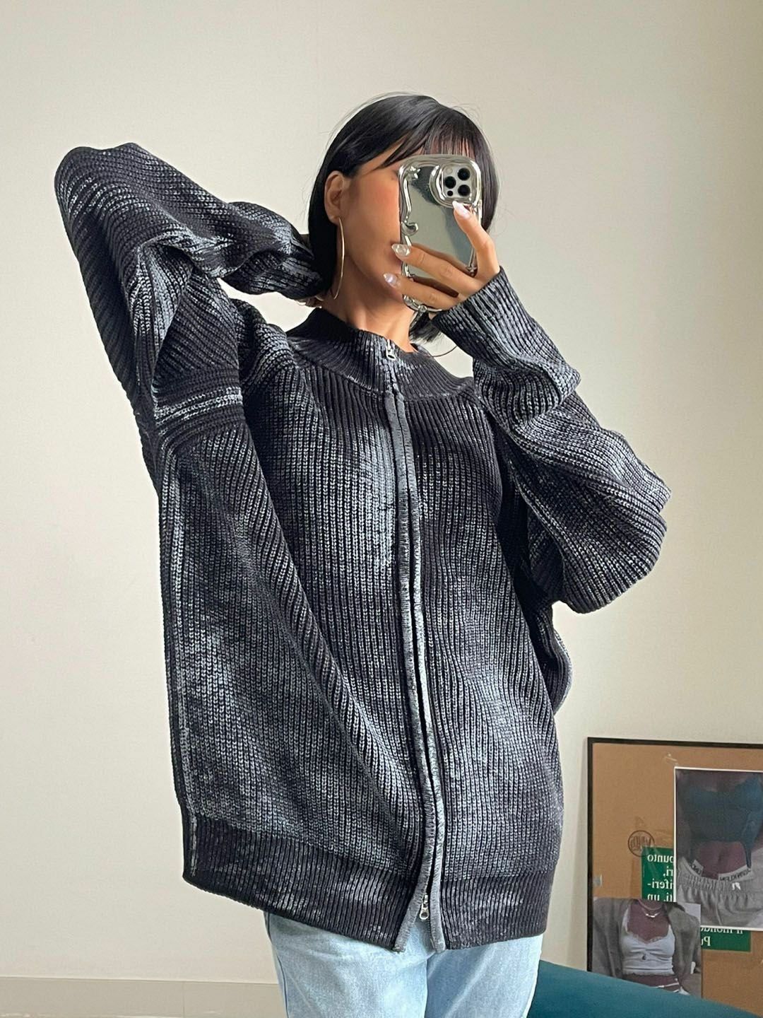 仿污圓領開胸針織外套 3.14-062JK