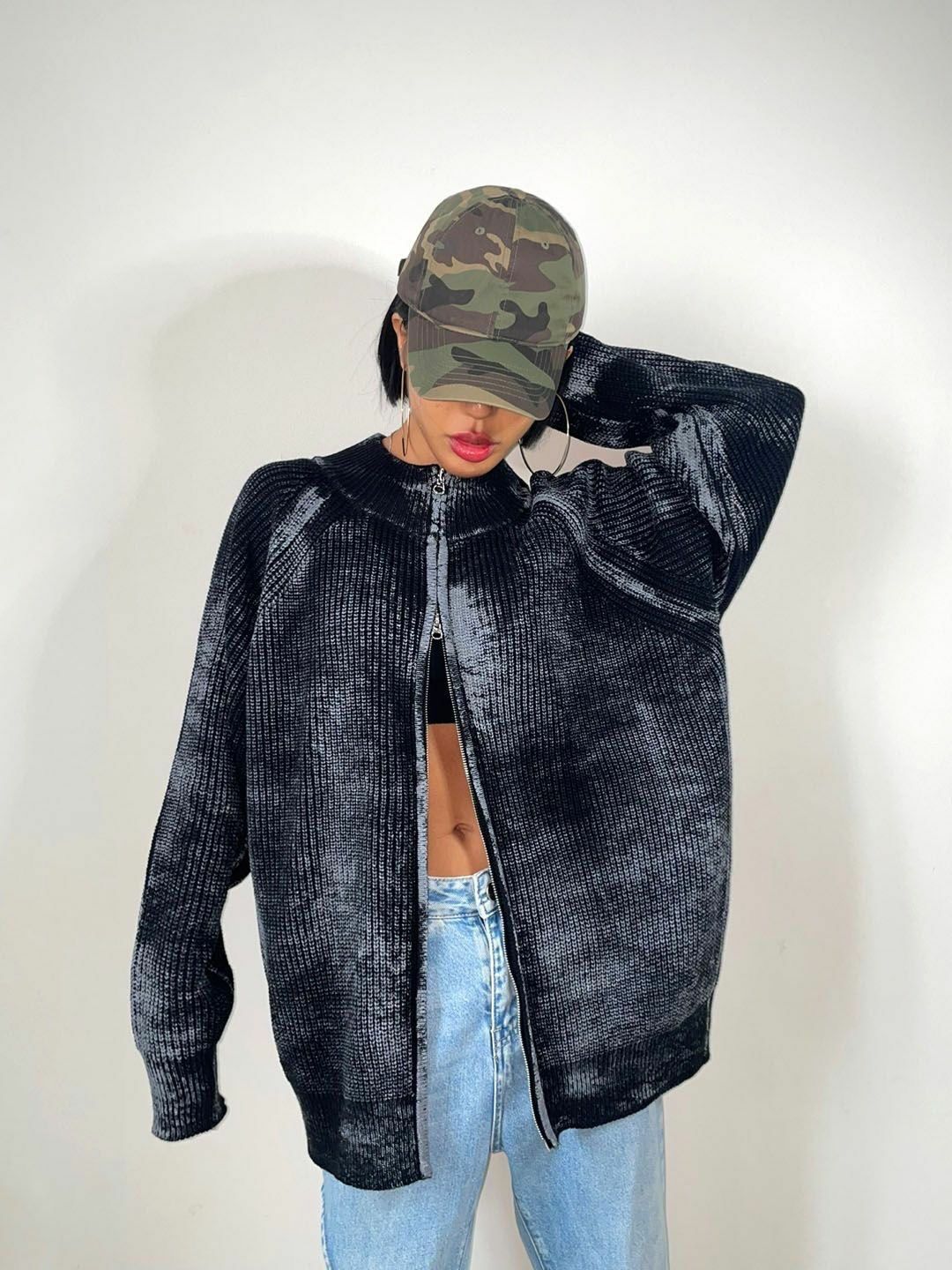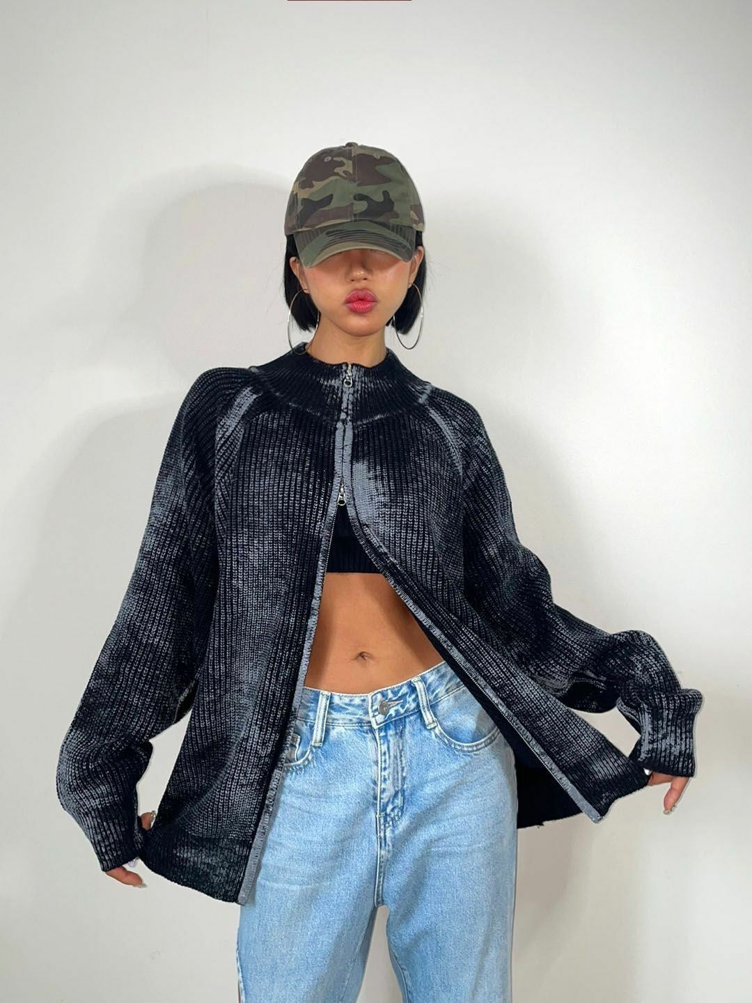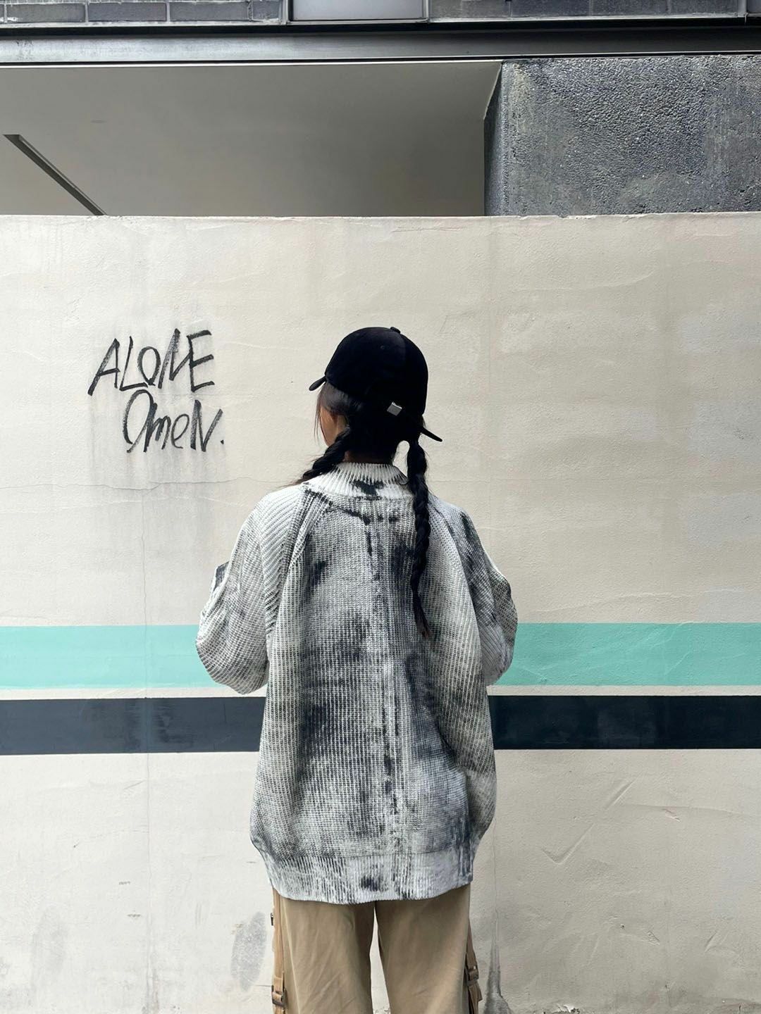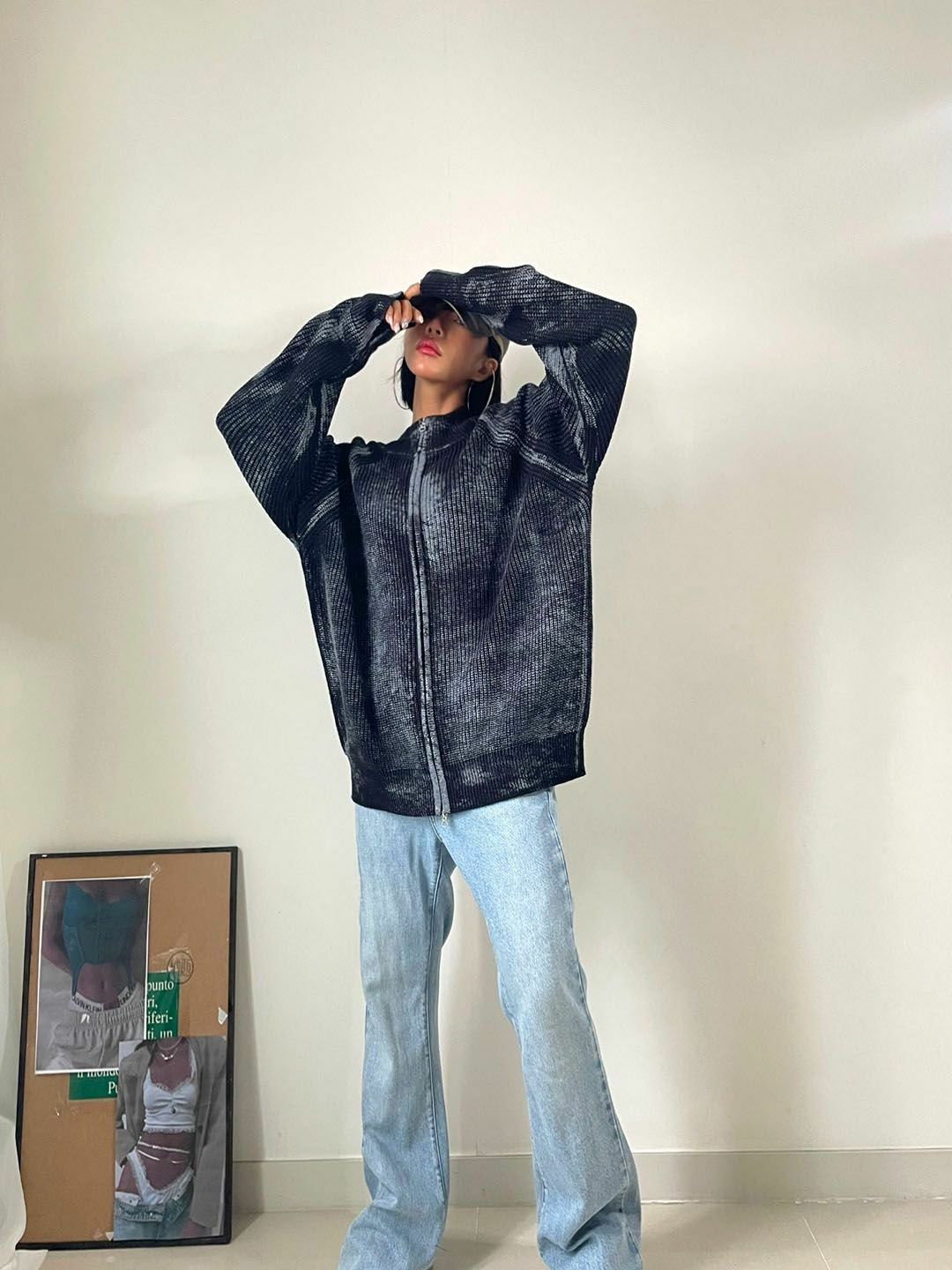 仿污圓領開胸針織外套 3.14-062JK