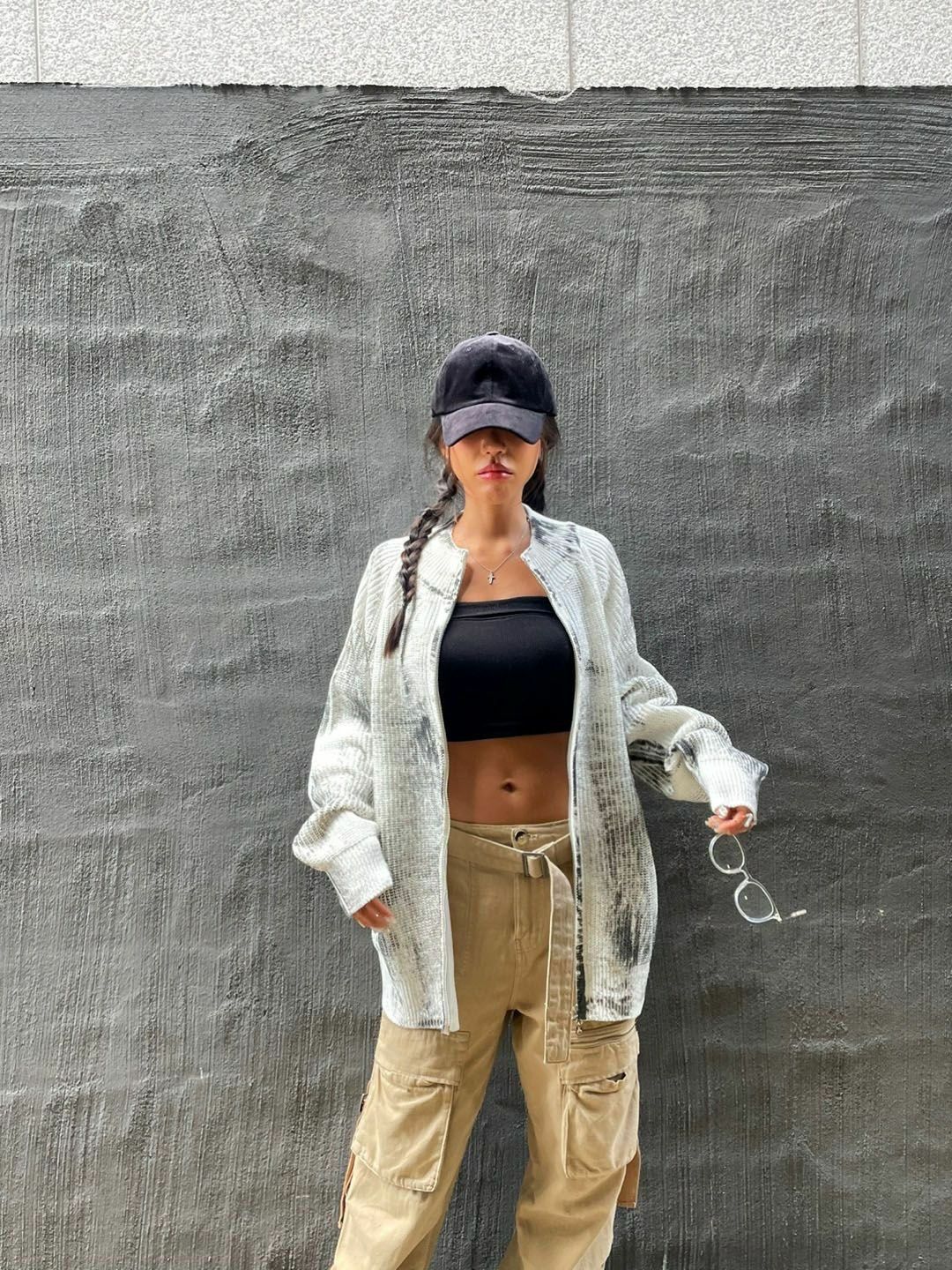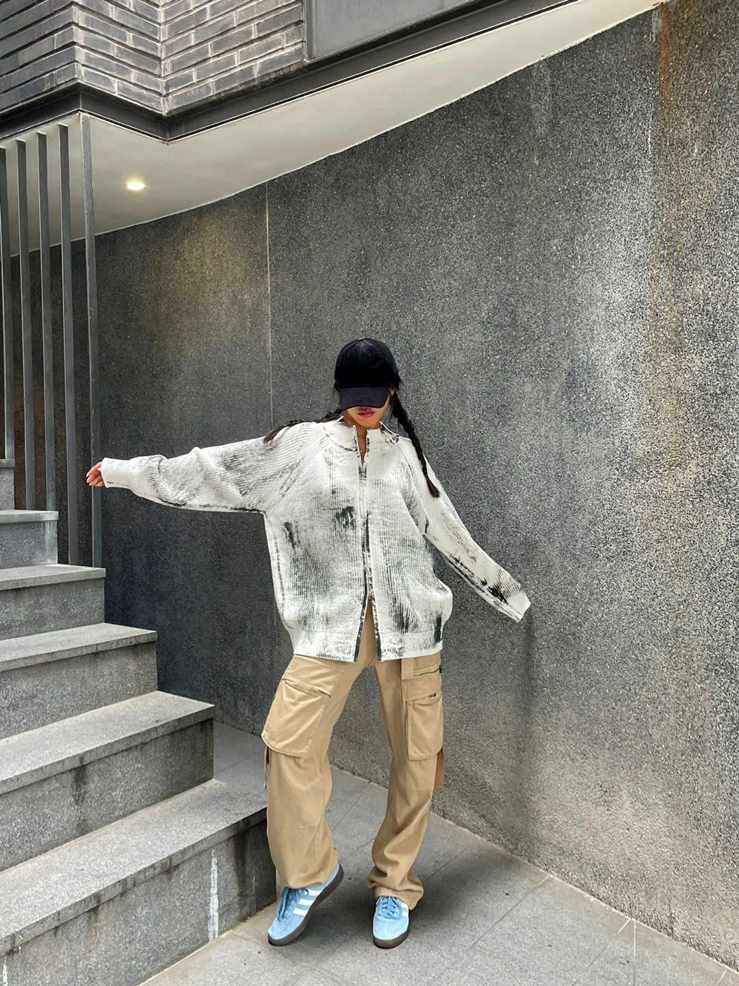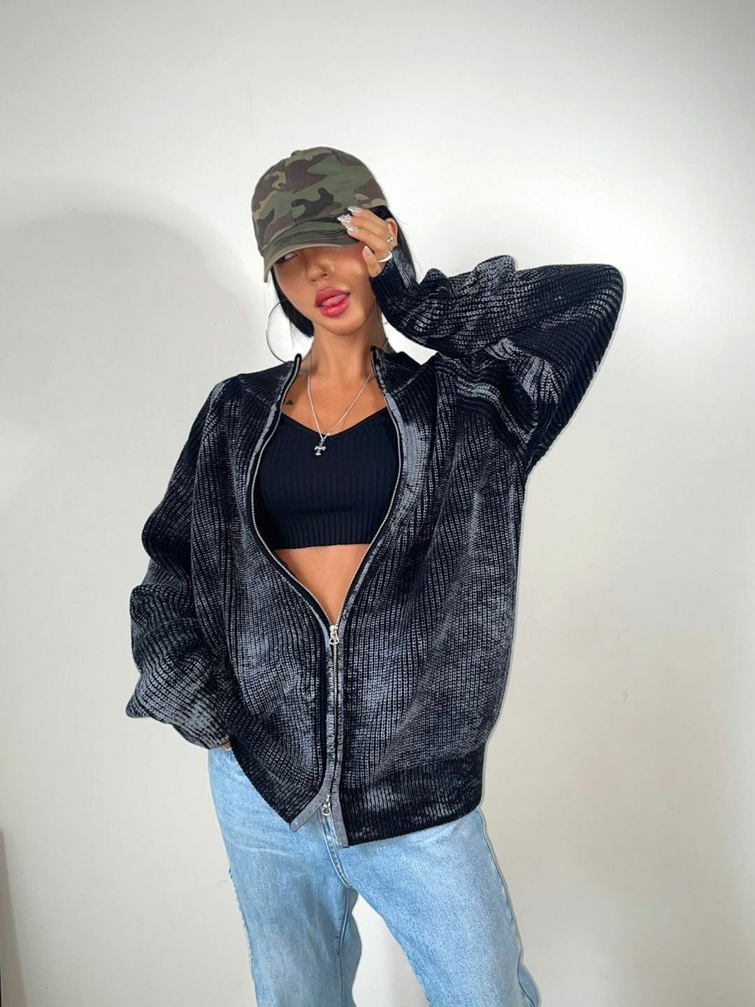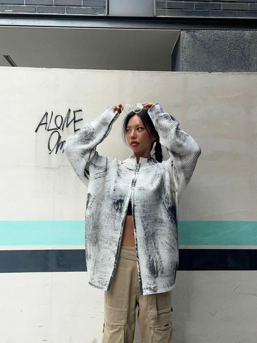 仿污圓領開胸針織外套 3.14-062JK