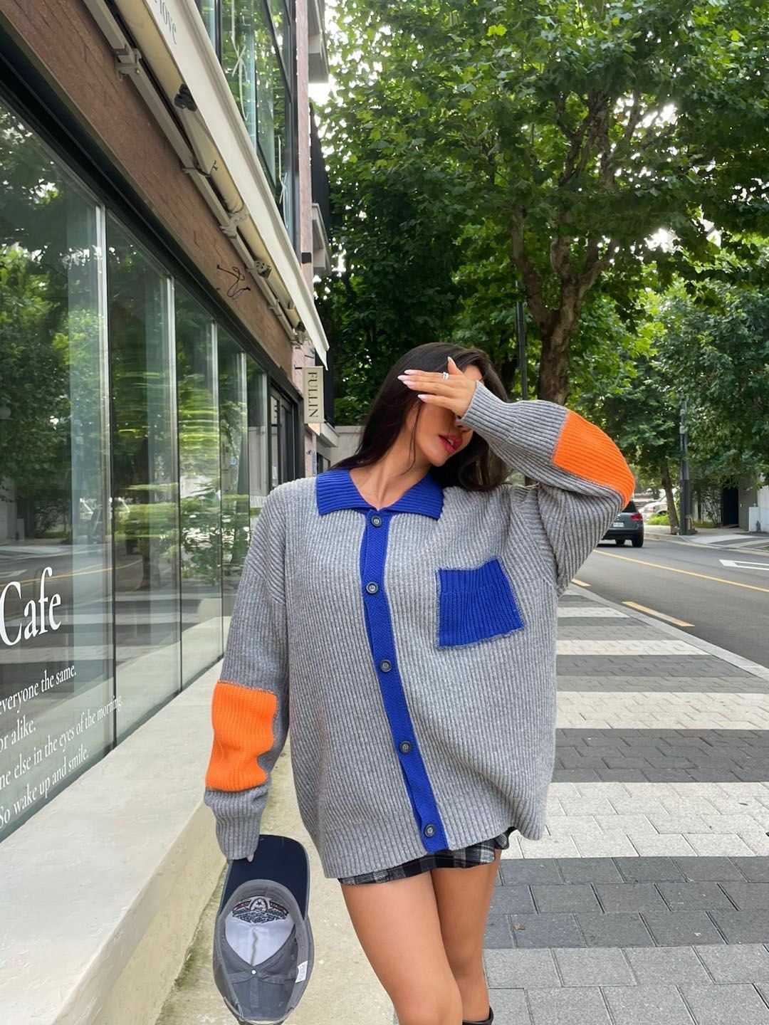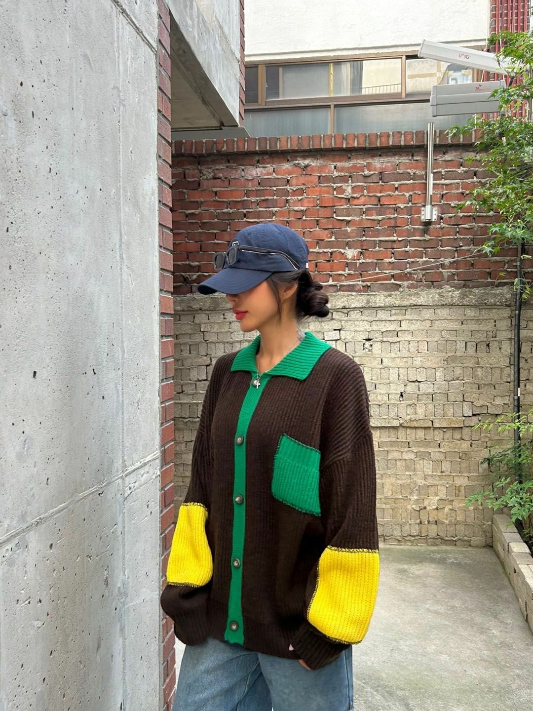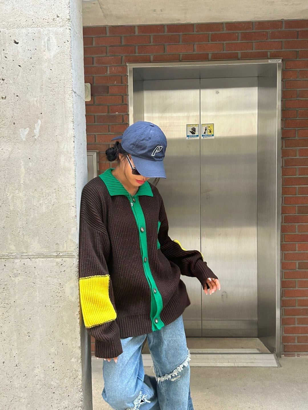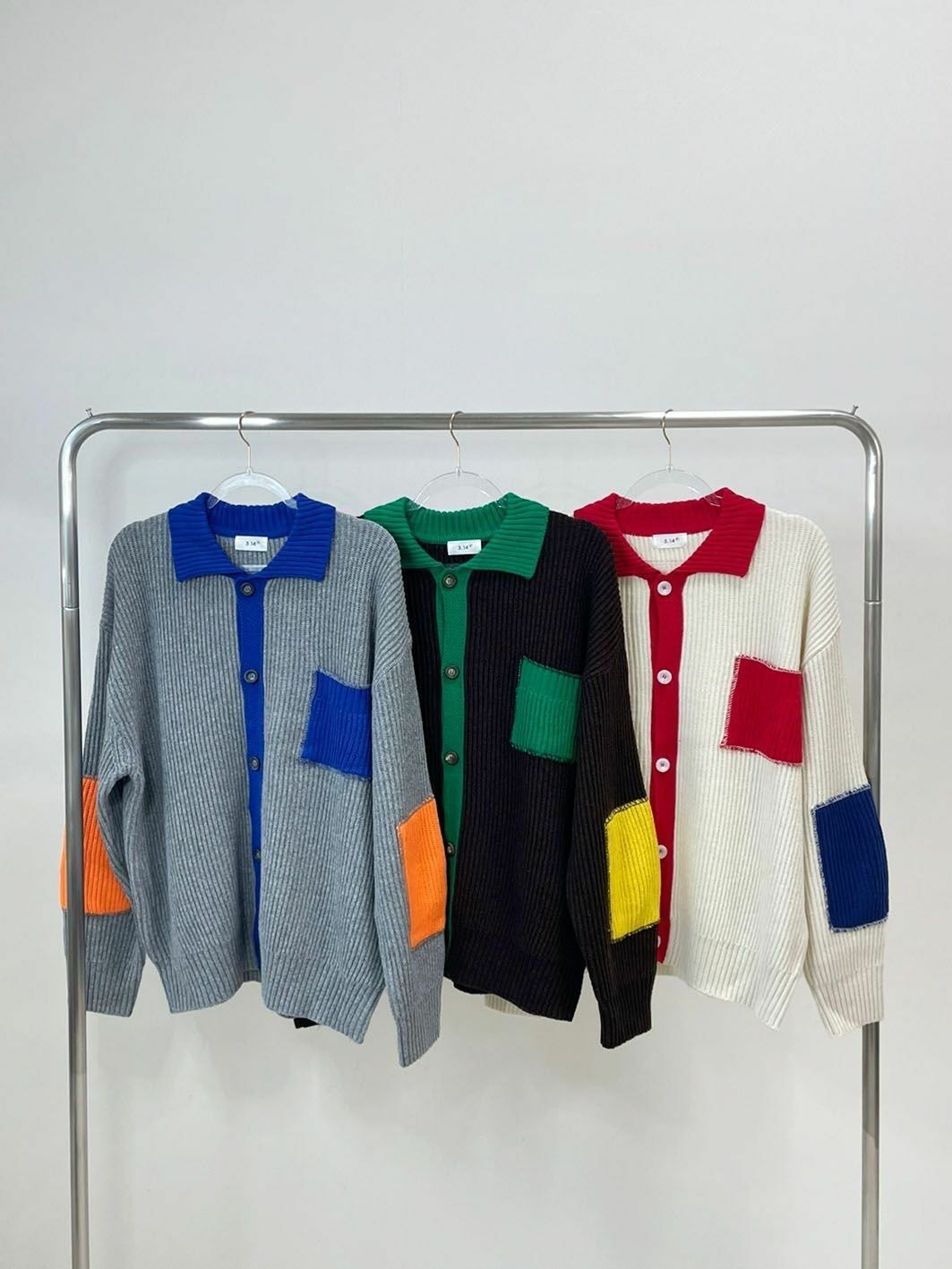 拼色反領開胸針織外套 3.14-064JK