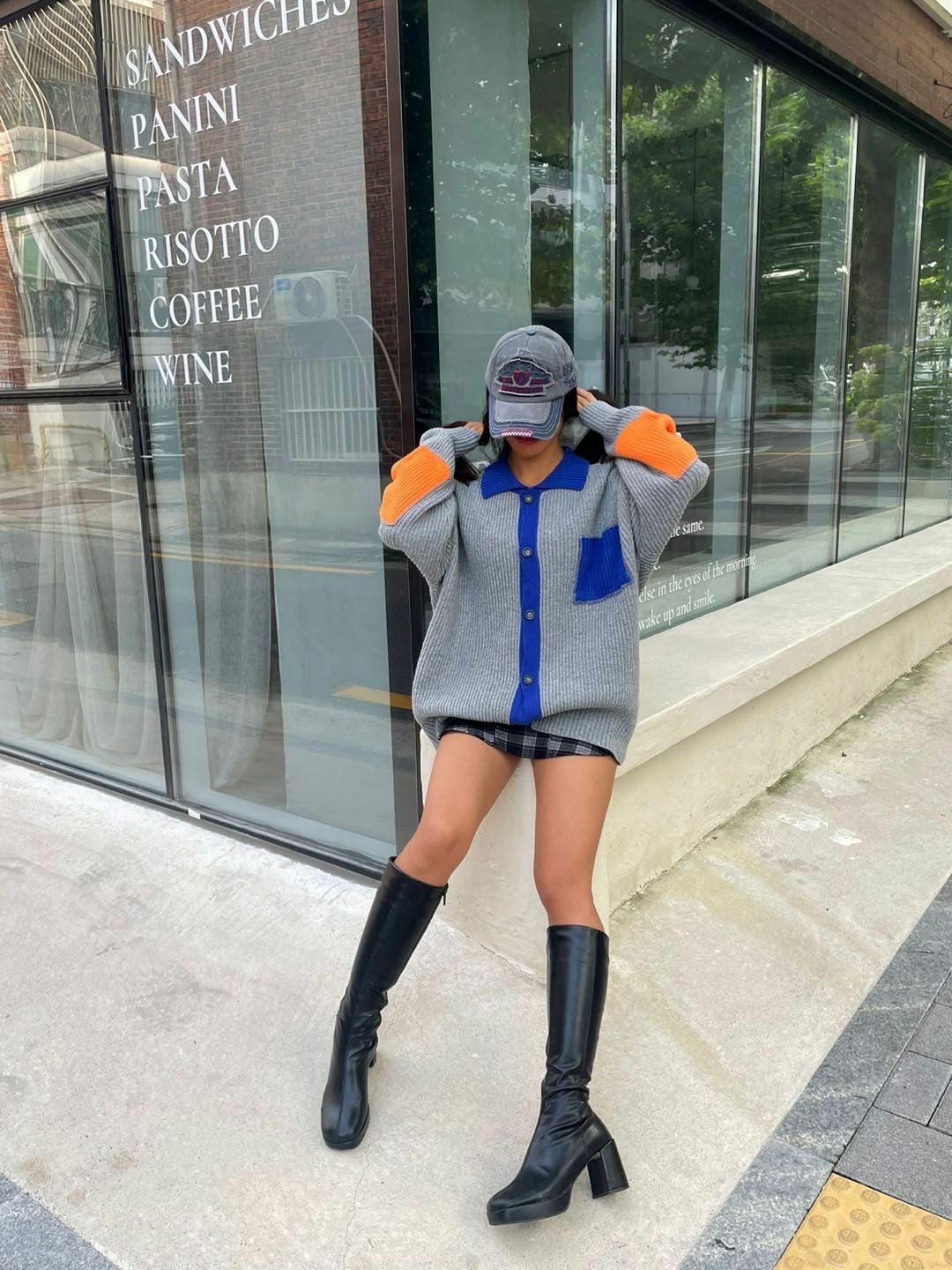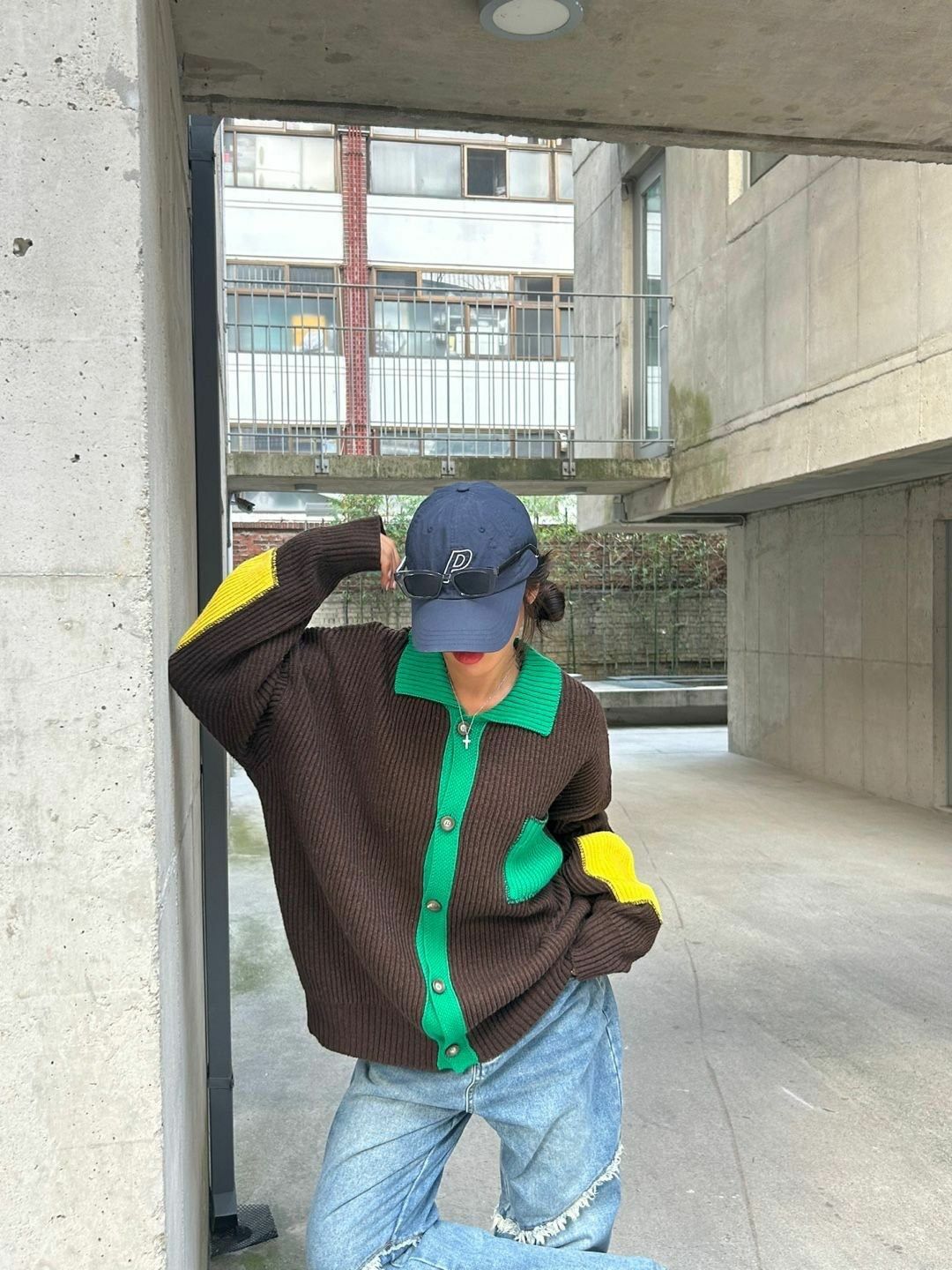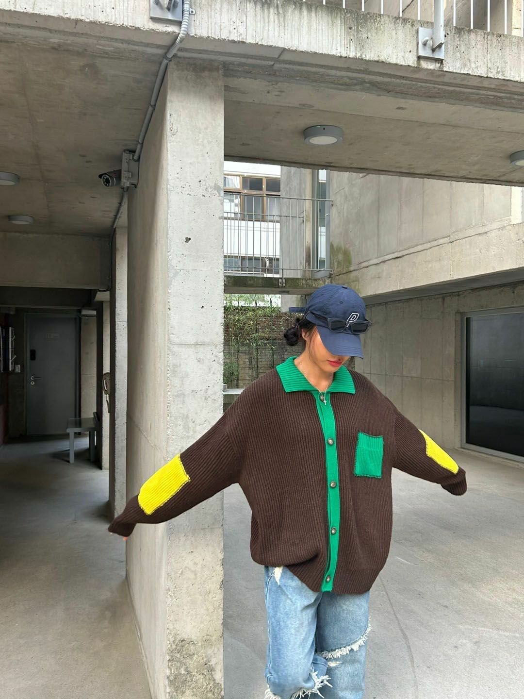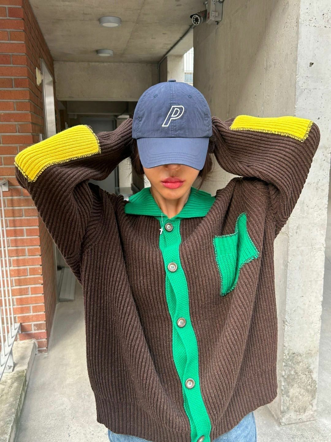 拼色反領開胸針織外套 3.14-064JK
