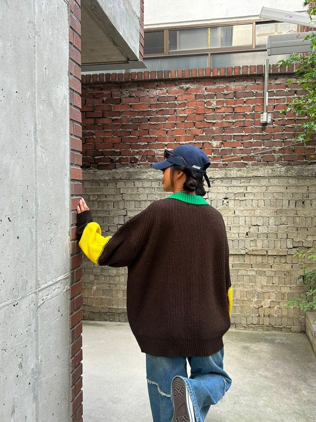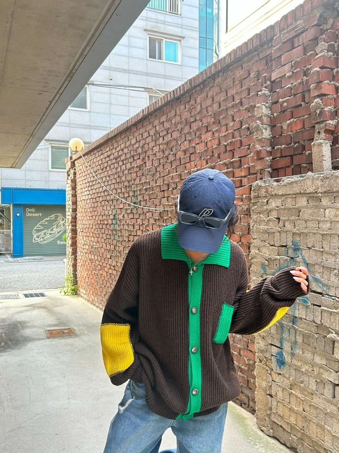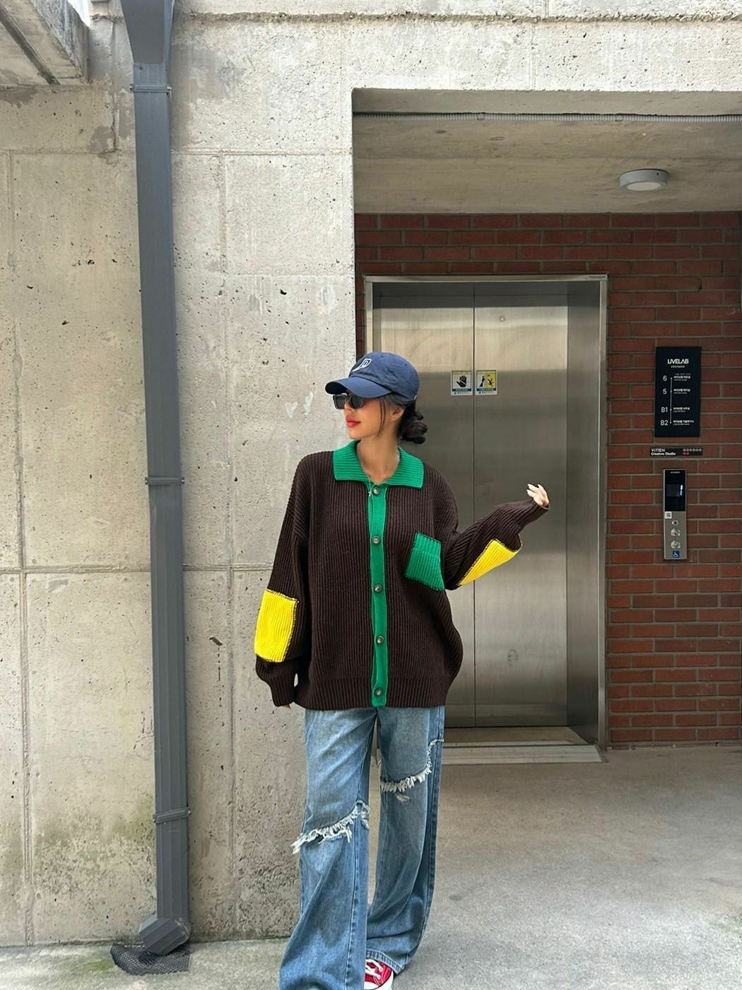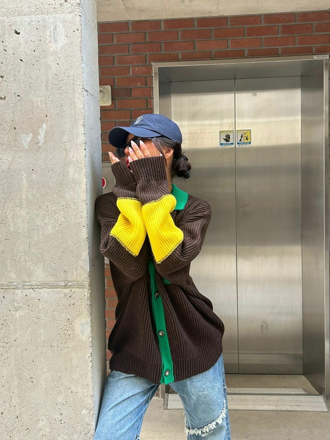拼色反領開胸針織外套 3.14-064JK