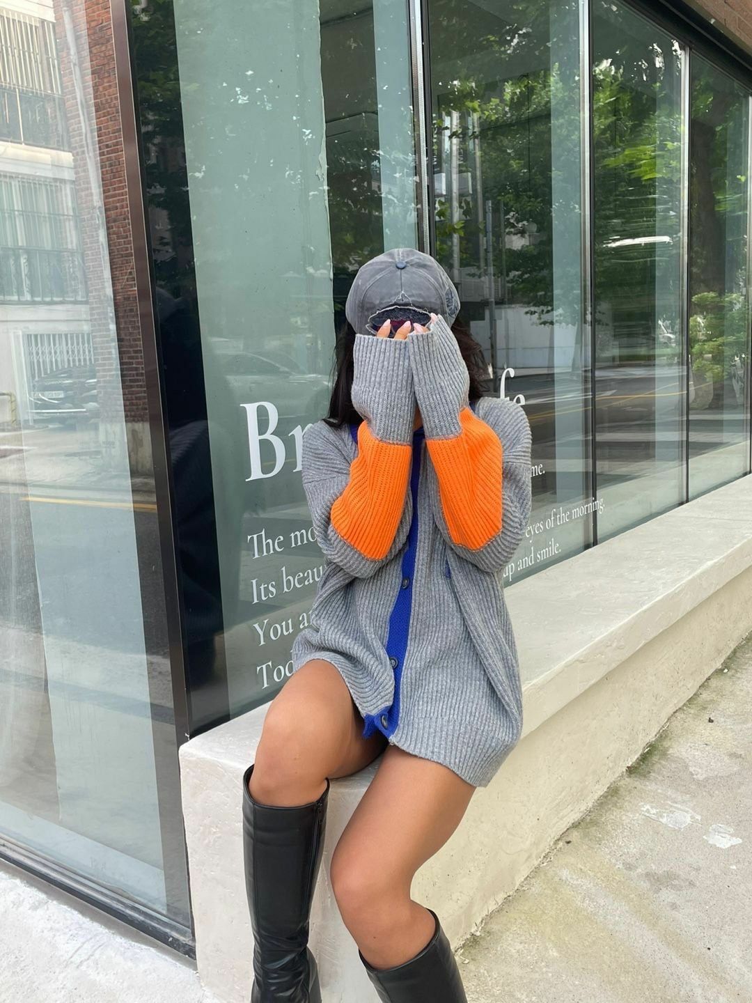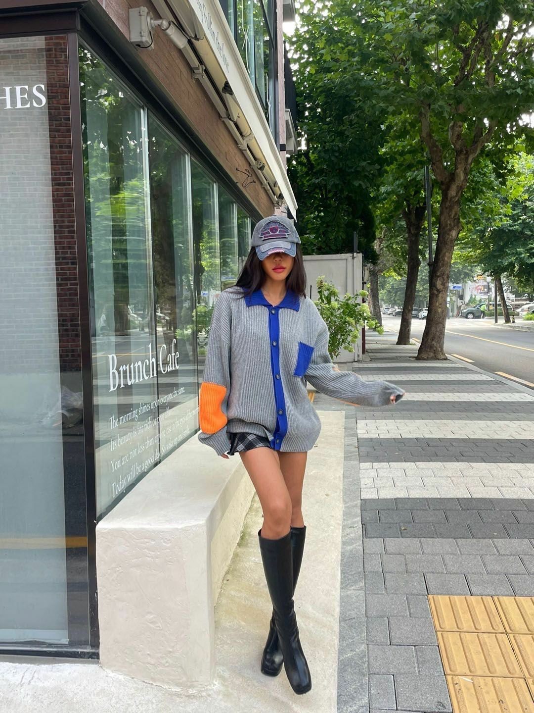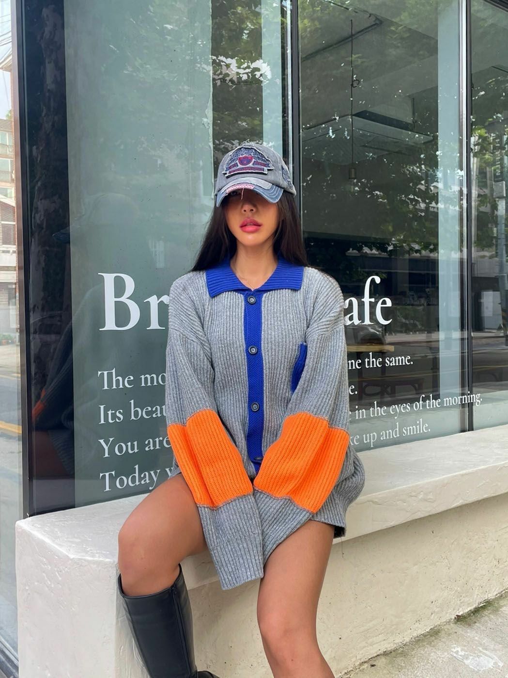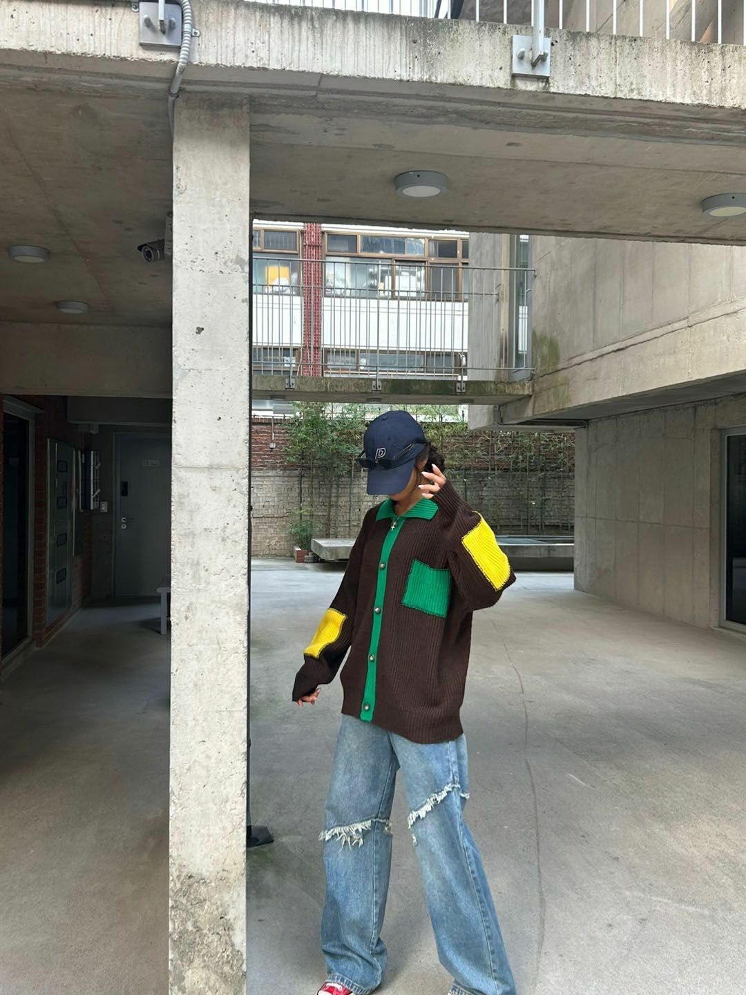 拼色反領開胸針織外套 3.14-064JK