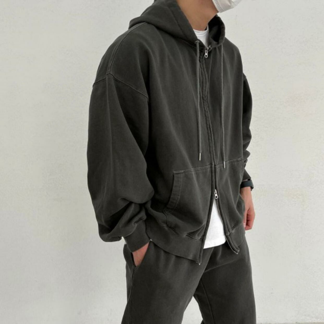 洗手淨色連帽拉鍊外套 36.5-003JK
