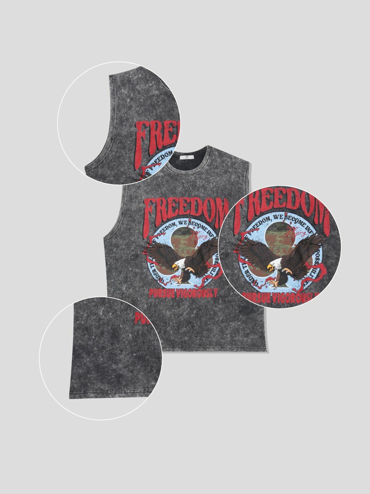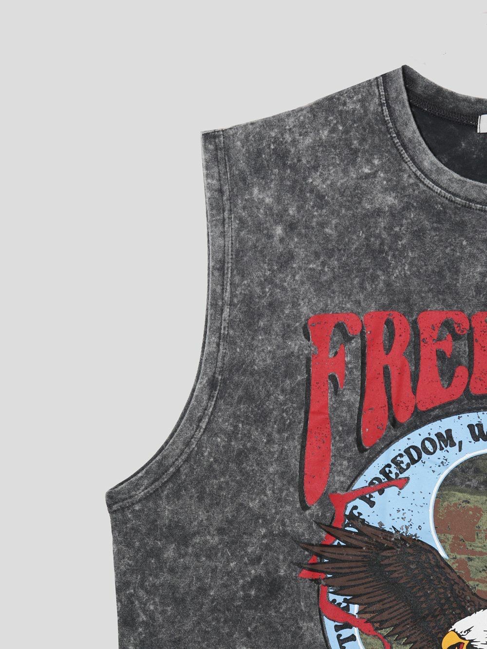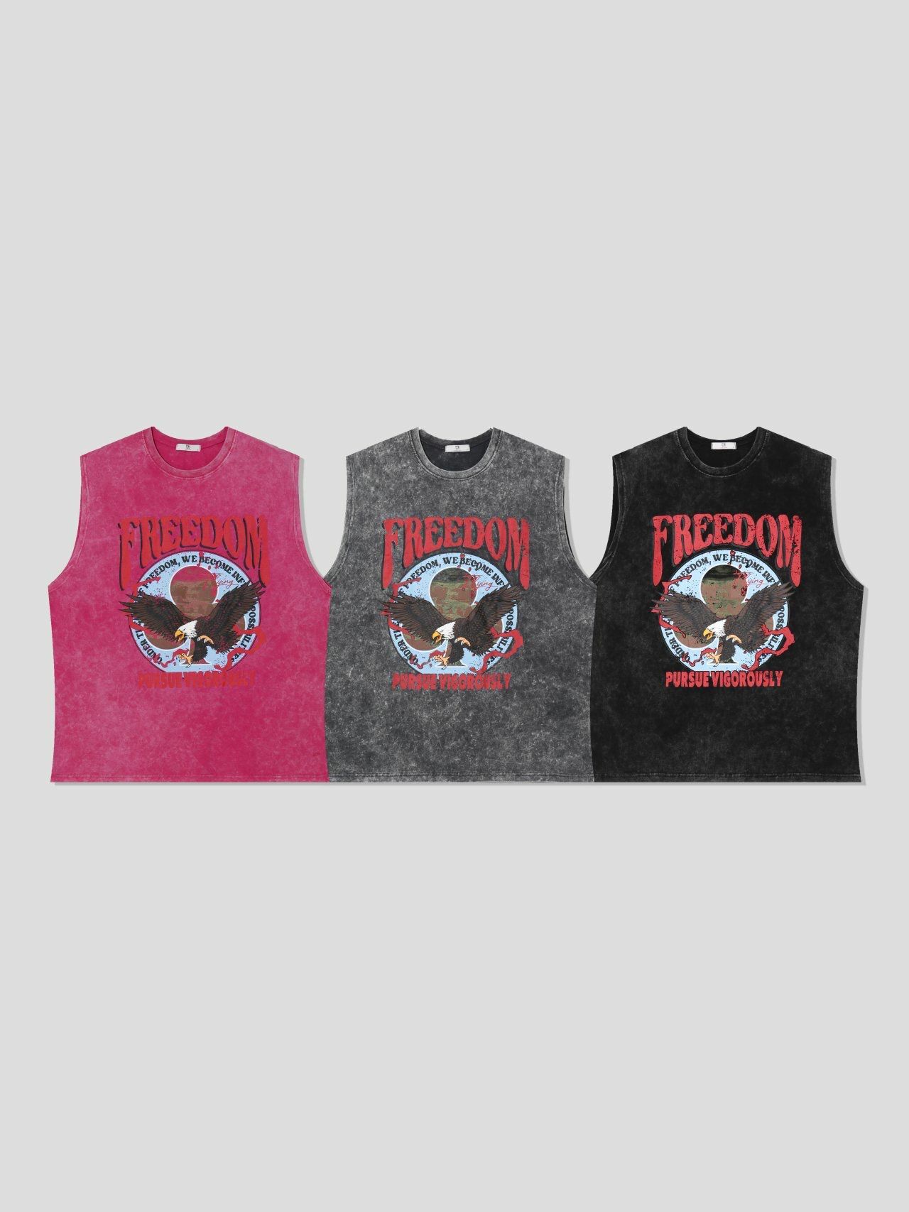 OverSize紮染鷹圖案英文字背心 36.5-015V