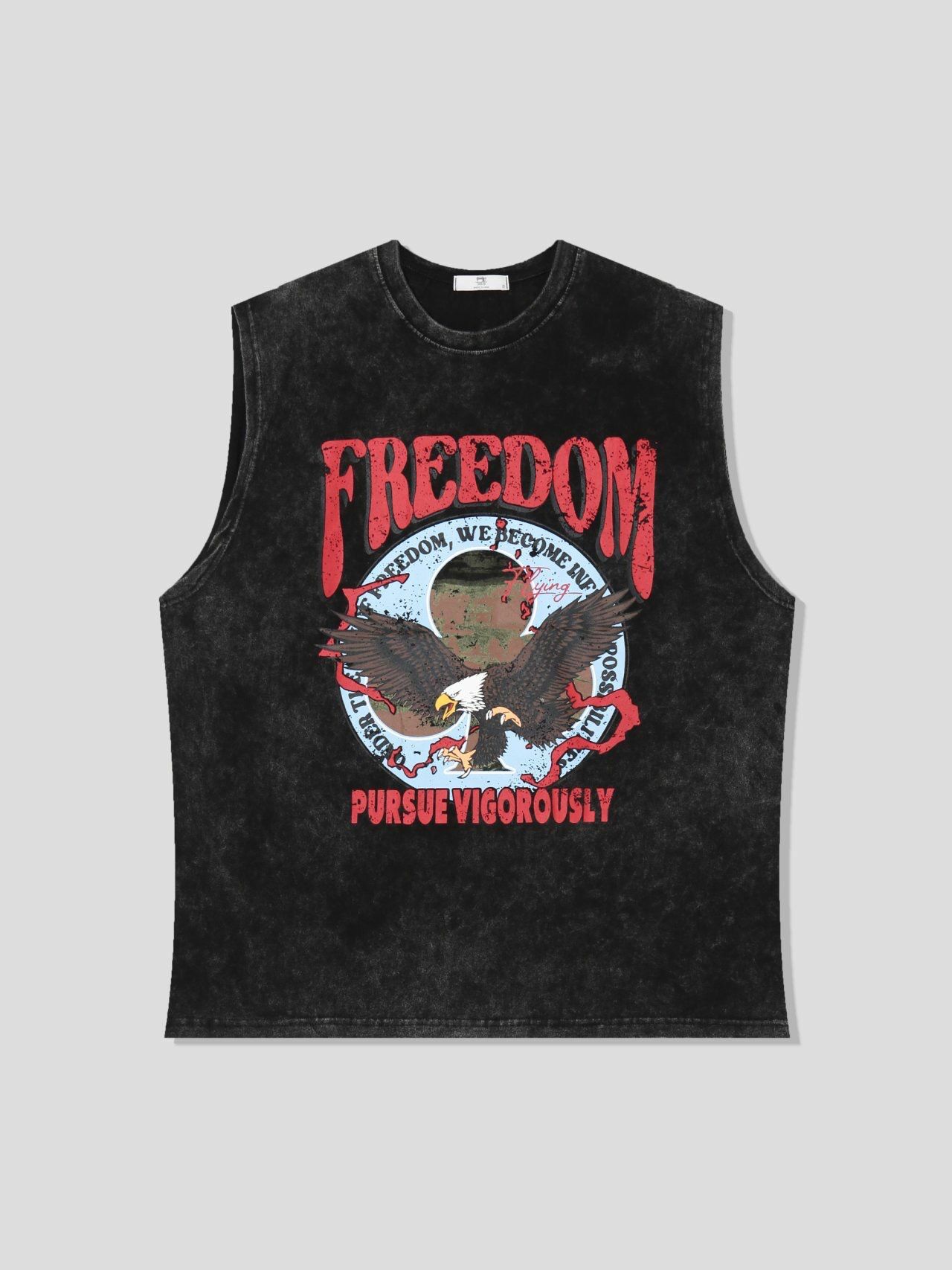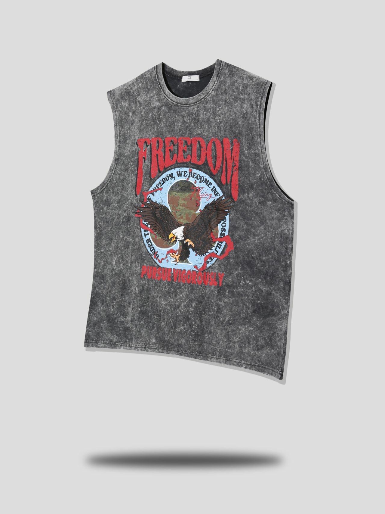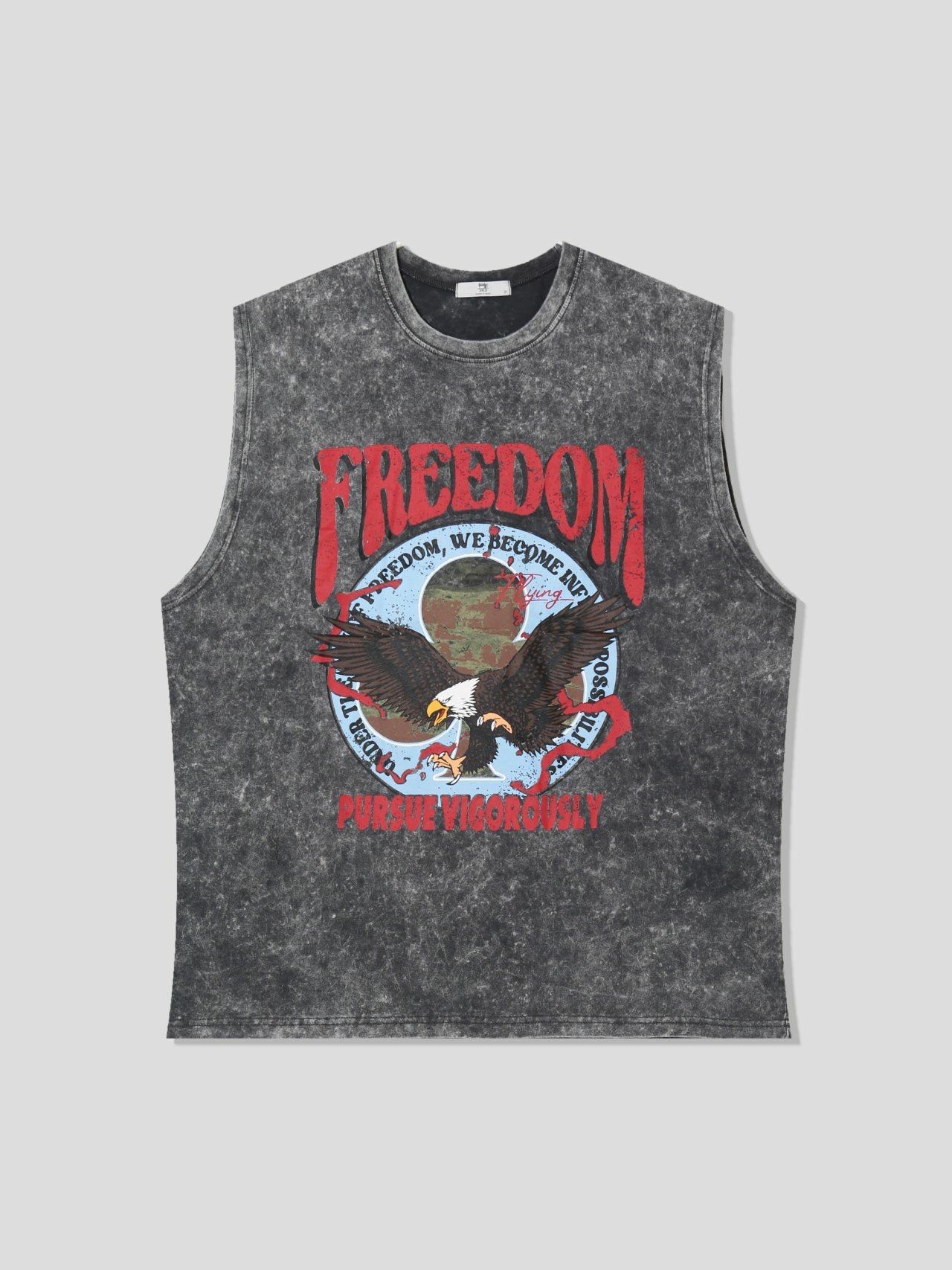OverSize紮染鷹圖案英文字背心 36.5-015V