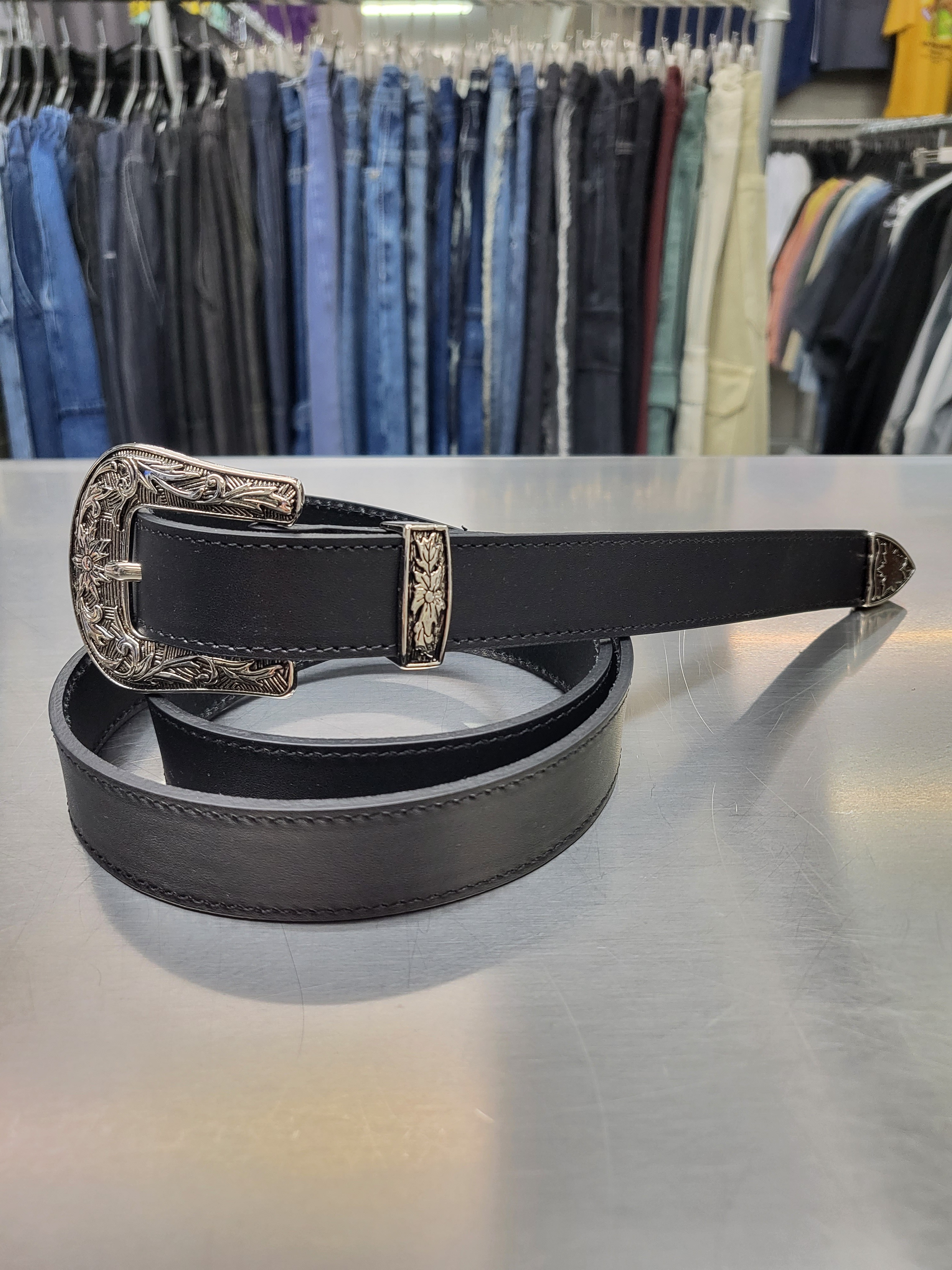 銀扣真皮皮帶 A0021