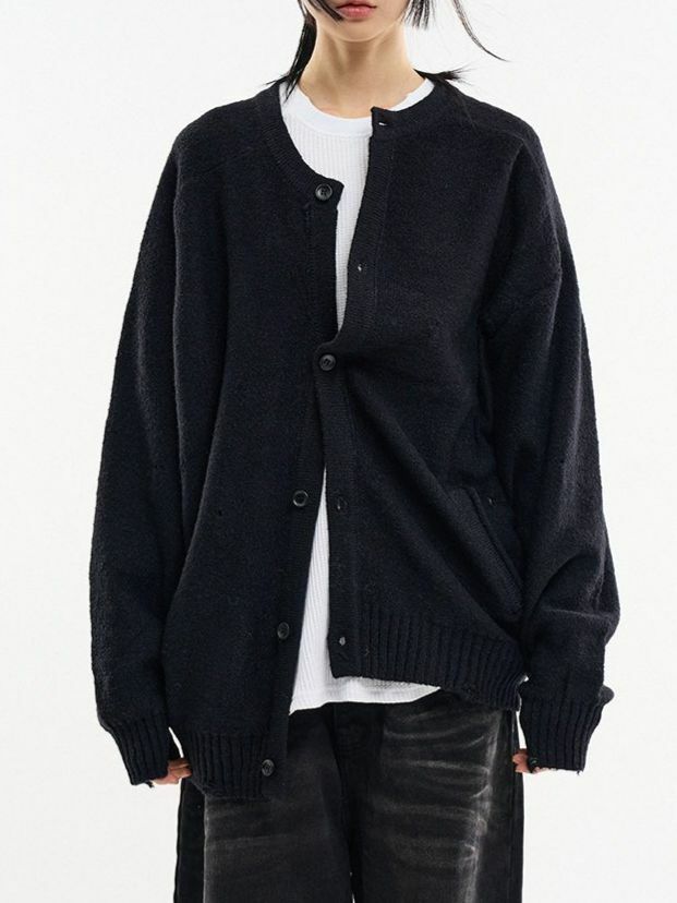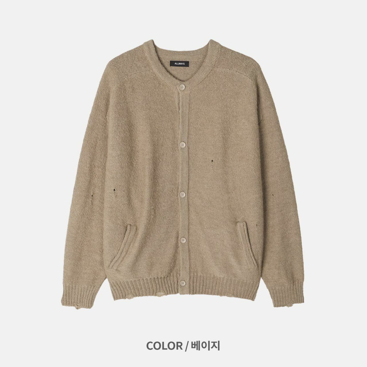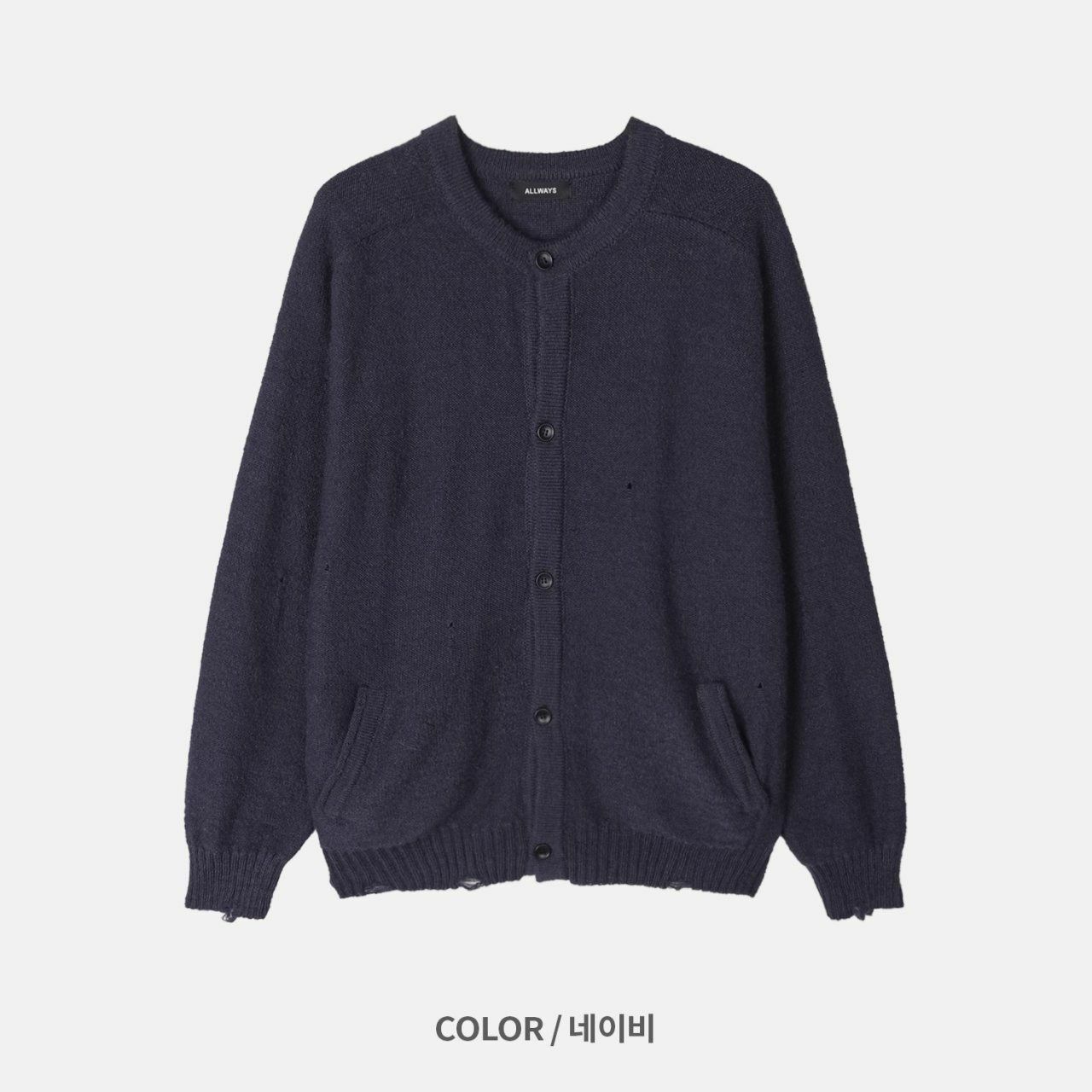 淨色圓領破洞開胸針織外套 ALLWAYS-028JK