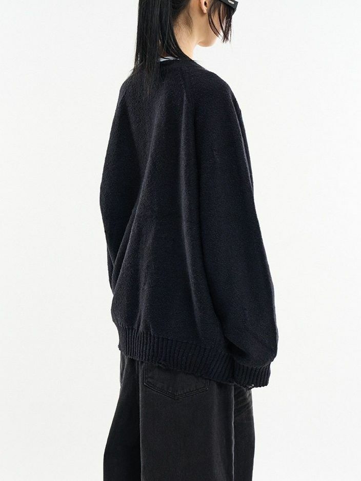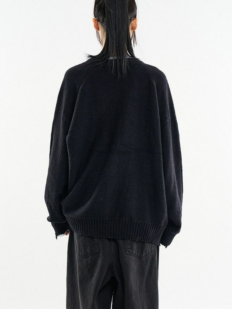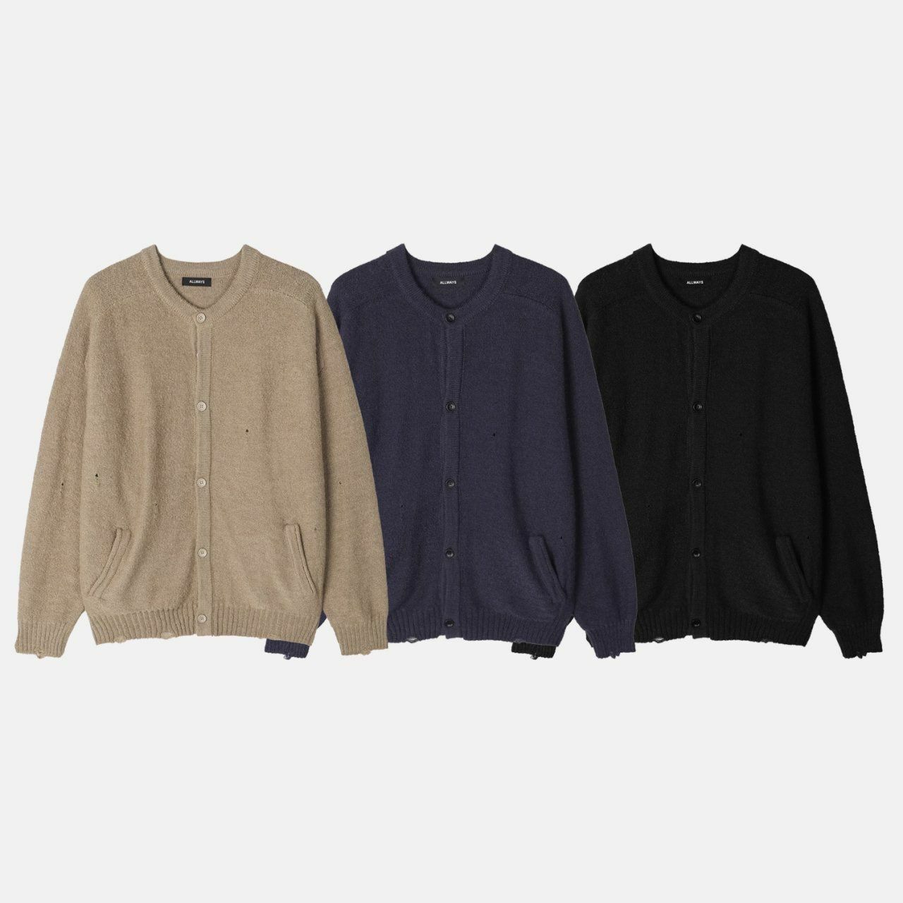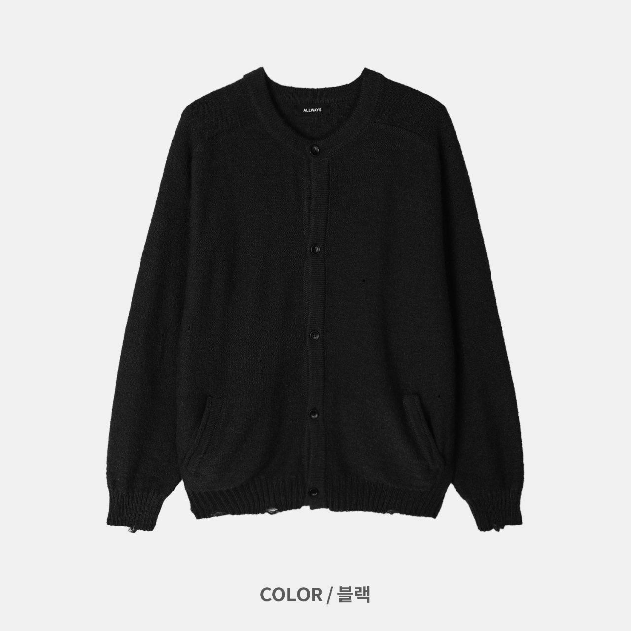 淨色圓領破洞開胸針織外套 ALLWAYS-028JK