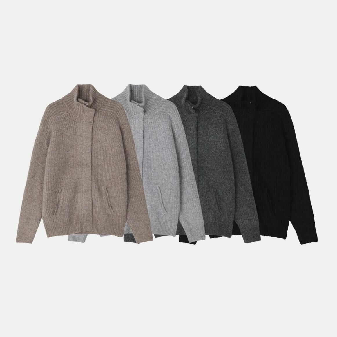 企領暗直紋拉鍊針織外套 ALLWAYS-030JK