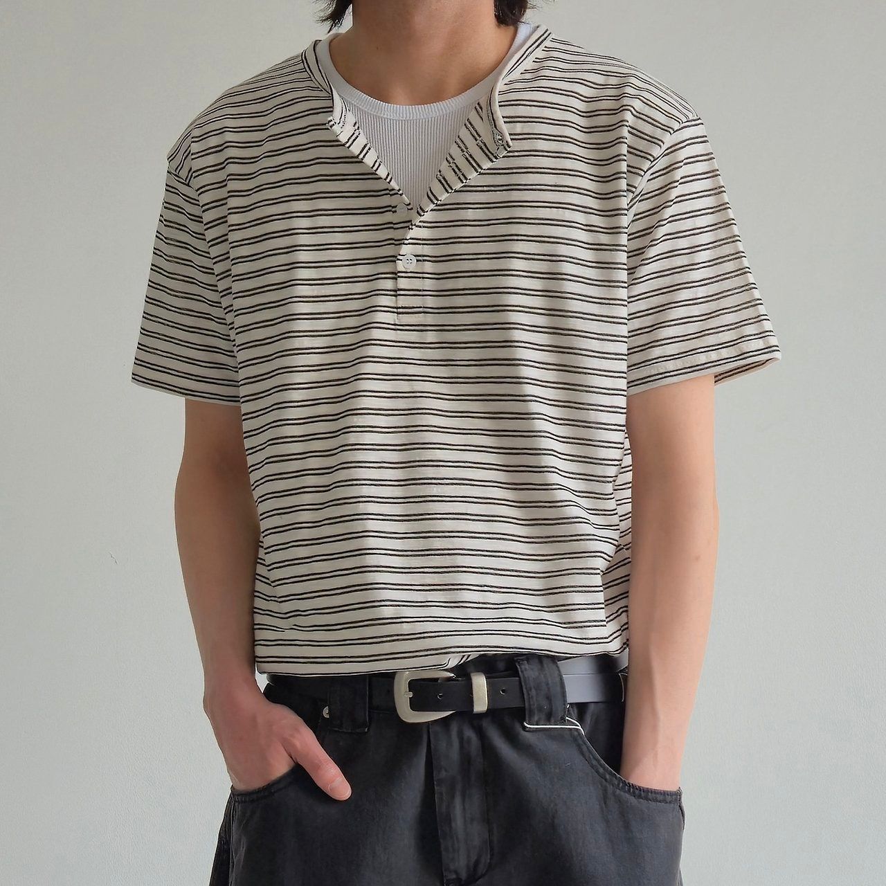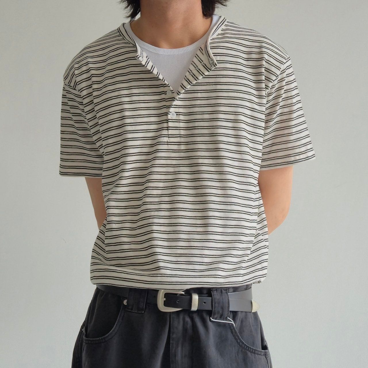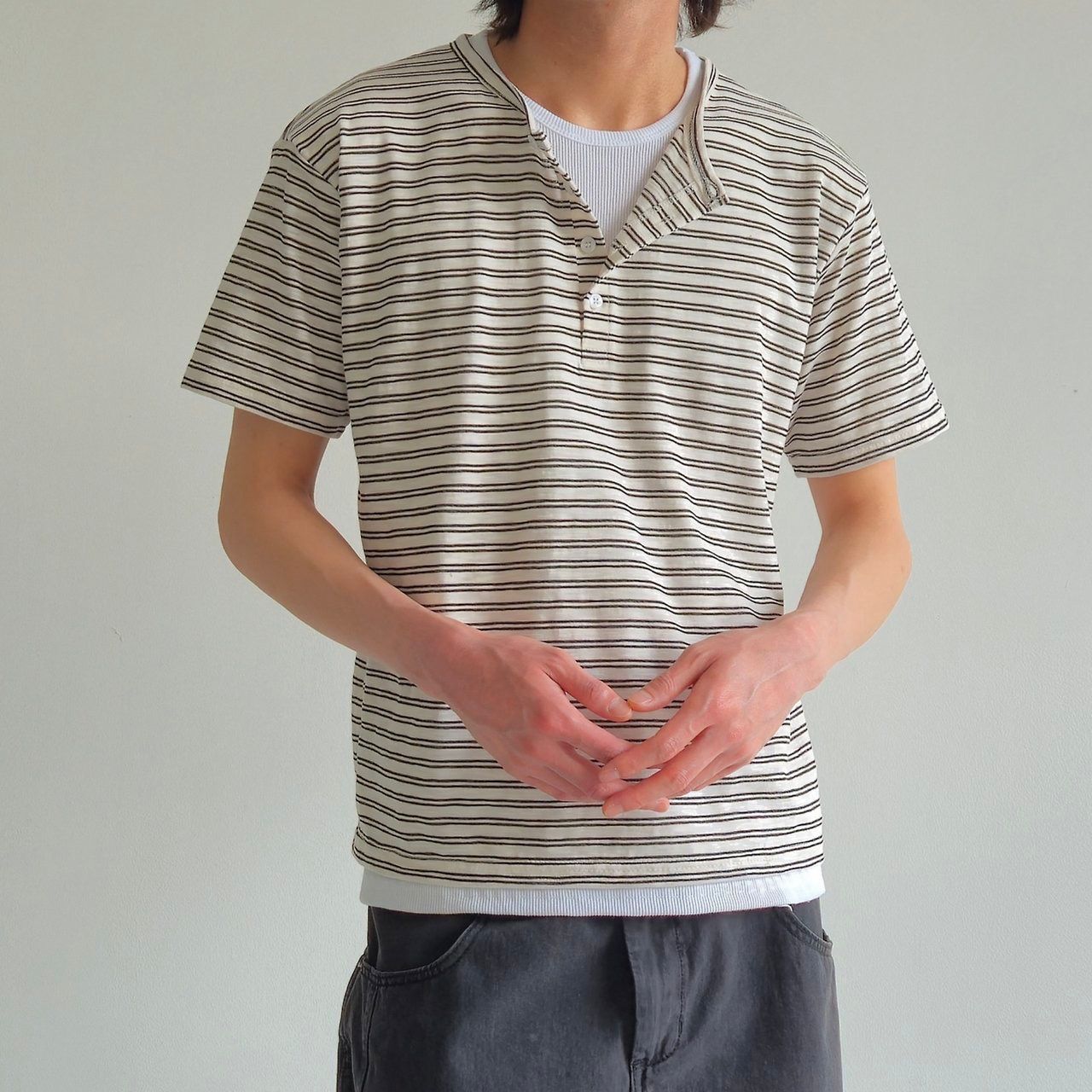 半開胸橫間短袖Tee And-055T