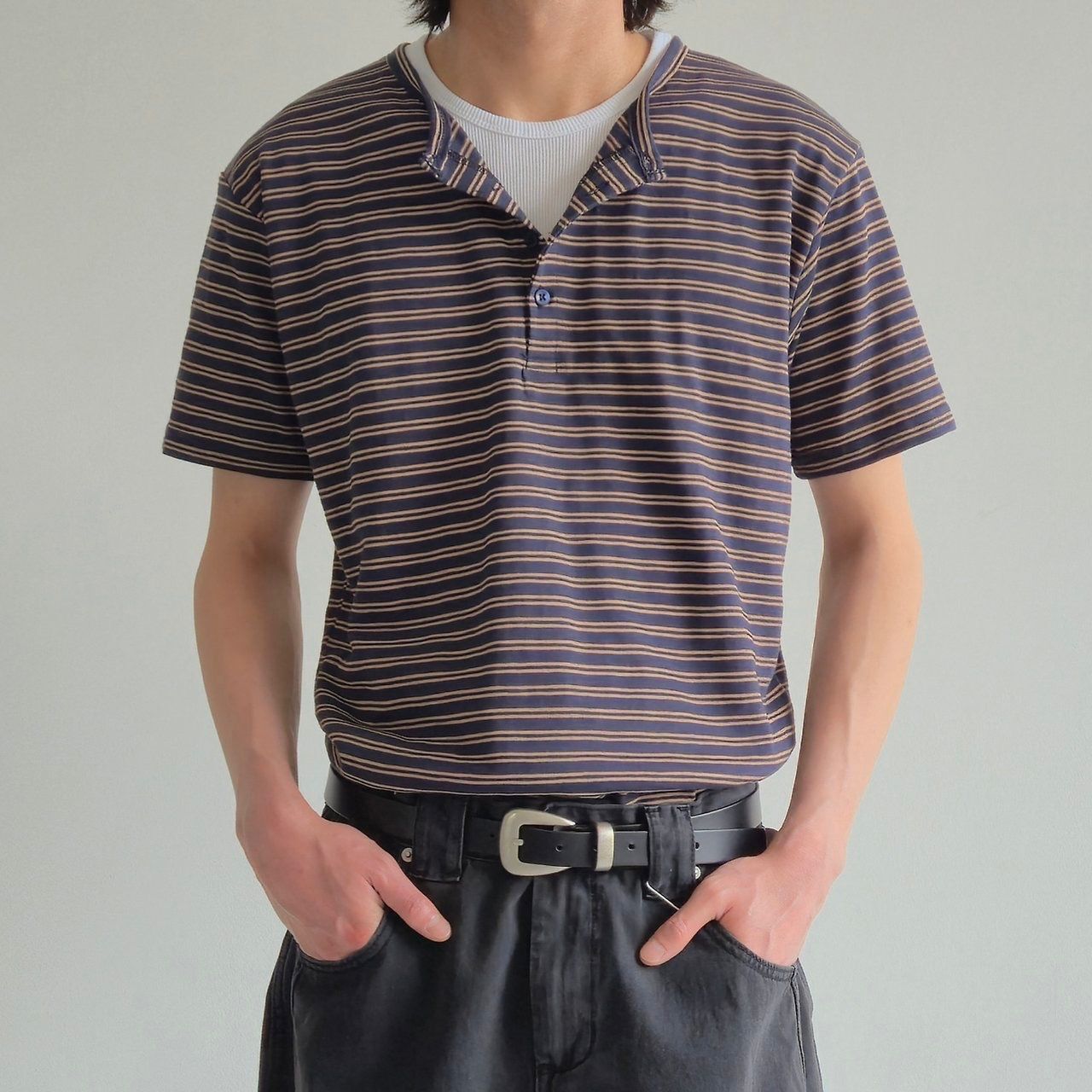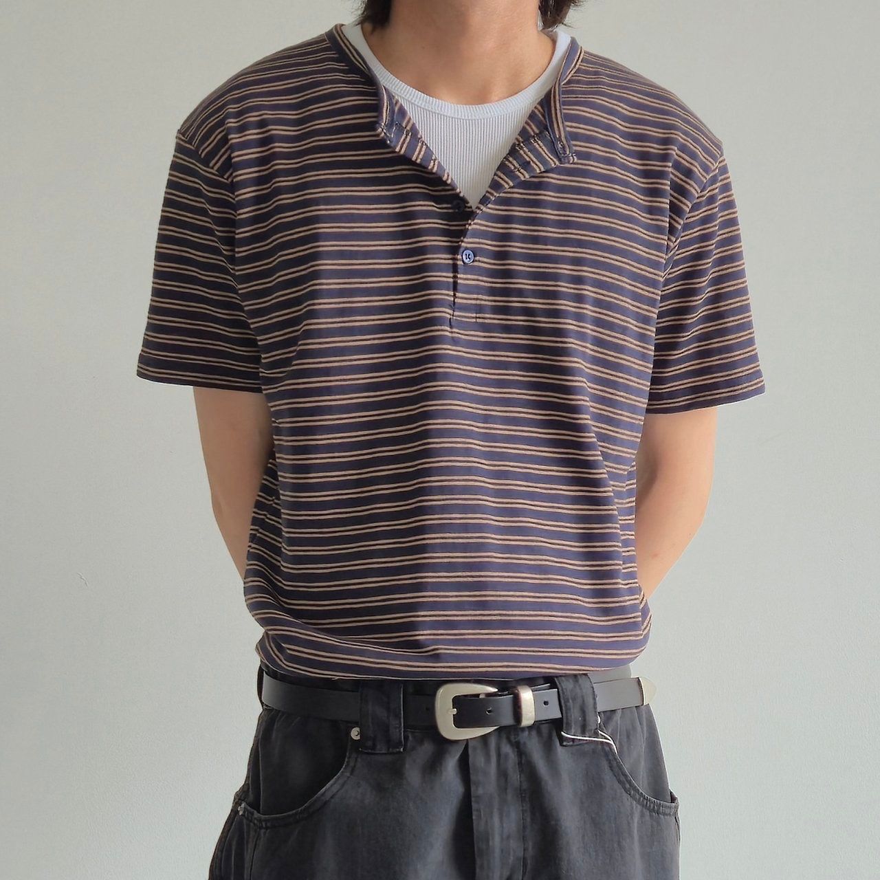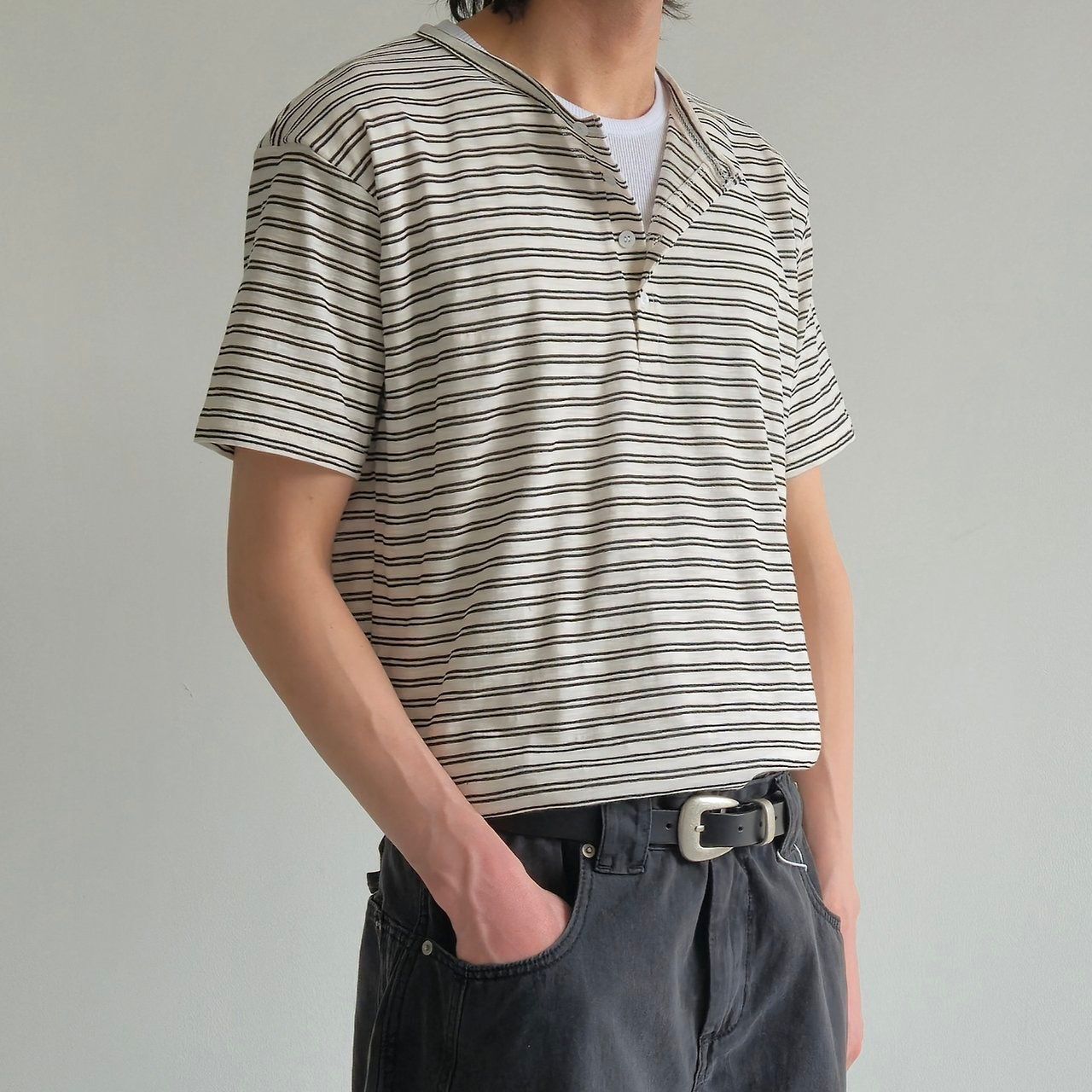 半開胸橫間短袖Tee And-055T