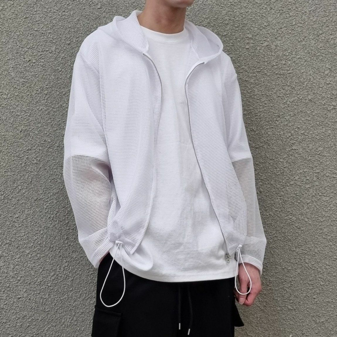 淨色透視連帽拉鍊外套 And Liberty-008JK