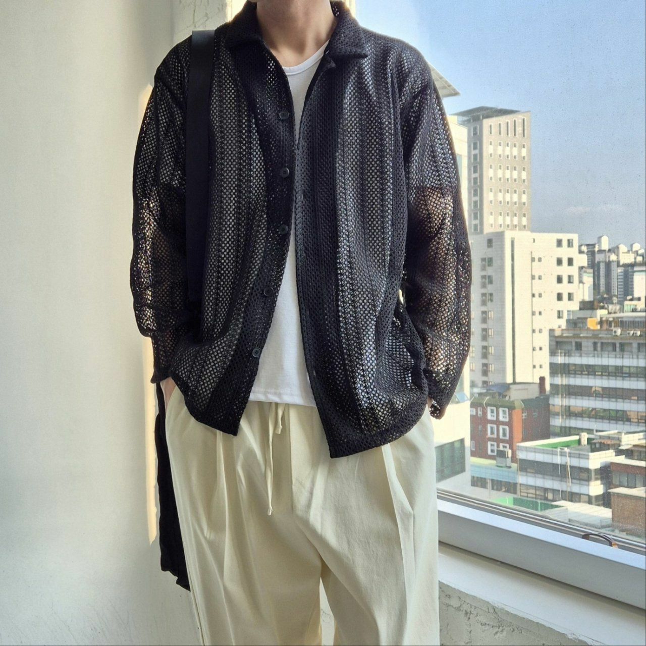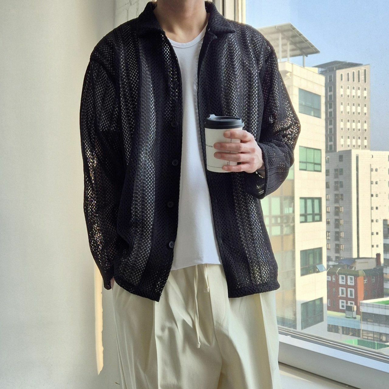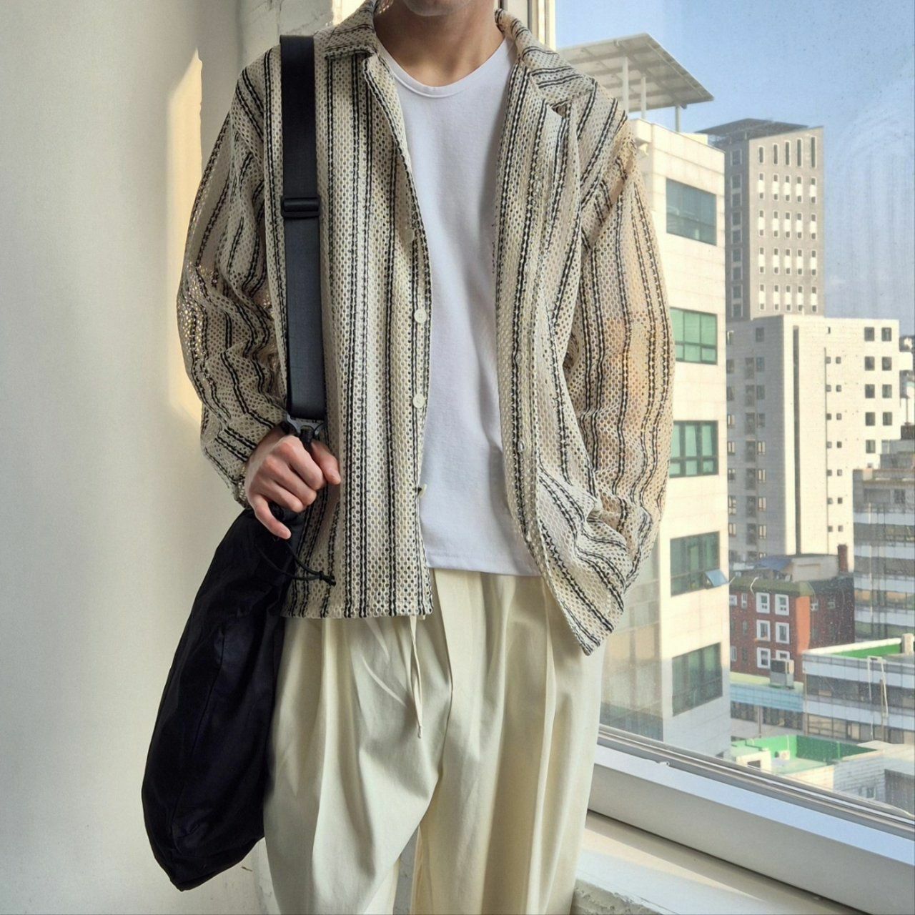 直間網紋長袖恤衫 And Liberty-030S