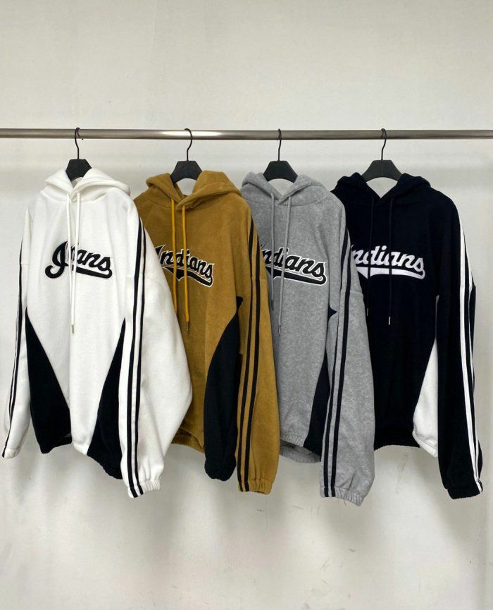 拼色英文字絨毛連帽衛衣 And More-024T