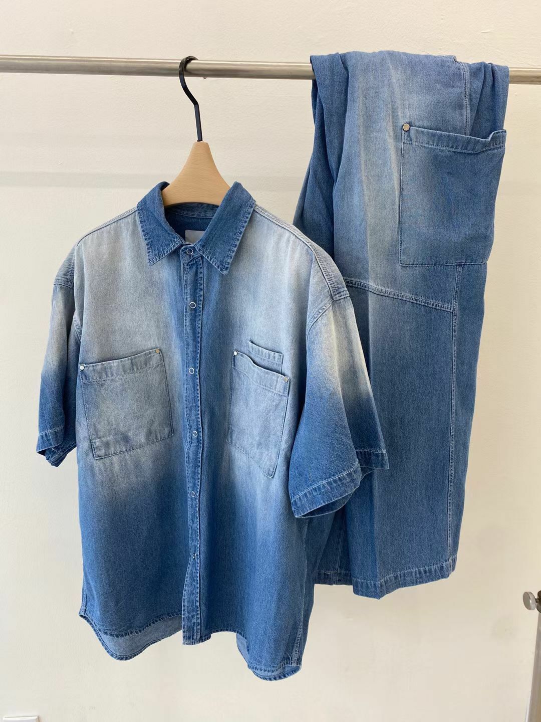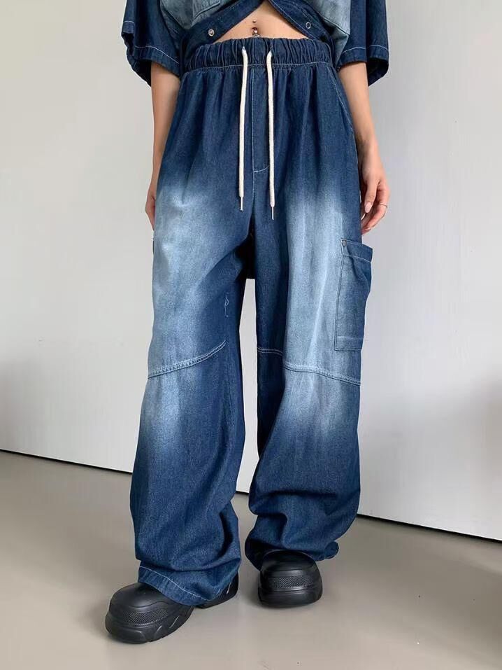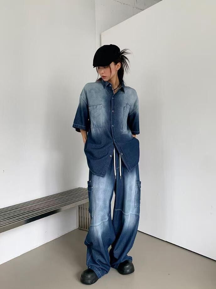 洗水工裝牛仔鬆身褲 And More-034P