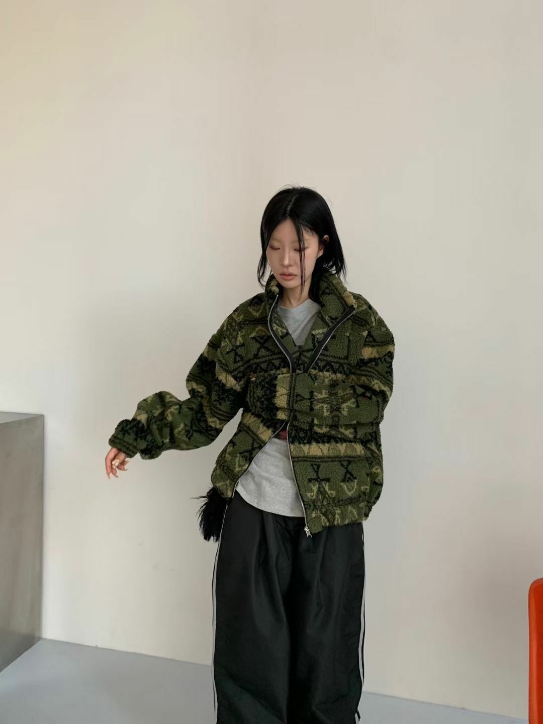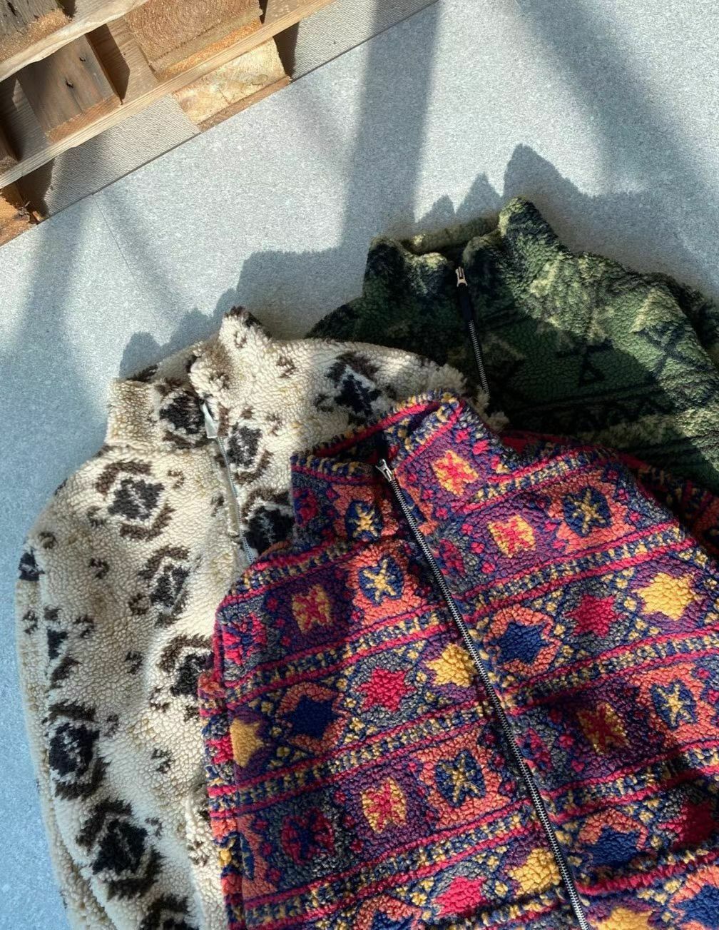 企領民族花拉鍊毛毛外套 And More-058Jk