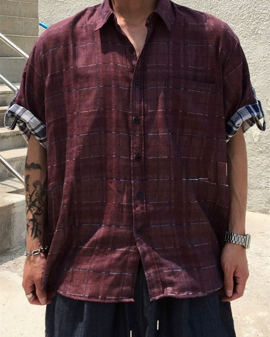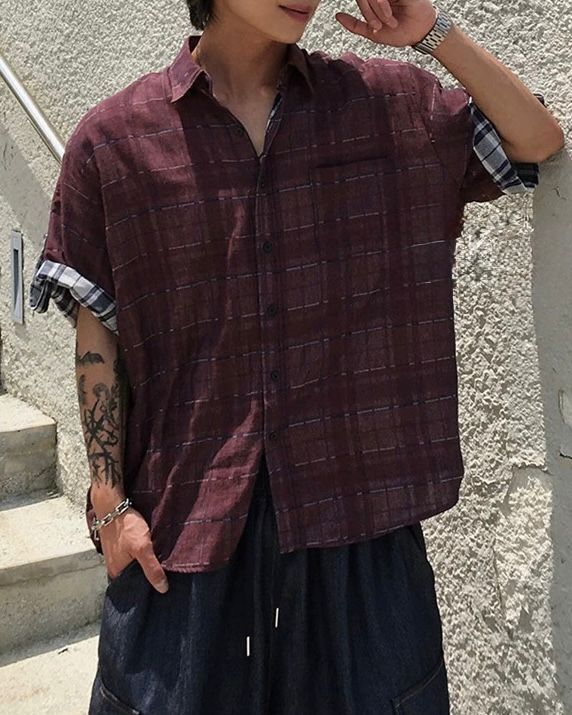 格仔短袖恤衫 And More-086S
