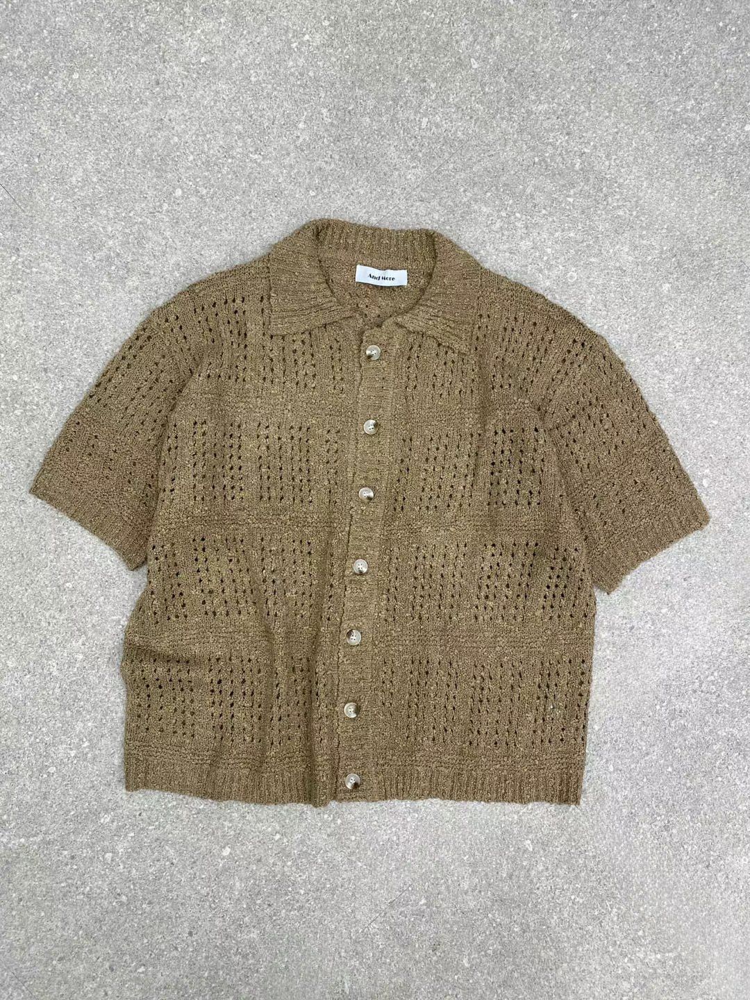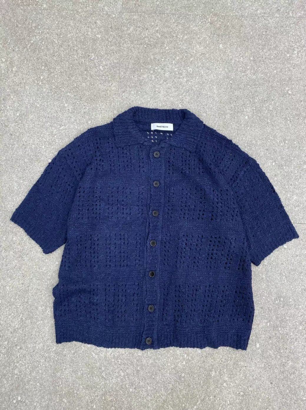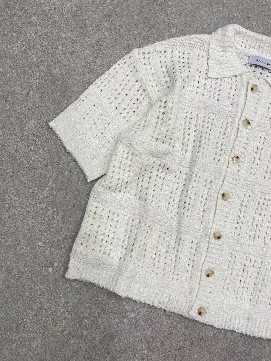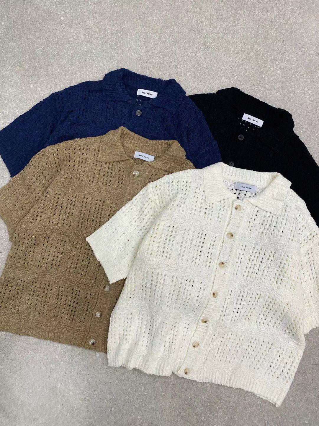 淨色暗紋針織短袖恤衫 And More-089S