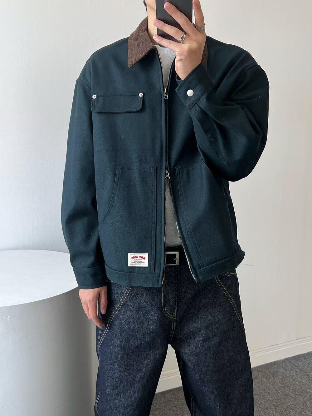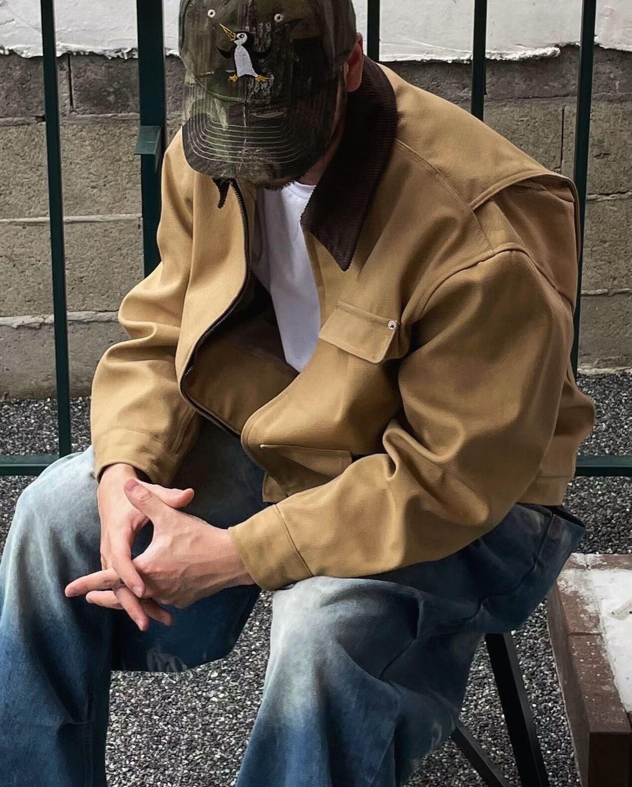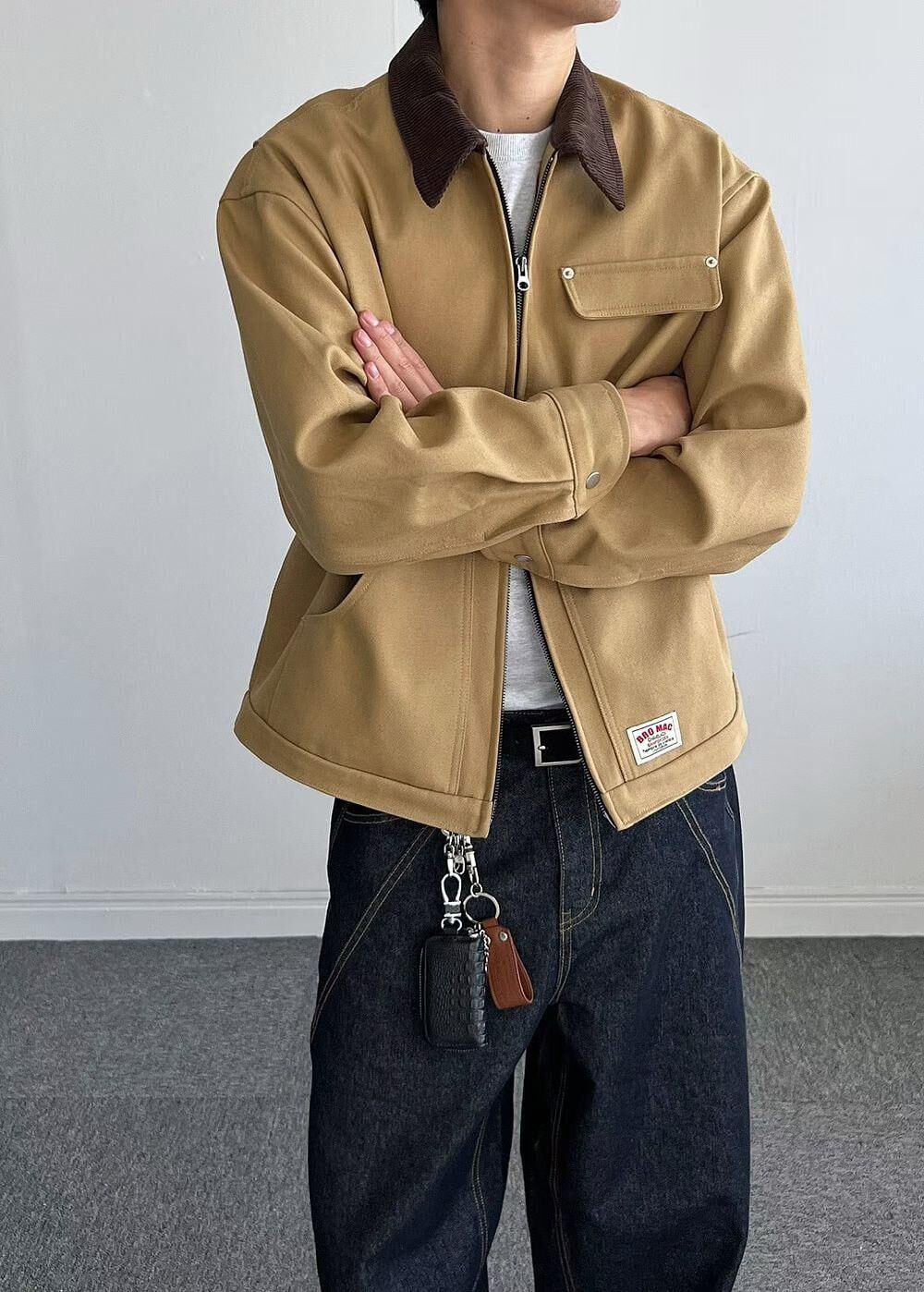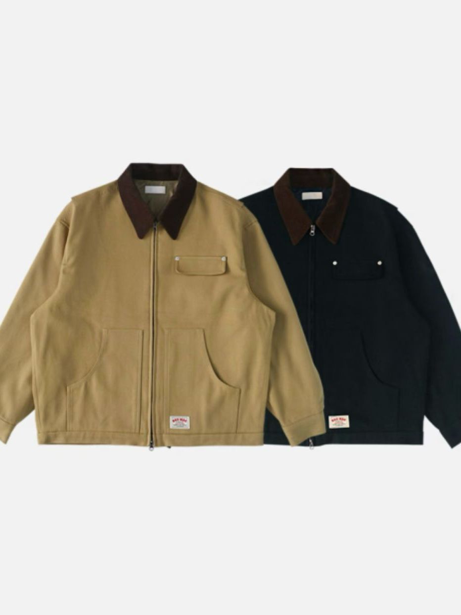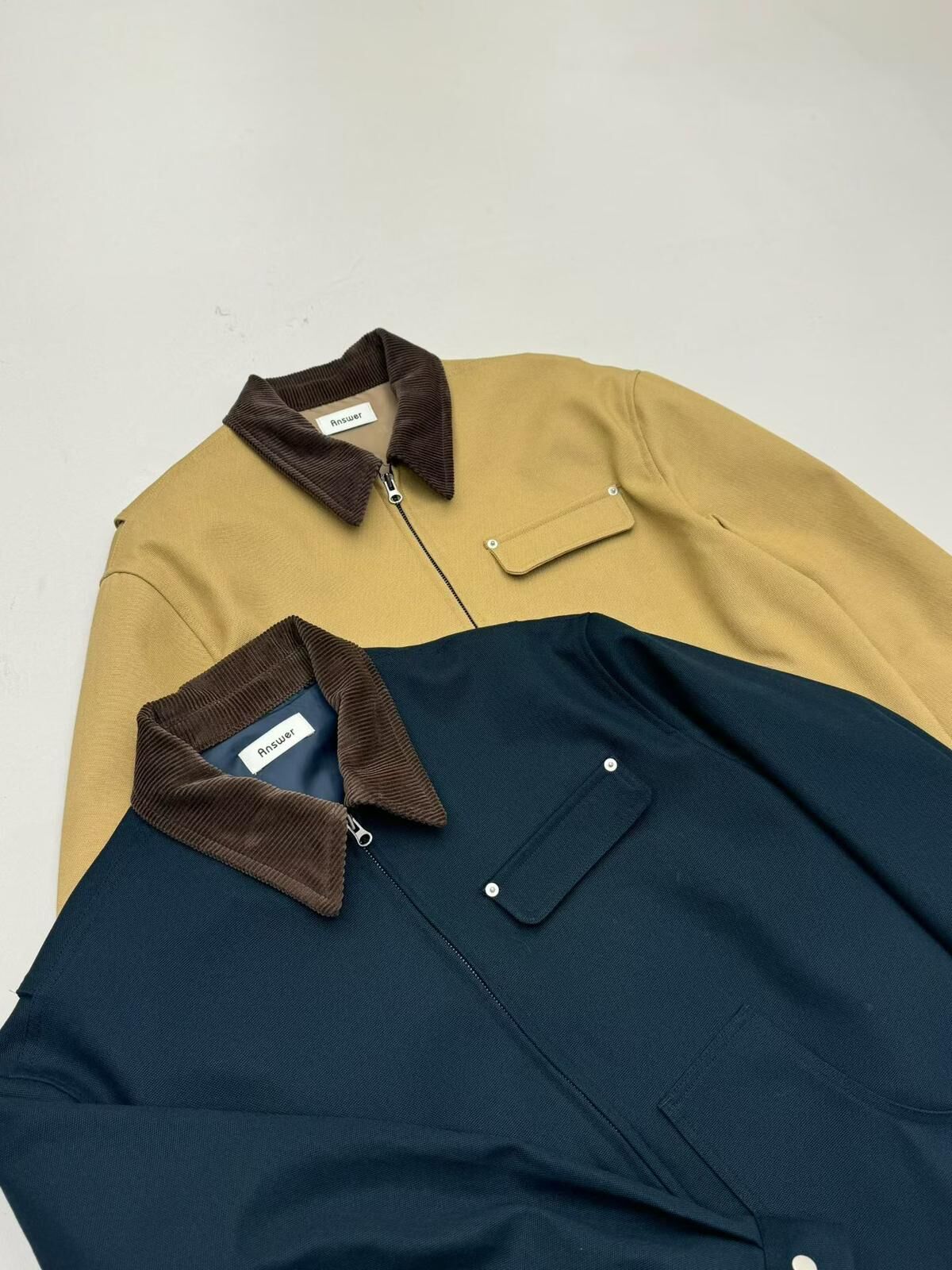 拼色反領拉鍊外套 ANSWER-010JK