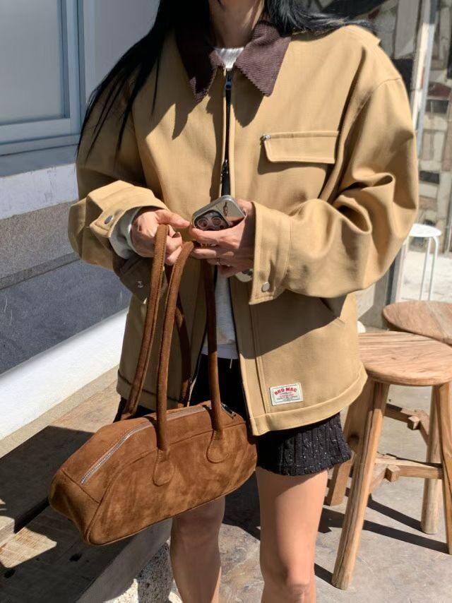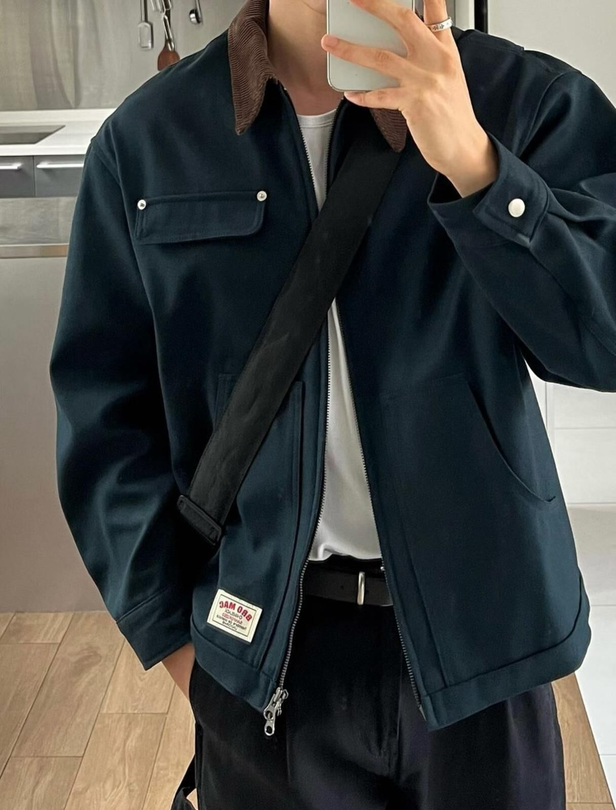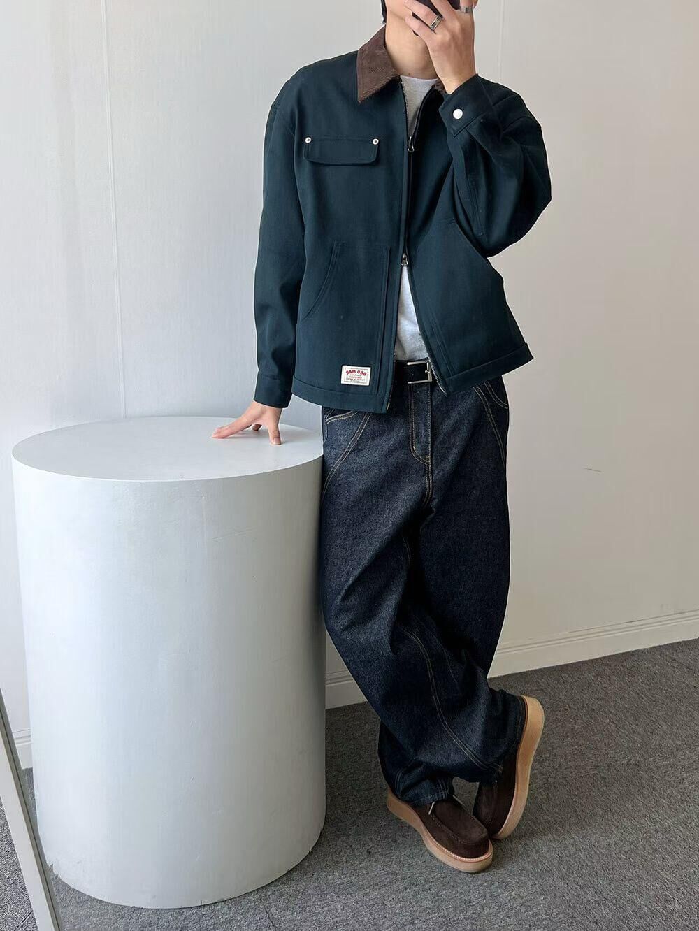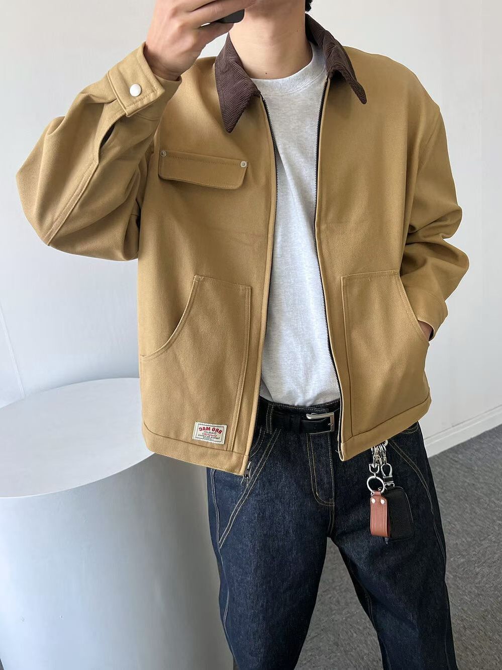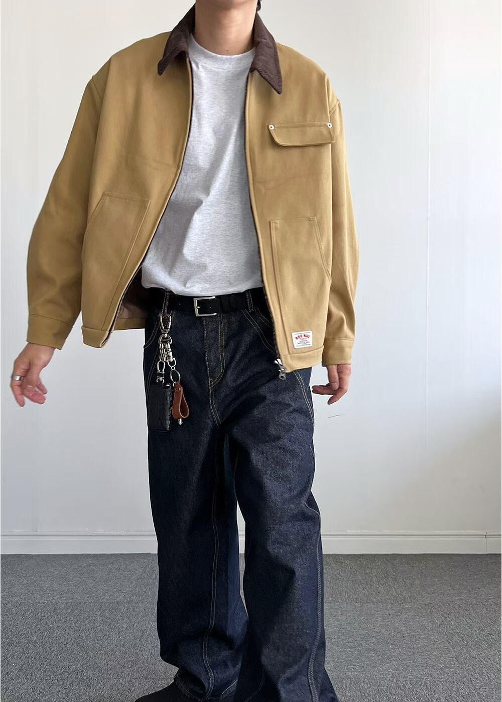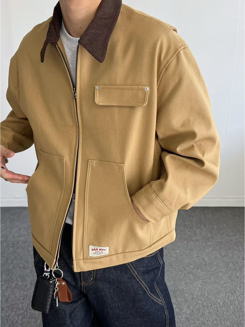 拼色反領拉鍊外套 ANSWER-010JK