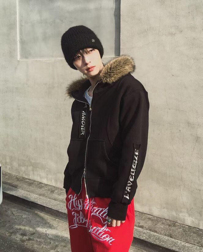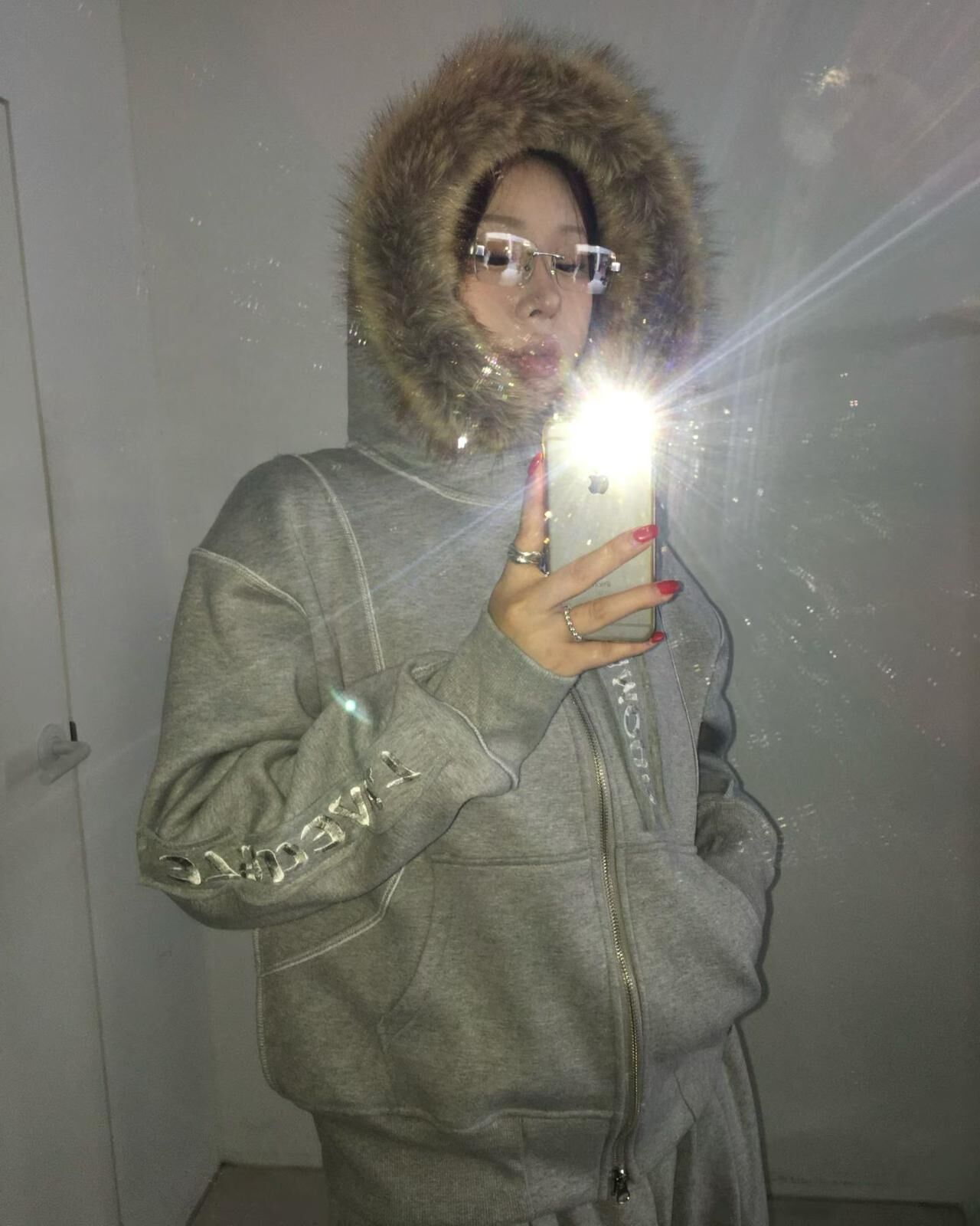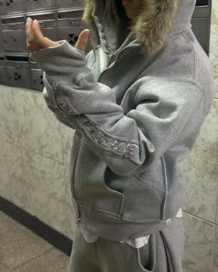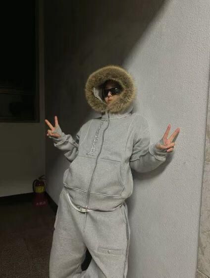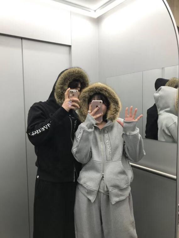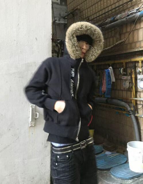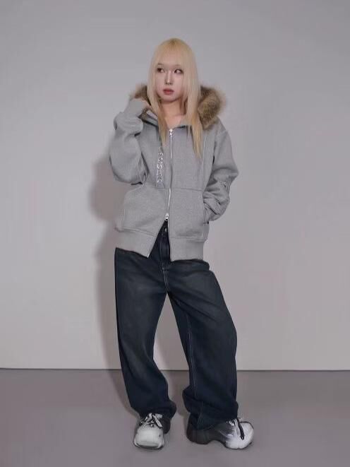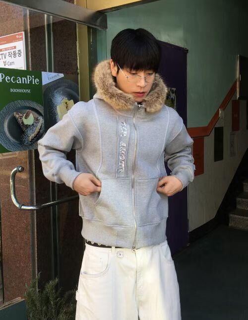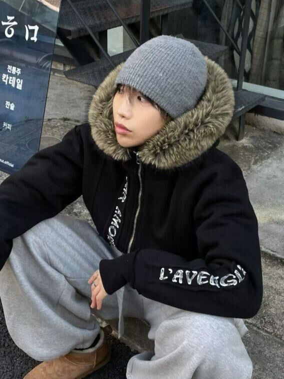 毛毛帽英文字拉鍊外套(薄抓毛底) APT-005JK