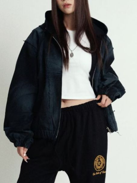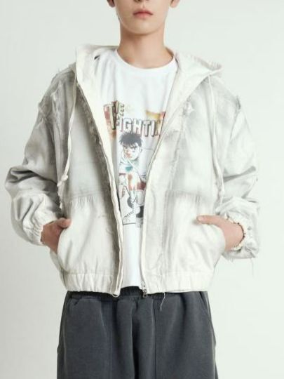 仿污連帽拉鍊外套 APT-012JK