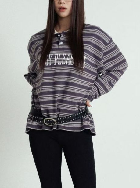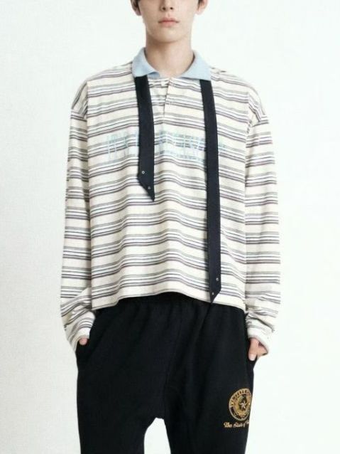 橫間英文字長袖Polo衫 APT-016T