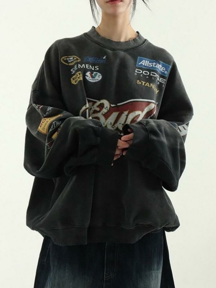 洗水英文字圖案衛衣(薄抓毛底) ARCHIVE-271T